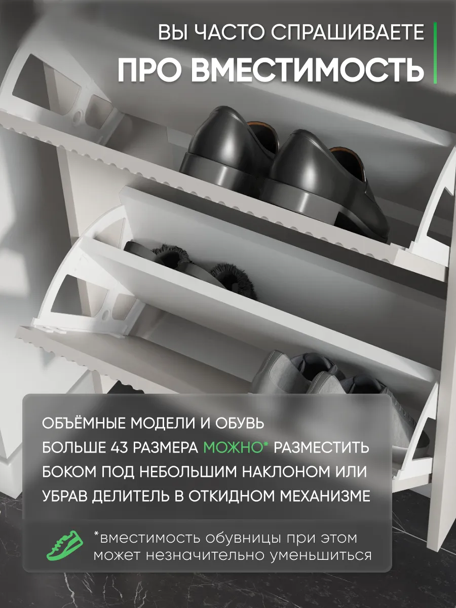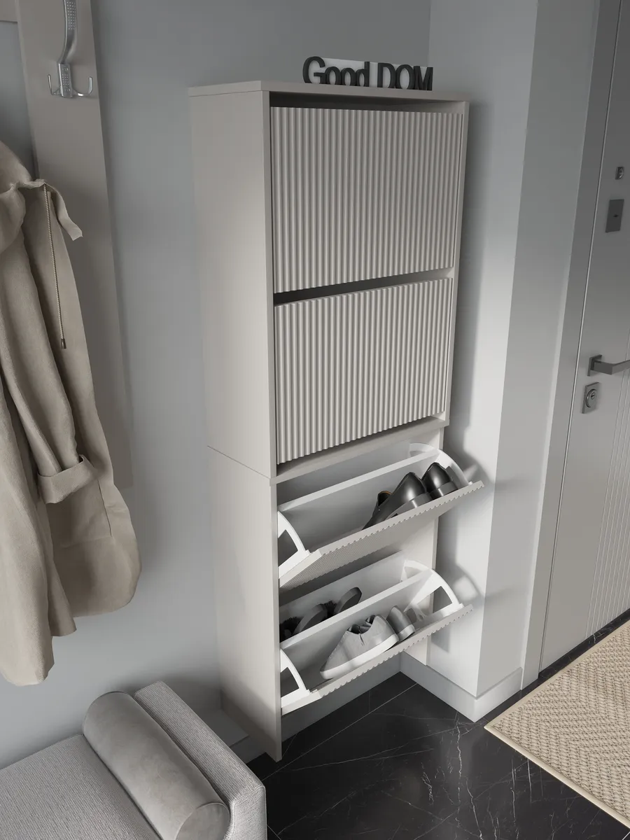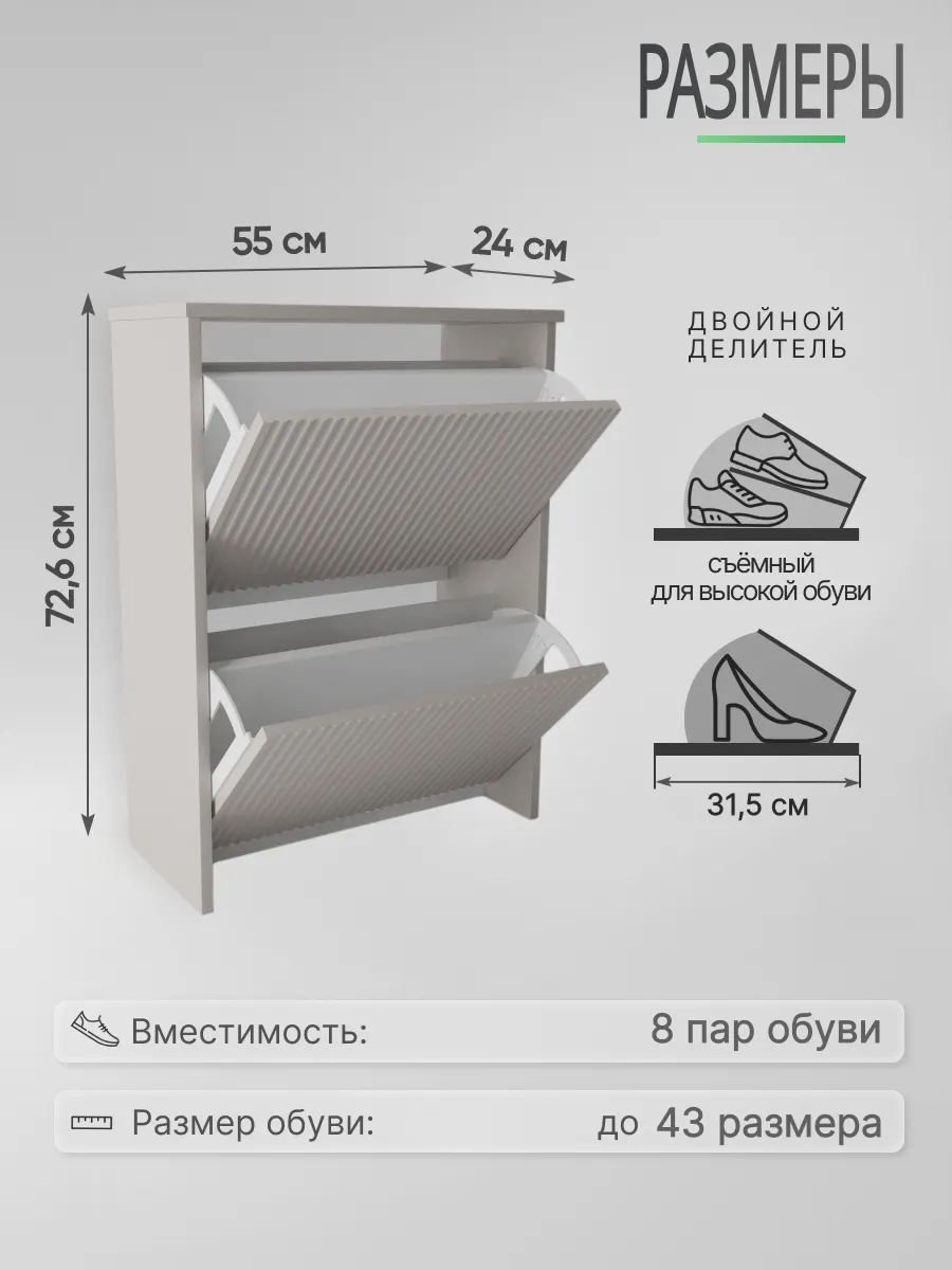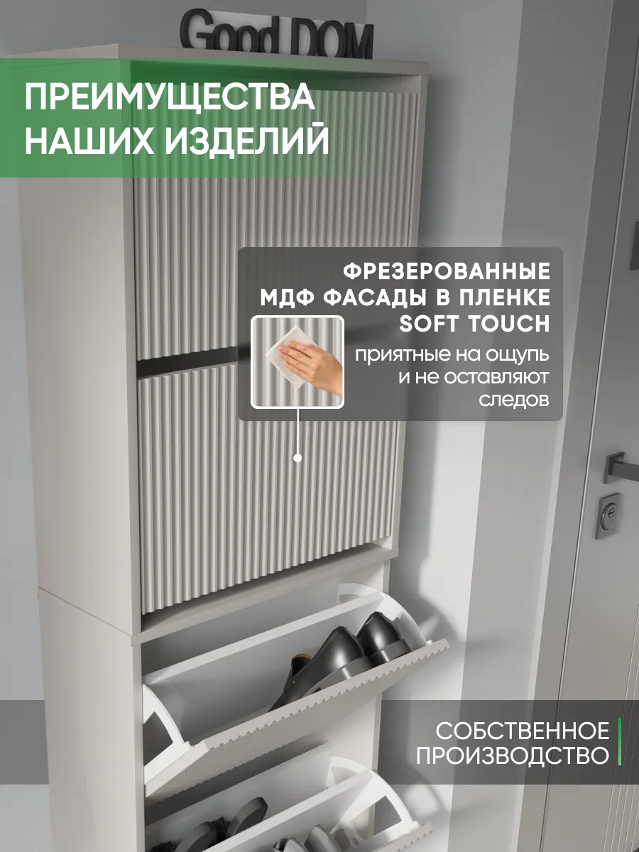 Обувница закрытая - удобная мебель в прихожую для функционального и удобного хранения обуви и вещей в коридоре. Тумба под обувь с откидными дверцами поможет сэкономить полезное пространство и не займет много места. Полка для обуви узкая влезет даже в маленький коридор, уместиться в небольшой гардеробной. Этажерка закрытая защитит обувь от попадания пыли, к тому же закрытая конструкция выглядит аккуратно и не перегружает пространство. Стеллаж из ЛДСП не ржавеет и при должном уходе прослужит долгие годы в отличие от металлической подставки и тем более пластиковой. Шкаф имеет поверхность сверху - верхнюю полку, на которой можно разместить зонты или ключи, прочие принадлежности и вещи, используемые в прихожей. Также у навесной обувницы есть две откидные полки для обуви, разделенных на две секции, что позволяет в такой компактной обувнице уместить целых 8 пар обуви! Подвесная обувница выглядит стильно и компактно. Галошницу можно дополнить вешалкой и зеркалом и получить удобный комплект в прихожую. Обувная полочка легко заменит громоздкий комод, стенку или шкаф. В нашем ассортименте представлена другая мебель для прихожей (и не только) – вы можете легко посмотреть весь ассортимент, щелкнув на значок логотипа. Мы постоянно работаем над качеством нашей продукции, поэтому улучшили упаковку - наша усиленная упаковка защитит Вашу Обувницу при доставке от сломаных углов и сколов! Выбирая продукцию отечественного производителя Good Дом, все в Дом Вы обеспечиваете себя гарантией на продукцию сроком в 1 год, Вы выбираете качество и комфорт.