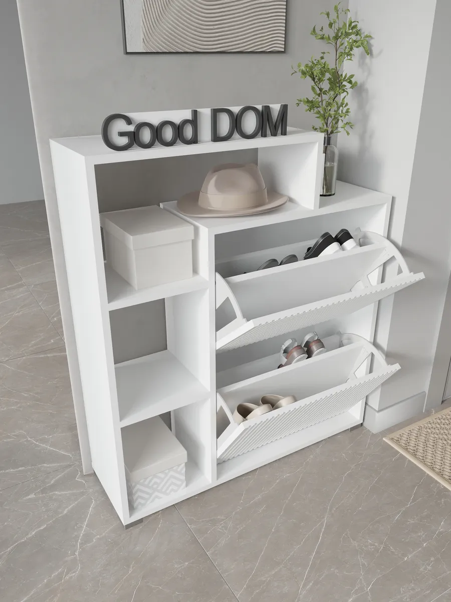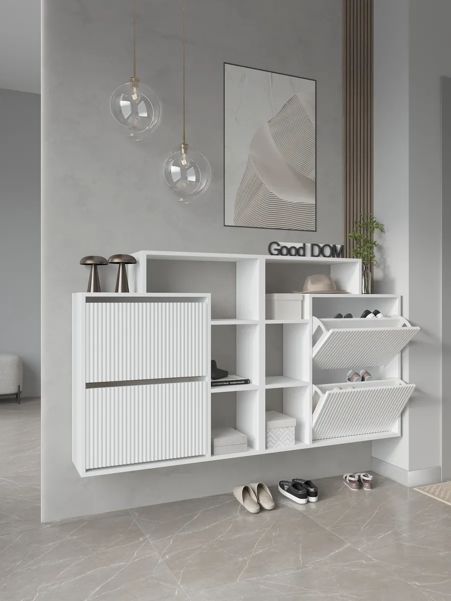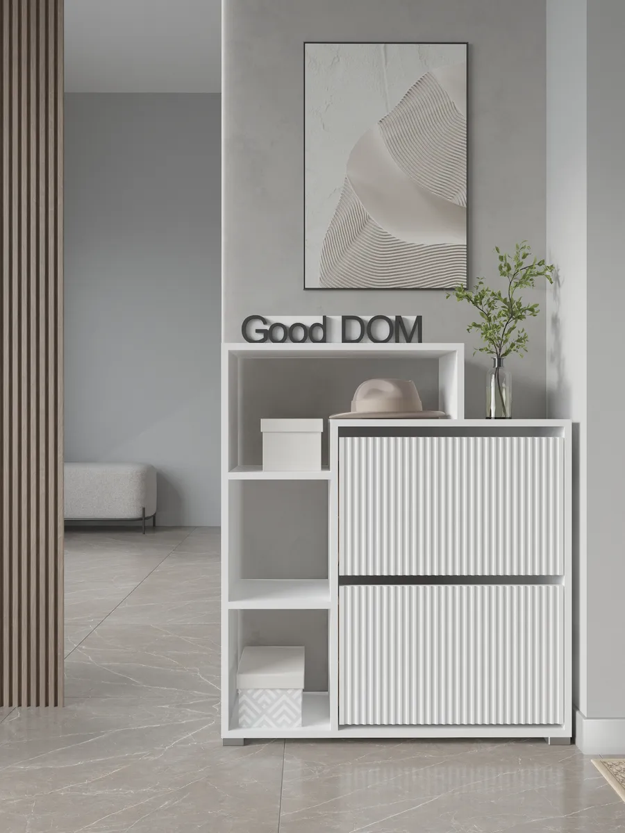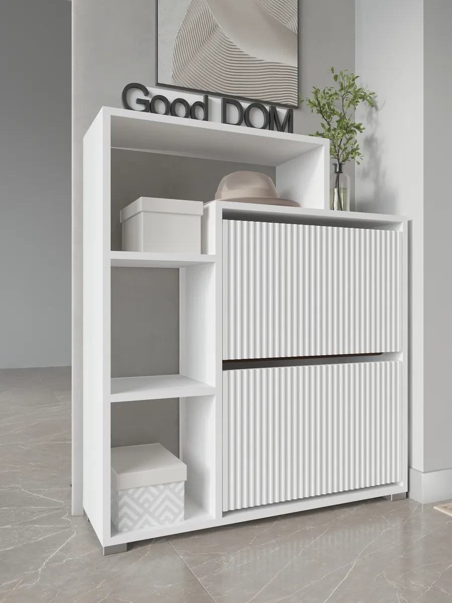 Небольшой напольный шкаф с МДФ-фасадами идеально подходит для хранения обуви и мелочей в прихожей, коридоре или на балконе. Высокий и узкий стеллаж с закрытыми дверцами обеспечивает порядок и аккуратность в домашнем интерьере, позволяя компактно разместить нужные вещи. Этот прочный деревянный шкафчик представляет собой удобную мебельную тумбочку с полочками и ящиками, которые делают хранение максимально функциональным. Столешница служит дополнительной подставкой для аксессуаров или декора, а мебельный дизайн в стиле лофт или скандинавский отлично впишется в любой дом или дачу. Готовый к сборке стеллаж станет частью уютного домашнего пространства, сочетая стиль и практичность. Использование пленки на фасадах защищает поверхность и придает изделию дизайнерский вид. Этот компактный шкаф – хороший выбор для тех, кто хочет купить качественную и долговечную мебель для хранения обуви и других вещей в комнате, бане или на даче.