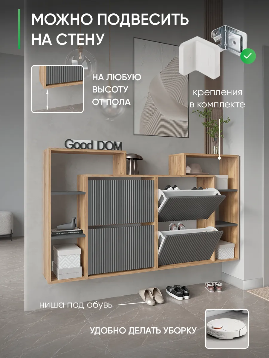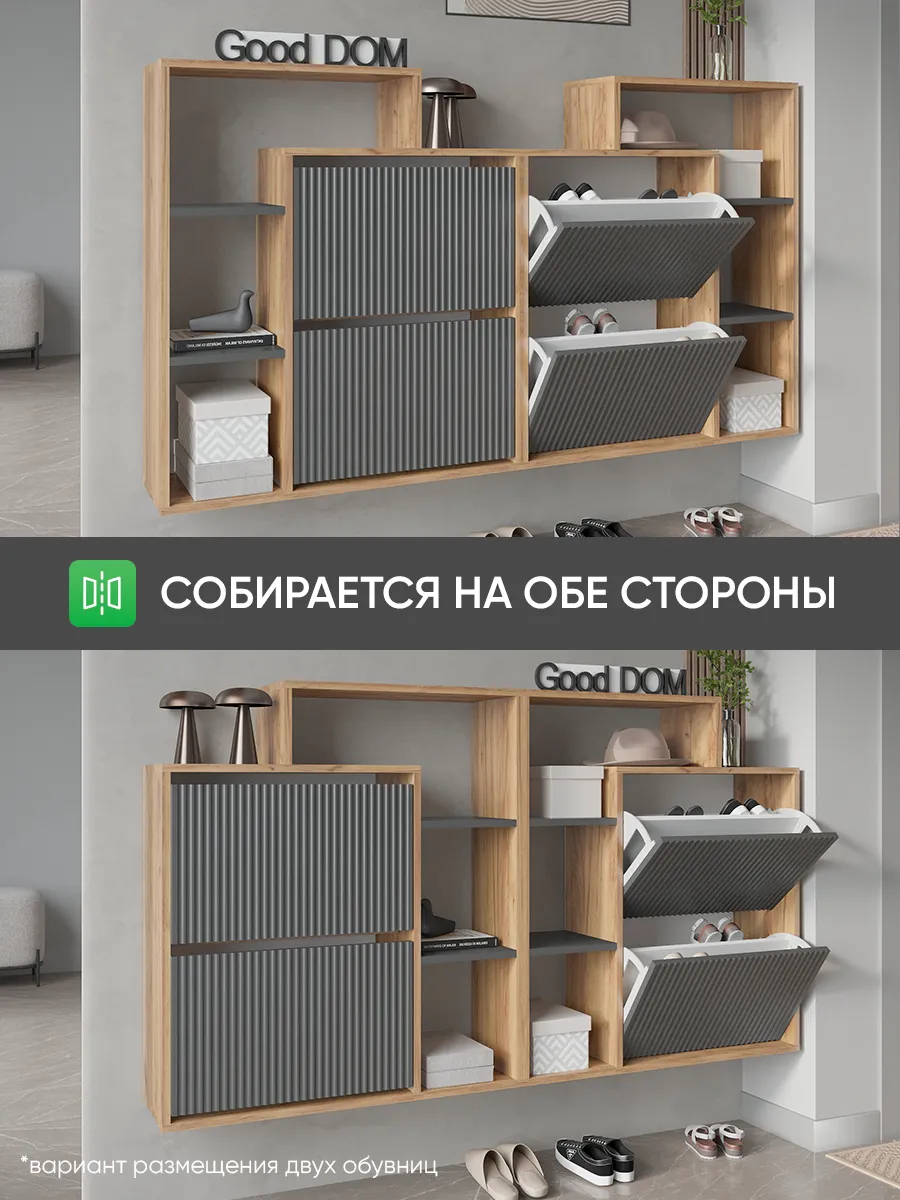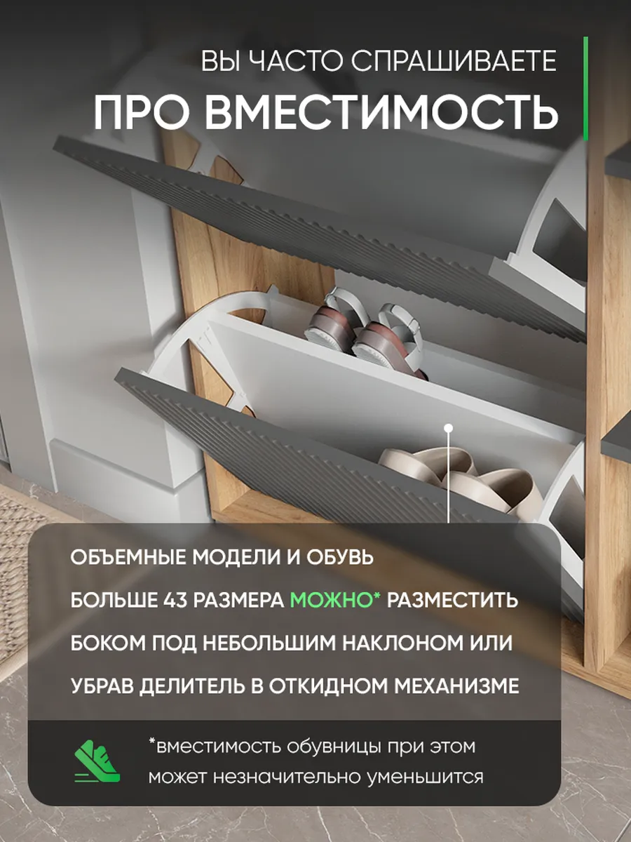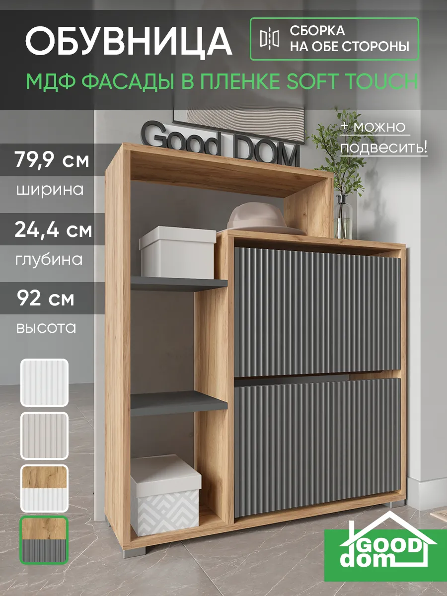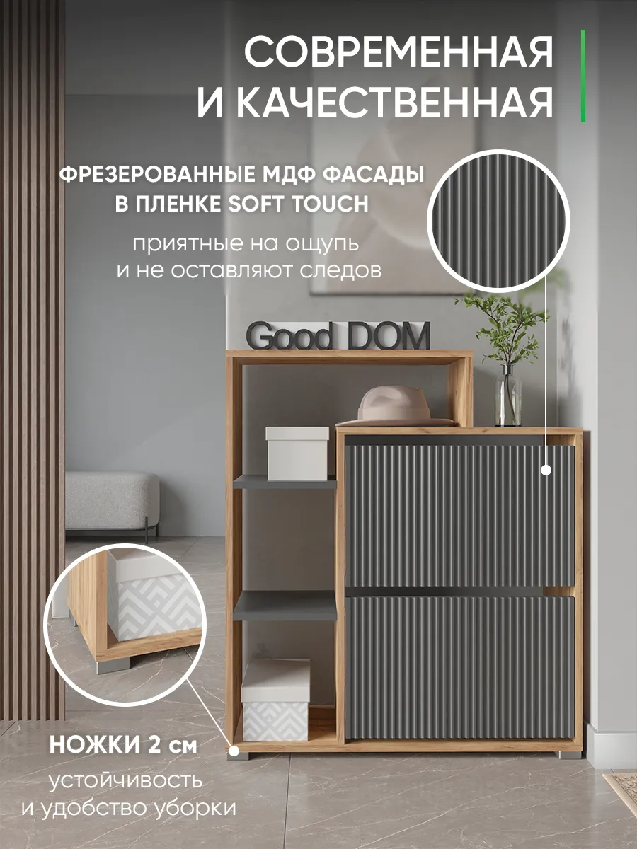Складной и узкий шкаф отлично подходит для хранения не только обуви, но и мелких предметов — сумок, ложек и других нужных вещей. Столешница сверху служит удобной стойкой или подставкой для декора, а высокая конструкция с ножками облегчает уборку под тумбой. Готовая к сборке мебель сделана из качественного дерева и отличается прочностью.