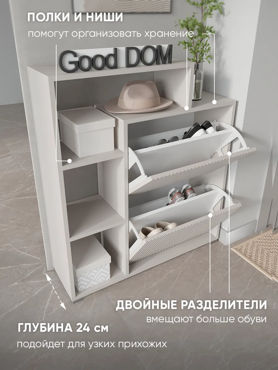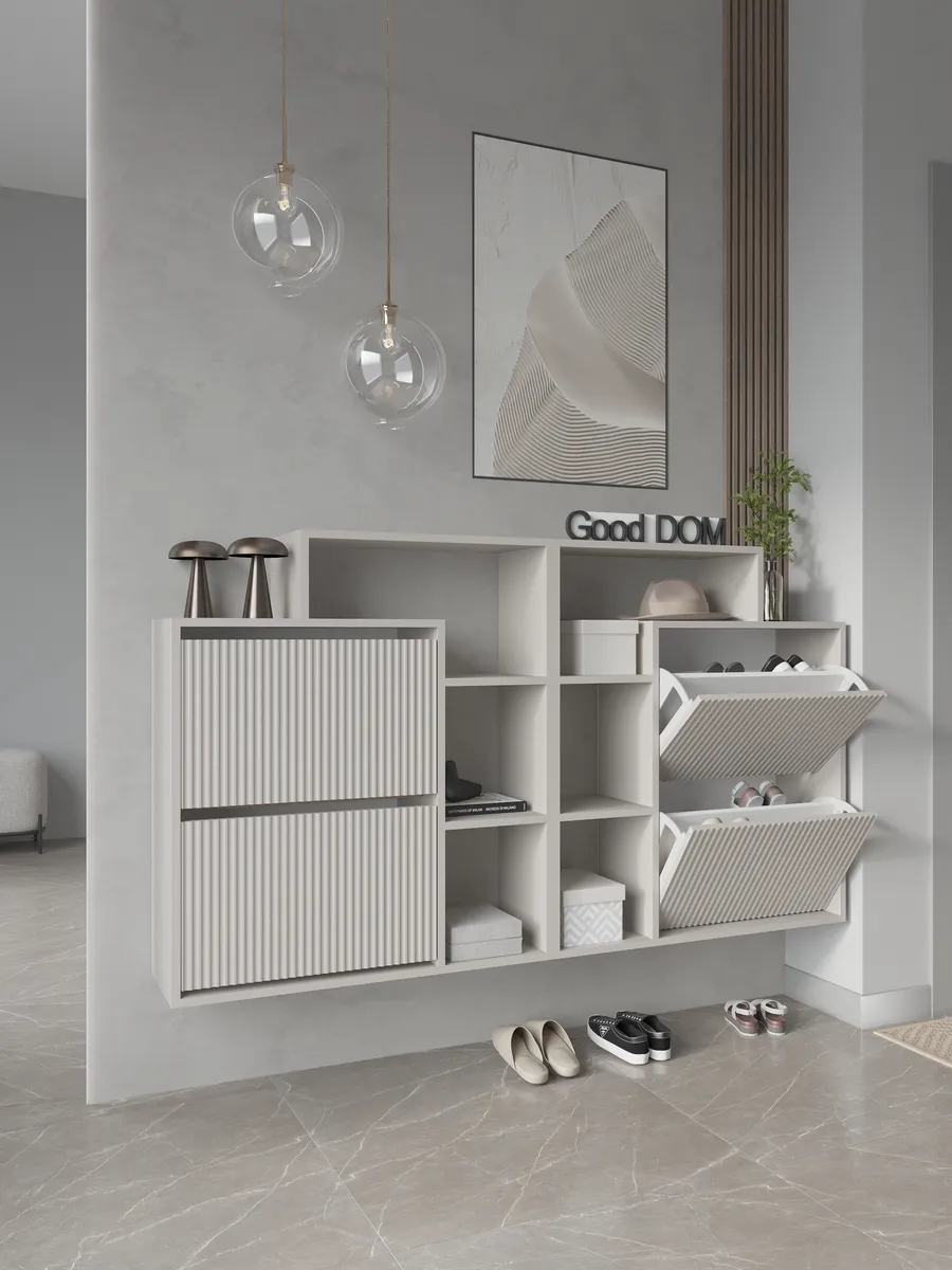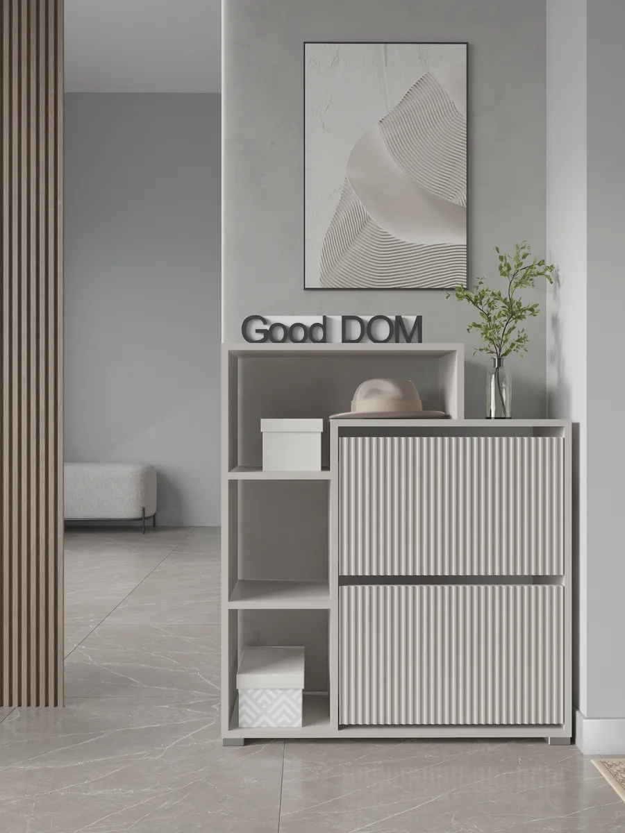 Практичная мебель для дома — идеальное решение для обустройства малогабаритного пространства. Компактная тумба обеспечит удобное хранение обуви, сумок и мелочей в прихожей, балконе или коридоре, а также подойдет для комнаты или даже бани. Узкая и высокая конструкция тумбочки хорошо дополнит стенку или станет самостоятельной стойкой. Фасады оснащены дверцей и дверкой для защищенного хранения. Ящик и полка помогут организовать порядок, разместить ложку, ключ или мини подставку, а сверху можно хранить бытовые предметы, включительно с аксессуарами и декором. Бежевый цвет добавит уюта, визуально расширив пространство, что особенно актуально для узких коридоров и небольших помещений. Прочный лисп сочетается с деревянным эффектом, подчеркивая универсальный стиль лофт или современный интерьер. Дополнительная полочка и открытый стеллаж обеспечивают быстрый доступ к обуви и предметам первой необходимости, а закрытый отсек незаменим для хранения вещей, которые не должны быть на виду.