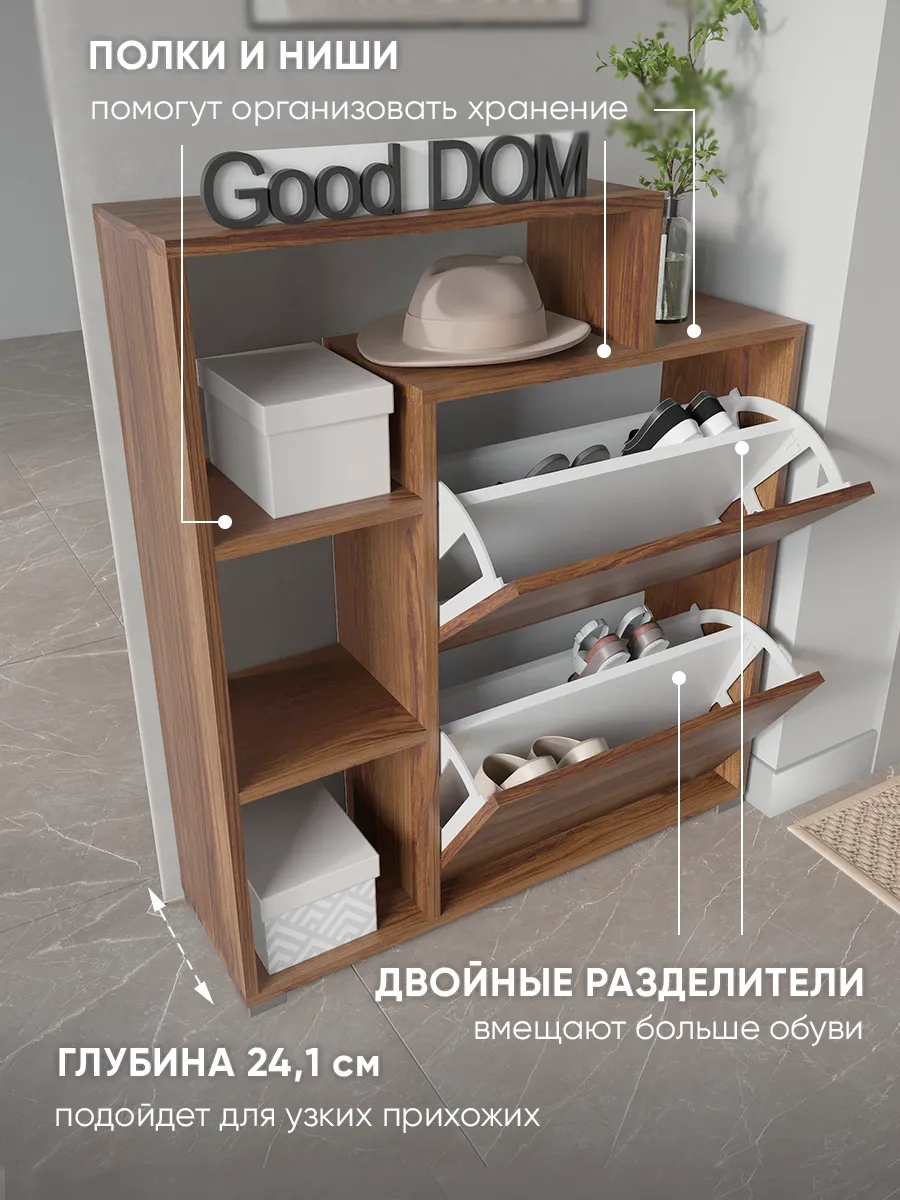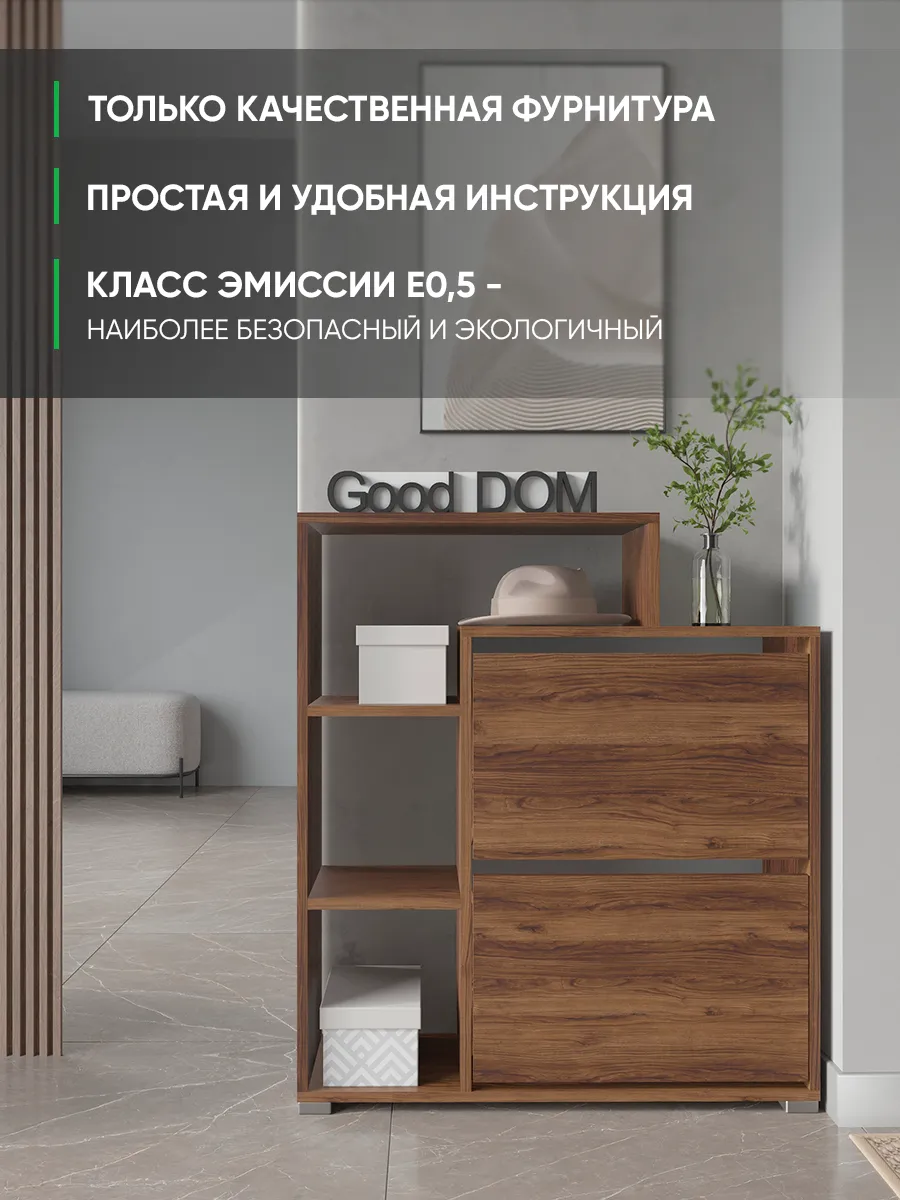 В нашем ассортименте представлена другая мебель для прихожей (и не только) – вы можете легко посмотреть весь ассортимент, щелкнув на значок логотипа. Мы постоянно работаем над качеством нашей продукции, поэтому улучшили упаковку - наша усиленная упаковка Вашу Обувницу при доставке от сломанных углов и сколов! Выбирая продукцию отечественного производителя Good Дом, все в Дом Вы обеспечиваете себя гарантией на продукцию сроком в 1 год, Вы выбираете качество и комфорт.