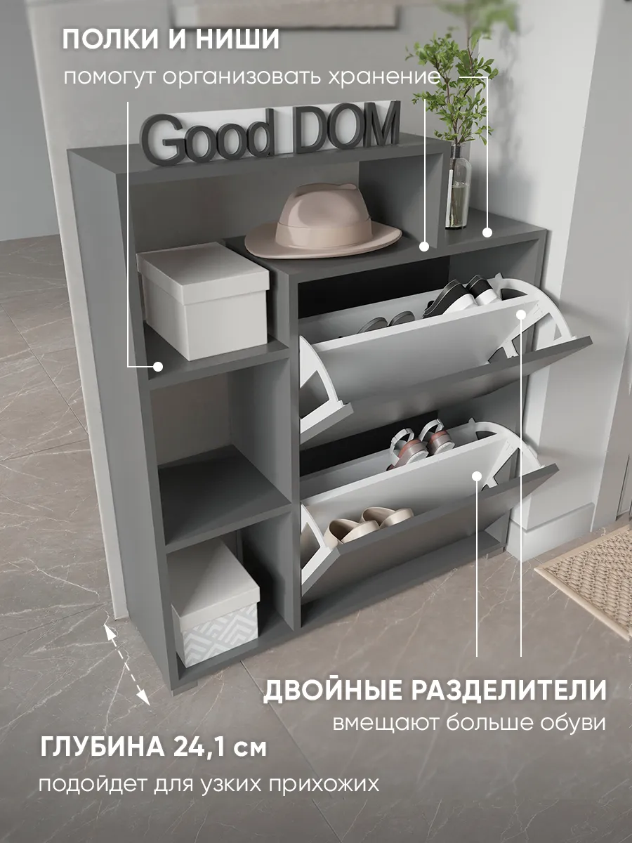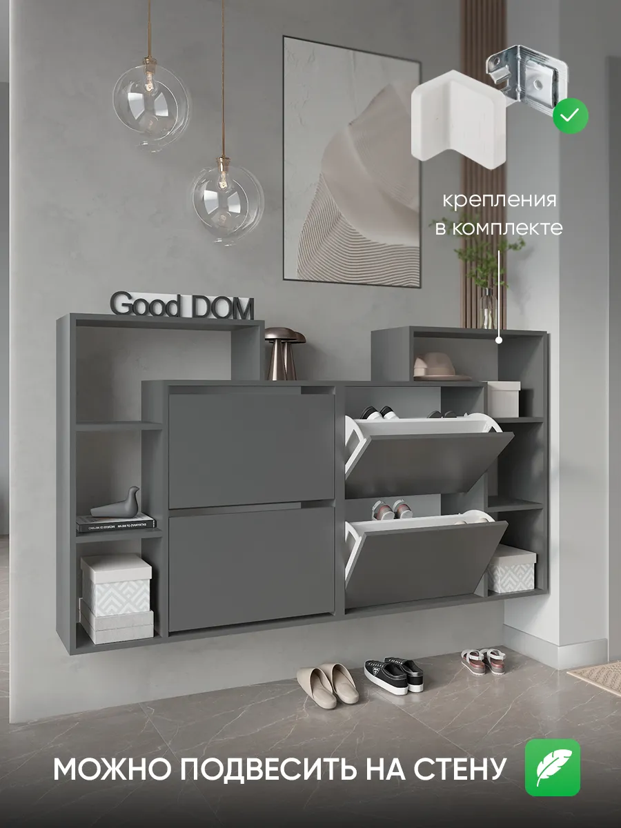 В нашем ассортименте представлена другая мебель для прихожей (и не только) – вы можете легко посмотреть весь ассортимент, щелкнув на значок логотипа. Мы постоянно работаем над качеством нашей продукции, поэтому улучшили упаковку - наша усиленная упаковка Вашу Обувницу при доставке от сломанных углов и сколов! Выбирая продукцию отечественного производителя Good Дом, все в Дом Вы обеспечиваете себя гарантией на продукцию сроком в 1 год, Вы выбираете качество и комфорт.