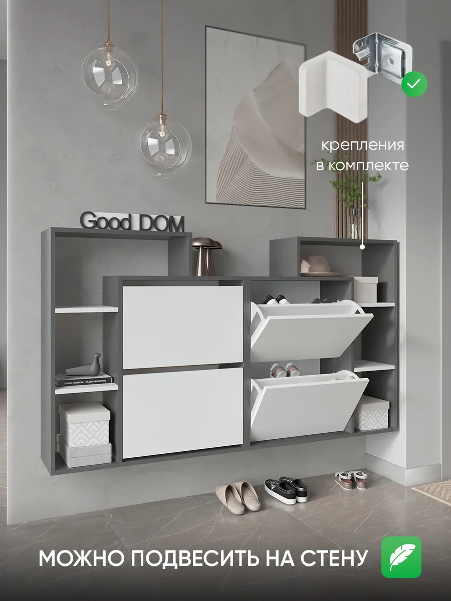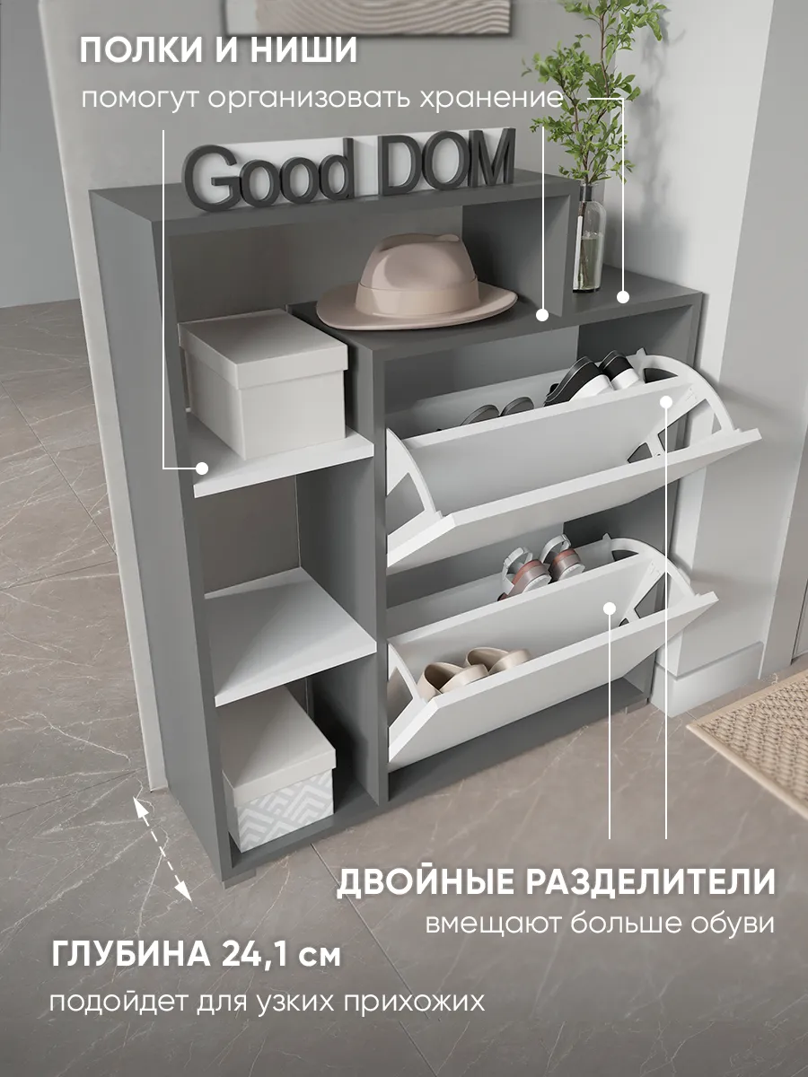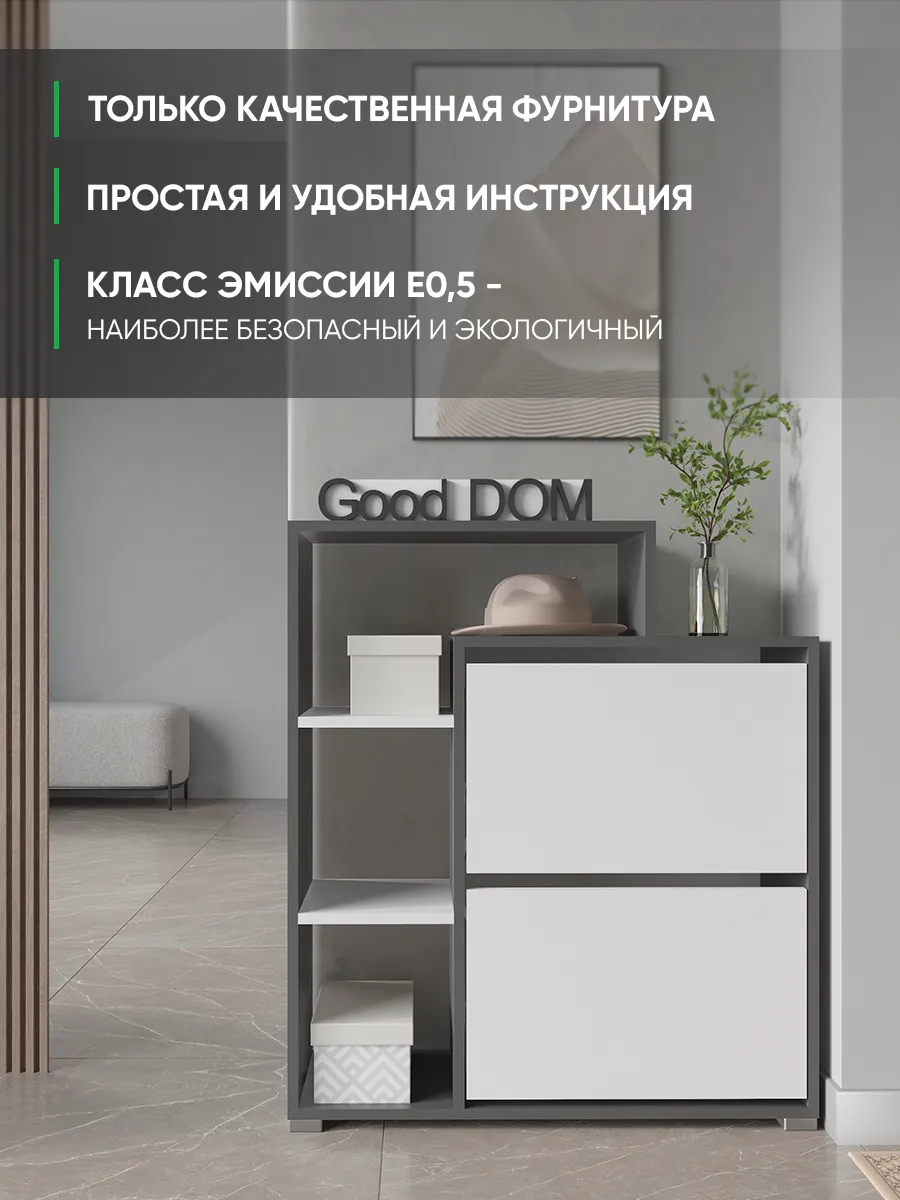 В нашем ассортименте представлена другая мебель для прихожей (и не только) – вы можете легко посмотреть весь ассортимент, щелкнув на значок логотипа. Мы постоянно работаем над качеством нашей продукции, поэтому улучшили упаковку - наша усиленная упаковка Вашу Обувницу при доставке от сломанных углов и сколов! Выбирая продукцию отечественного производителя Good Дом, все в Дом Вы обеспечиваете себя гарантией на продукцию сроком в 1 год, Вы выбираете качество и комфорт.