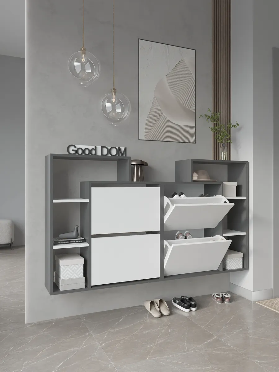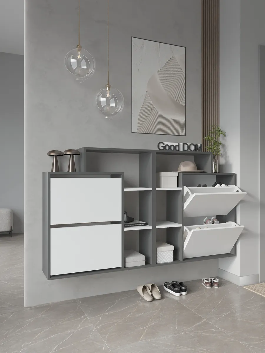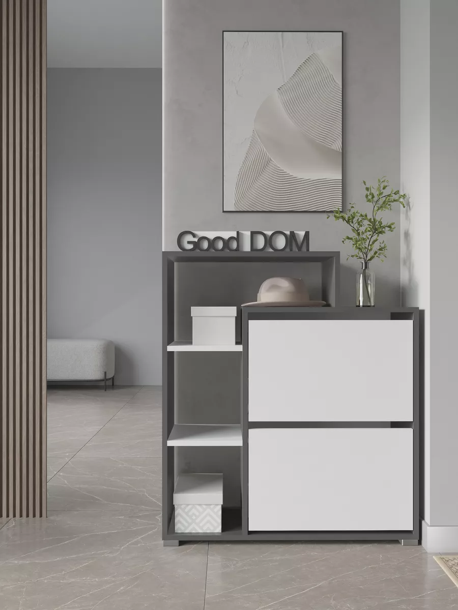 Обувница закрытая с откидными полками "Вдохновение" - идеальное решение для вашего коридора или прихожей. Функциональная обувница с полками поможет компактно разместить не только обувь, но и головные уборы аксессуары и даже декор. Закрытая обувница-тумба с дверкой защитит вашу обувь от пыли и грязи. Ножки исключат повреждение напольного покрытия и обеспечат устойчивость. Узкая обувница деревянная подойдет даже для малогабаритной комнаты и сэкономит полезное пространство квартиры или дома. Обувница в прихожую имеет два отделения с откидной полкой и открытые полки сбоку. Кроме того, сверху есть широкая столешница полки для обуви подойдет для ключей, бижутерии или сумок. Галошница в универсальном стиле подойдет под любой лофт интерьер, а варианты расцветок помогут подобрать шкаф для обуви под ваш существующий интерьер. Благодаря своим небольшим габаритам, тумба может быть установлена практически в любом помещении: на балконе, в офисе, на даче. Вместе с тем, мини комод может использоваться не только для хранения обуви. Вы можете использовать ее в качестве органайзера для мелочей, стеллажа для книг или аксессуаров, складной стойки для офисных принадлежностей или даже шкафчик для полотенец в бане. Обувная полочка легко заменит громоздкую в прихожей мебель в коридор, комод стенку или шкаф.