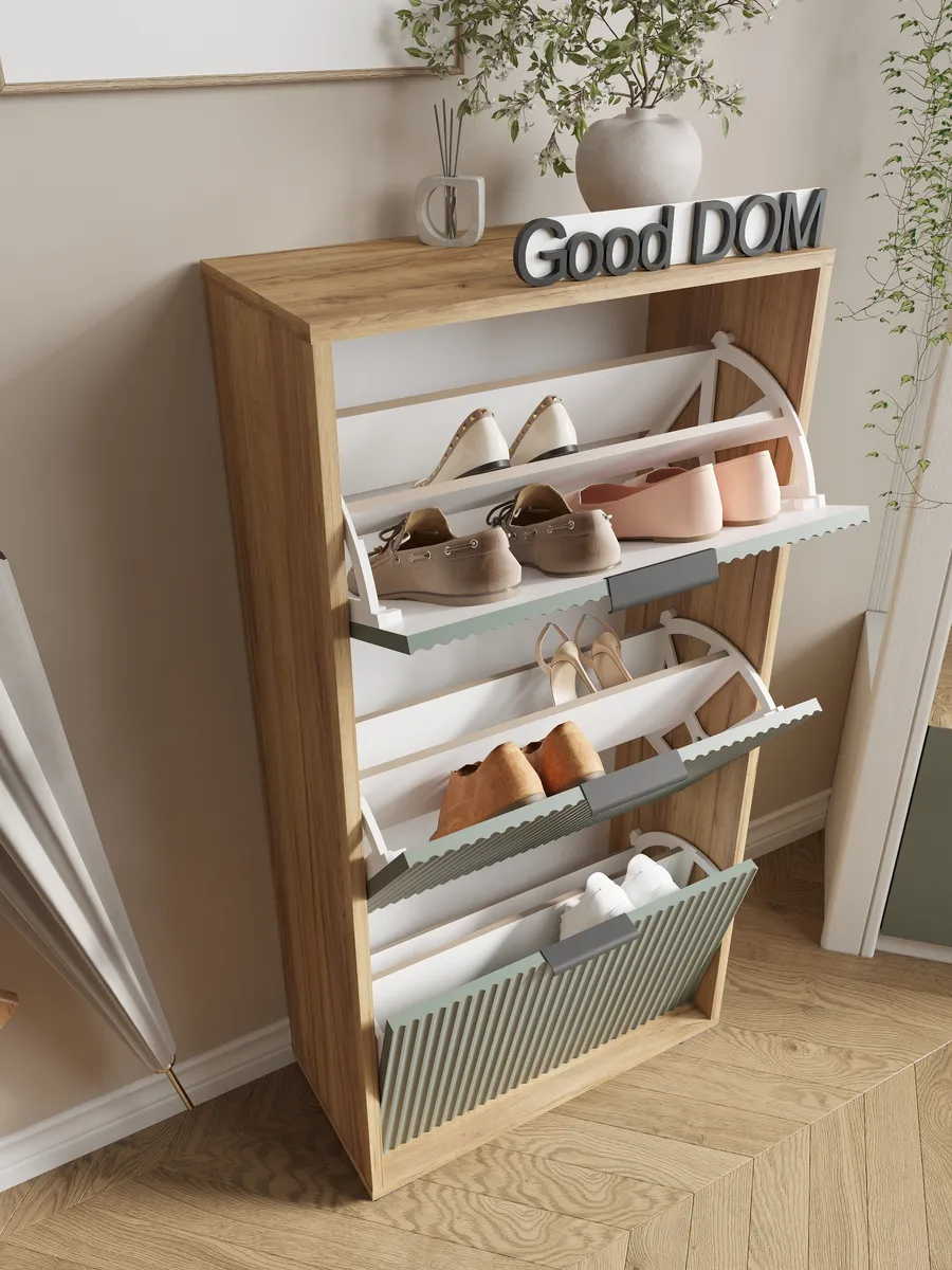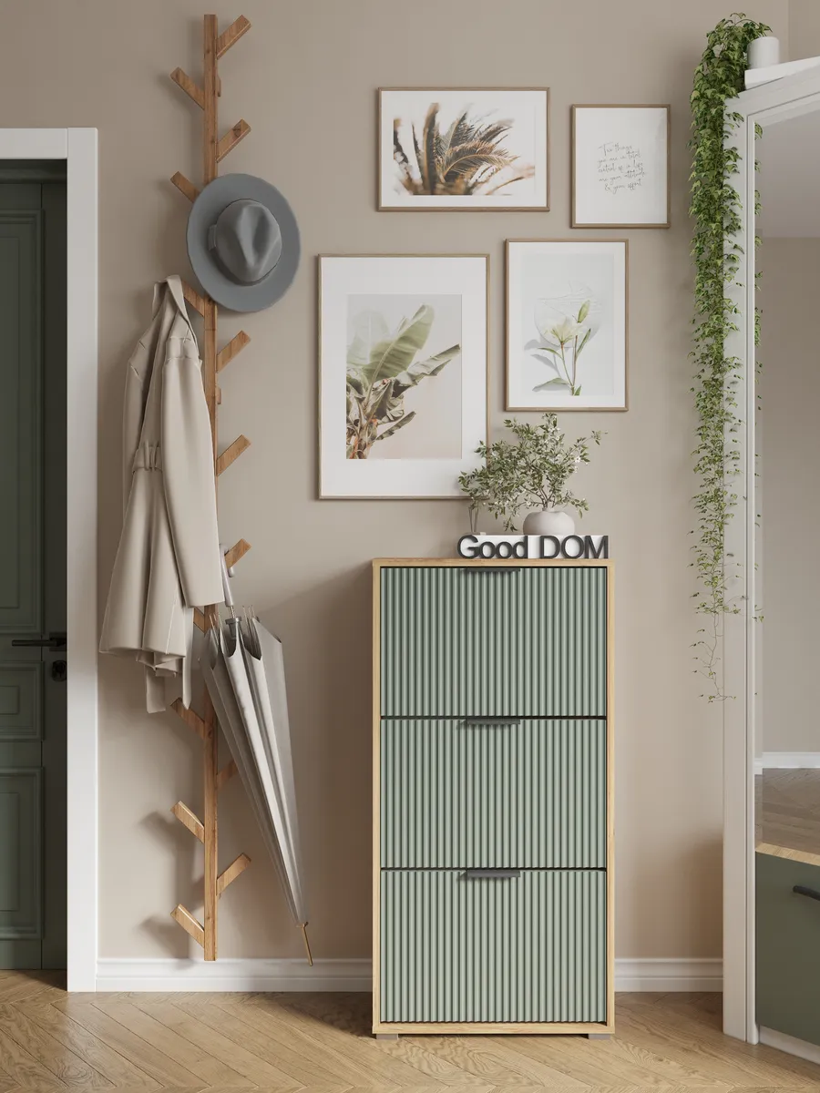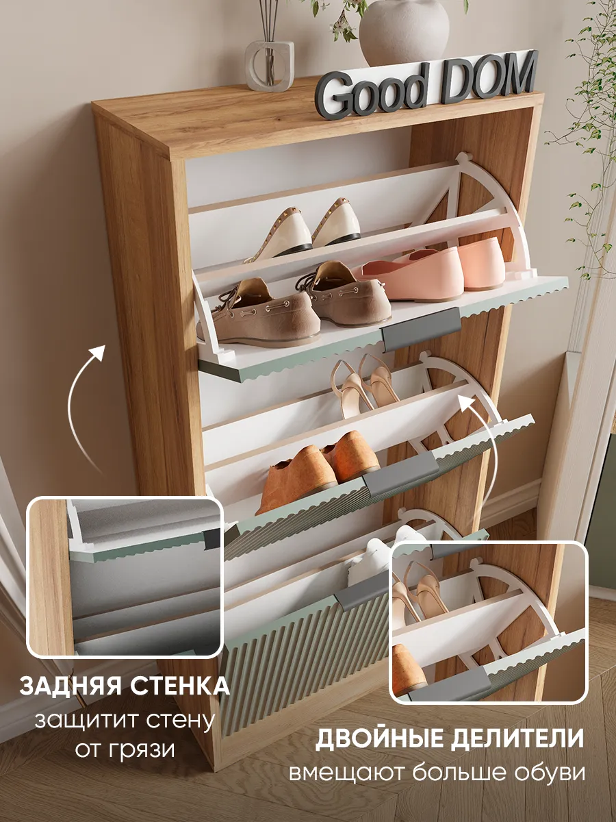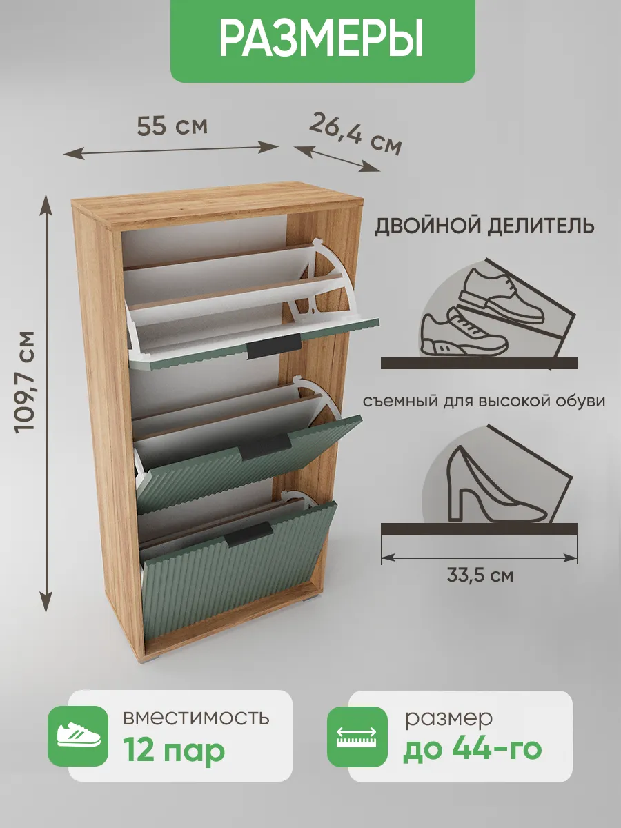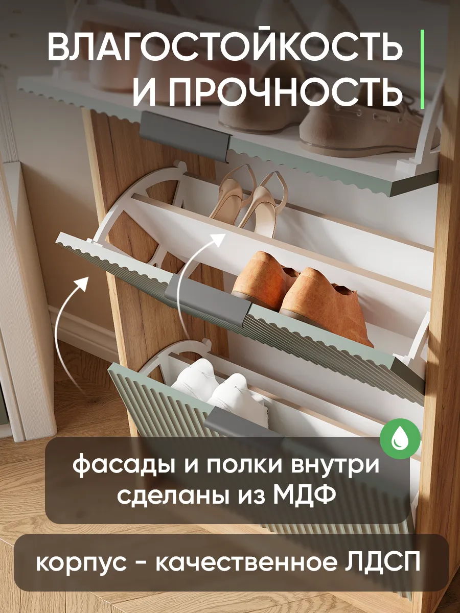 Настенный вариант мебели отличается вместительностью при минимальных габаритах, что позволяет разместить ее даже в узком коридоре или небольшой кладовке. Обувной ящик оснащен качественной фурнитурой, обеспечивающей плавное открытие и прочность. Задний стеллаж дополняет функциональность, позволяя хранить мелочь и сумки, поддерживая порядок в доме.
