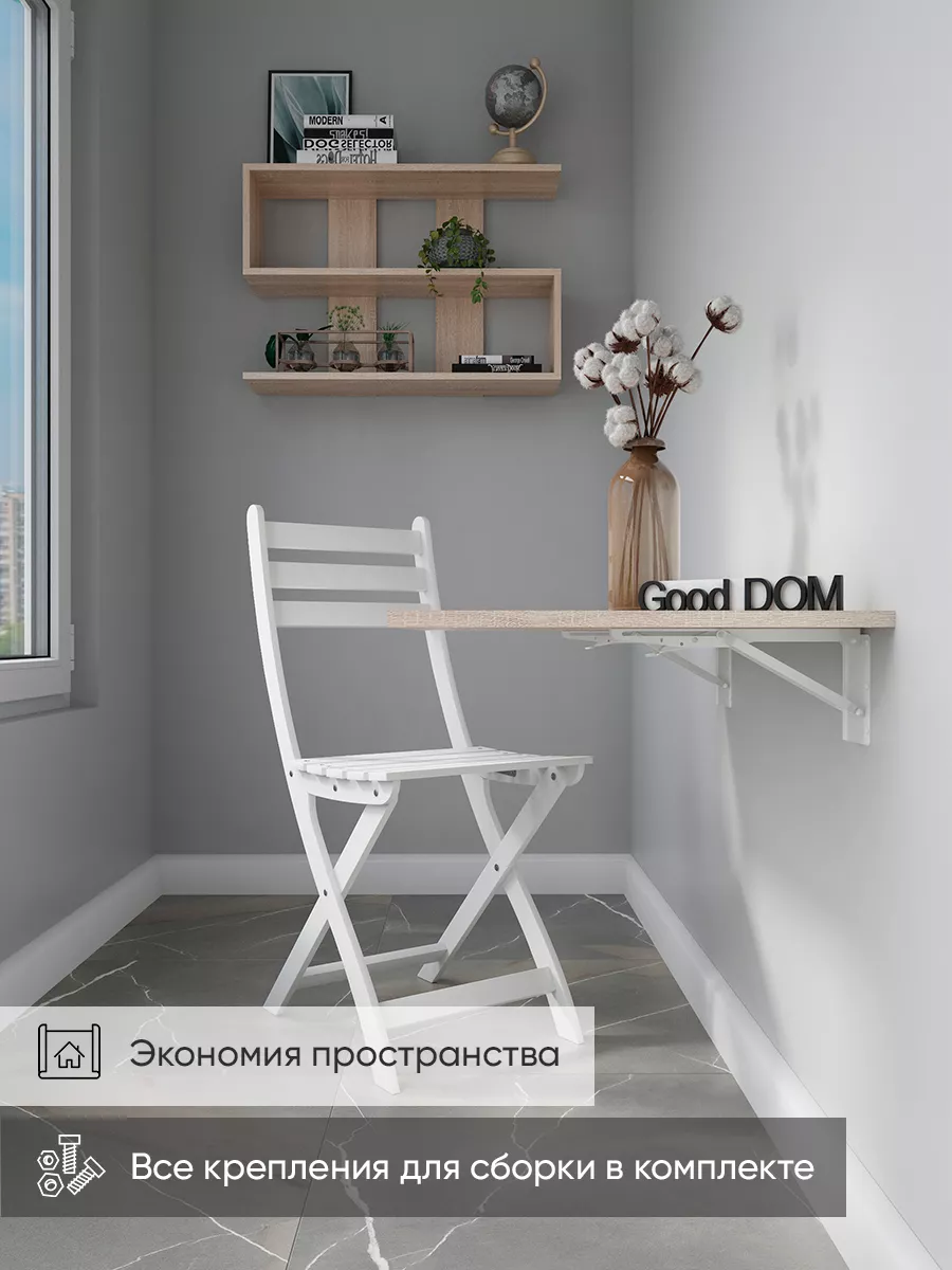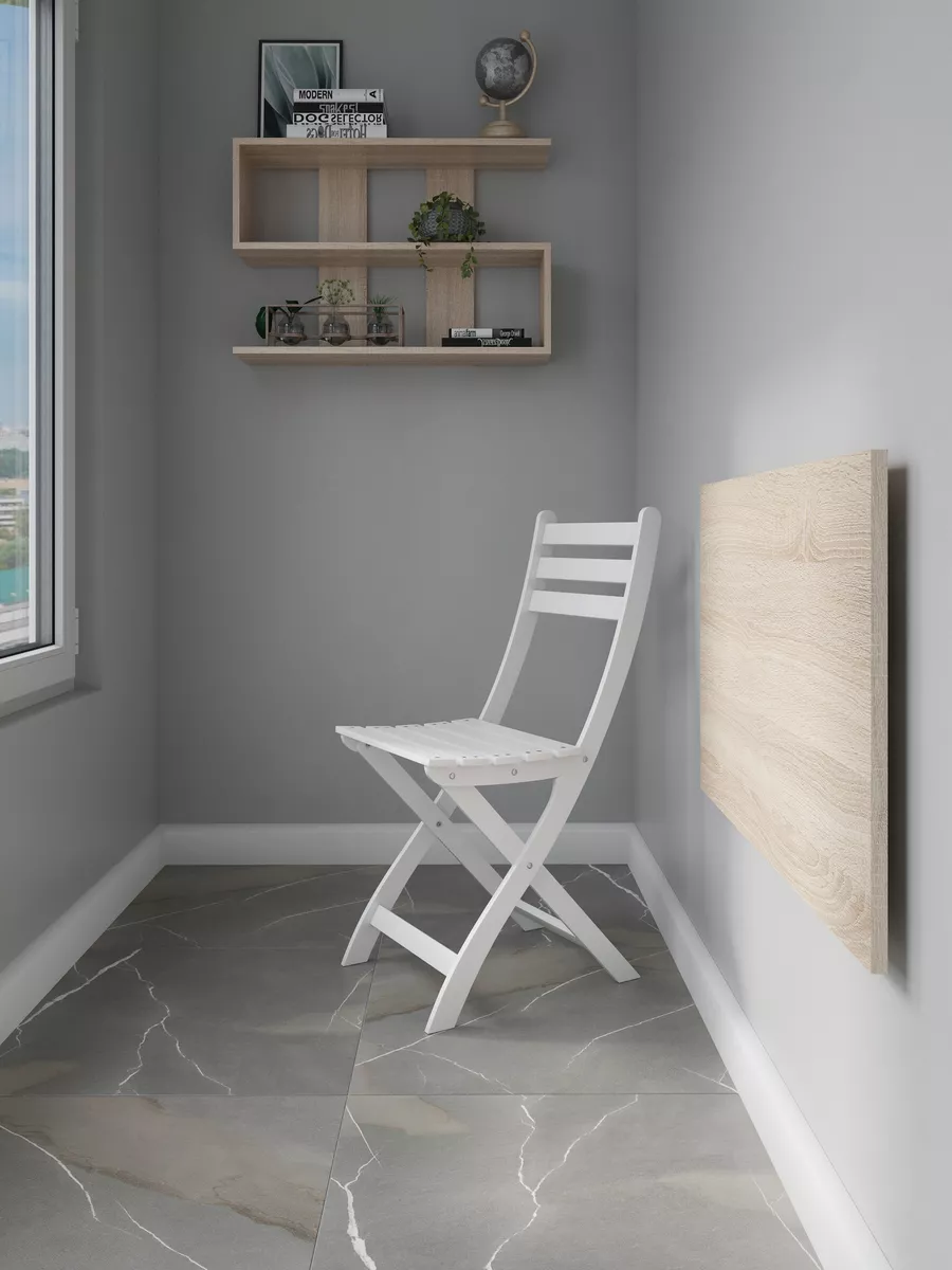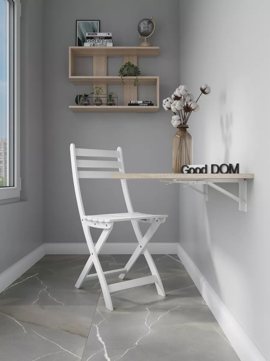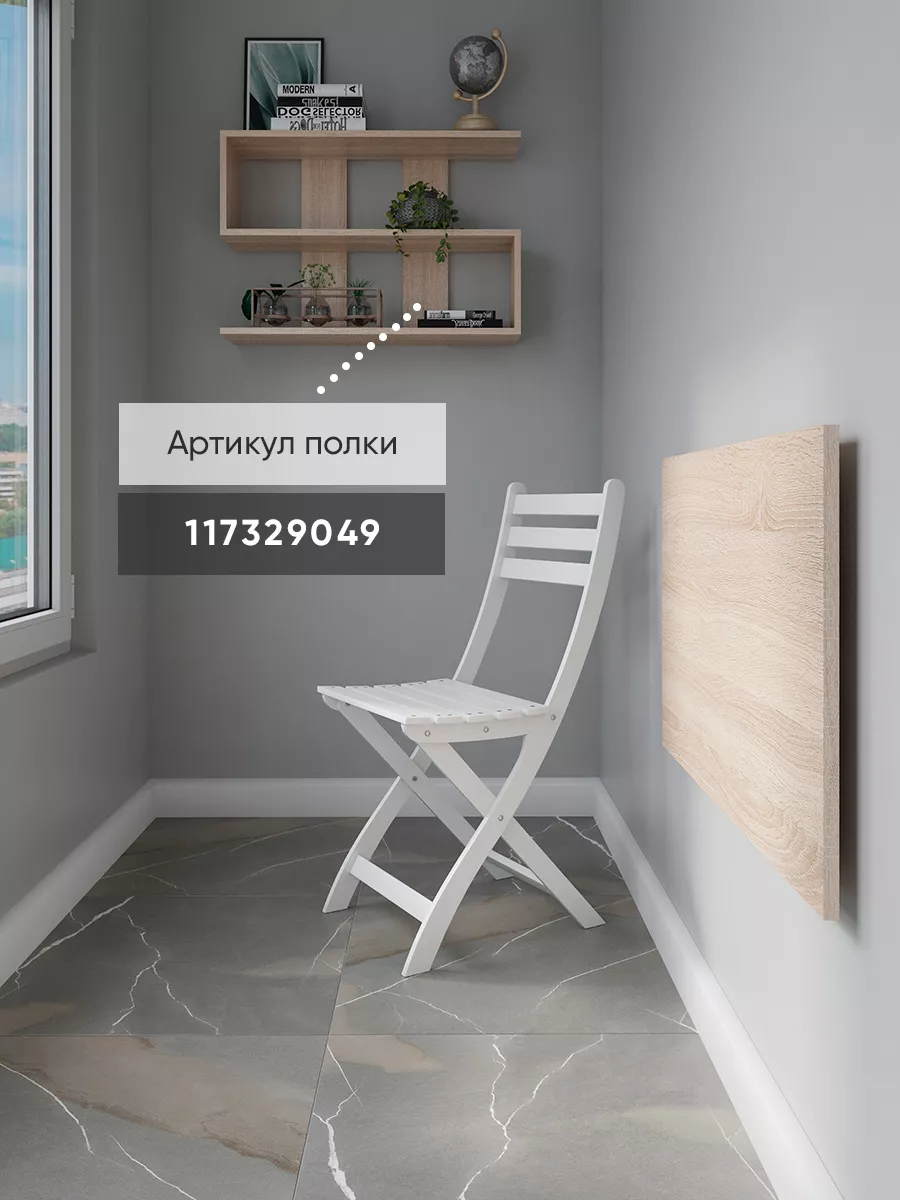 Откидной настенный стол “Сатурн” со своей конструкцией и креплениями к стене отлично подойдет в качестве мебели на кухню, балкон, лоджию, в загородный дом (для дачи), в любую комнату. Отменное качество мебели может служить Вам долгое время в качестве обеденного, письменного, журнального, компьютерного стола, стола для планшета. Стол откидной можно установить абсолютно в любое помещение, где Вам необходима рабочее место стола. Требуется лишь вертикальная поверхность, к которой раскладной столик крепится надежными креплениями из стали. Конструкция стола мини книжки позволяет выдерживать распределенную нагрузку до 50 кг. Поэтому стол трансформер настенный предполагает очень широкое применение. На кухне и даче у вас появится компактное место для завтрака, для чашки кофе, для обеда. В комнате благодаря откидному столику появится рабочее место для занятий школьнику, взрослому, для занятий на ноутбуке, планшете. Механизм для откидного стола обеспечивает легкий поворот и надежную фиксацию. Качественная, удобная и компактная конструкция позволит легко собрать стол и вот он уже не мешает и не занимает место. В небольших помещениях, таких как балкон и лоджия, можно организовать уютное место для отдыха, за столиком приятно попить чай или кофе, полистать журналы и почитать книги, газеты. В сложенном виде стол выглядит как столешница, прижатая к стене, а в разложенном - удобная, прочная и многофункциональная поверхность. Стол на стену изготовлен из ЛДСП - материала крепкого, надежного и долговечного. Товар сертифицирован, соответствует ГОСТам, действует гарантия от производителя. В сложенном виде от стены до столешницы 3 см. + столешница 1,6 см.