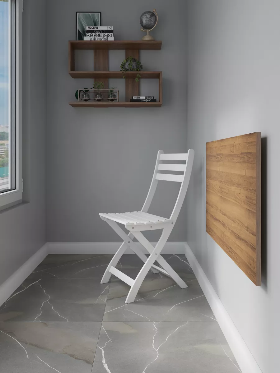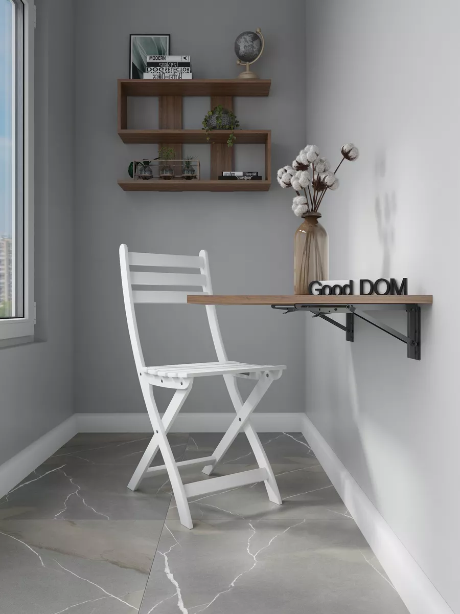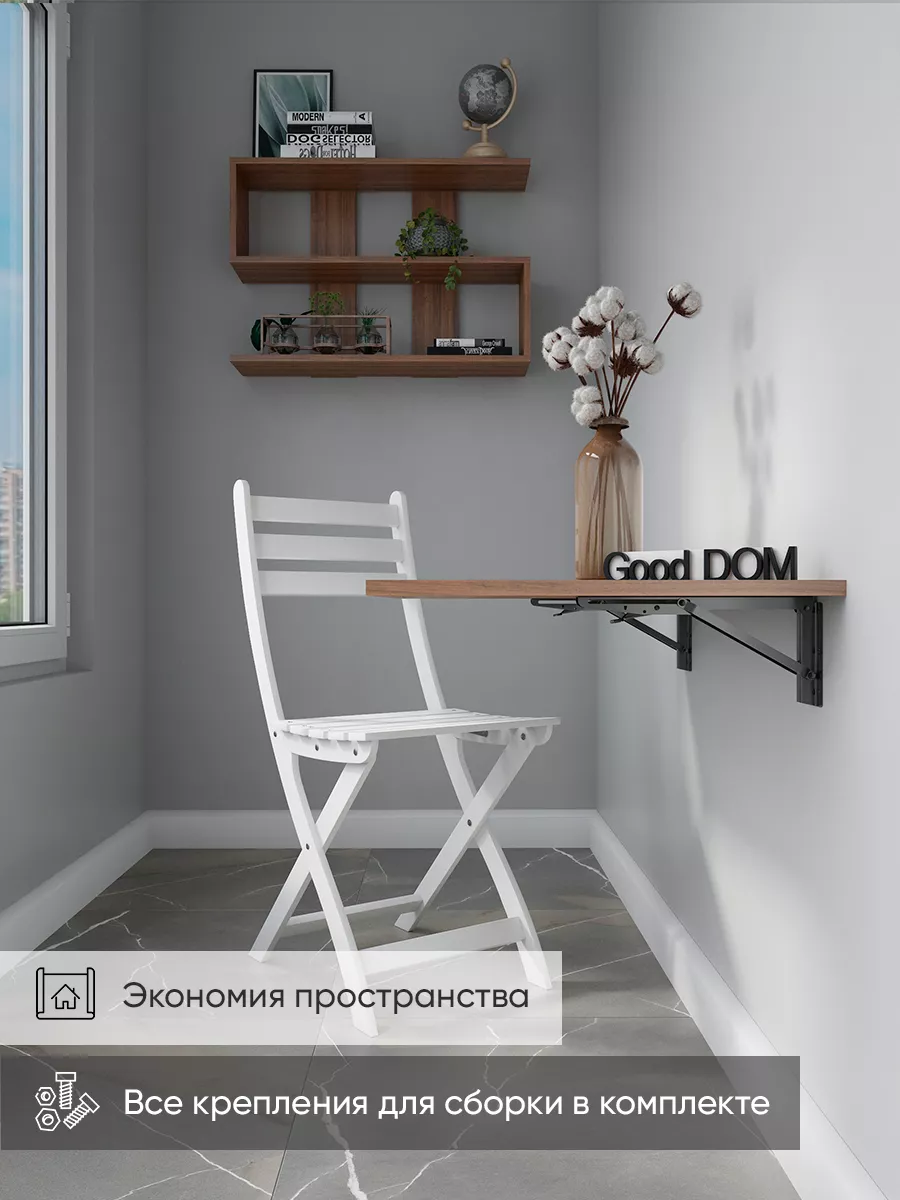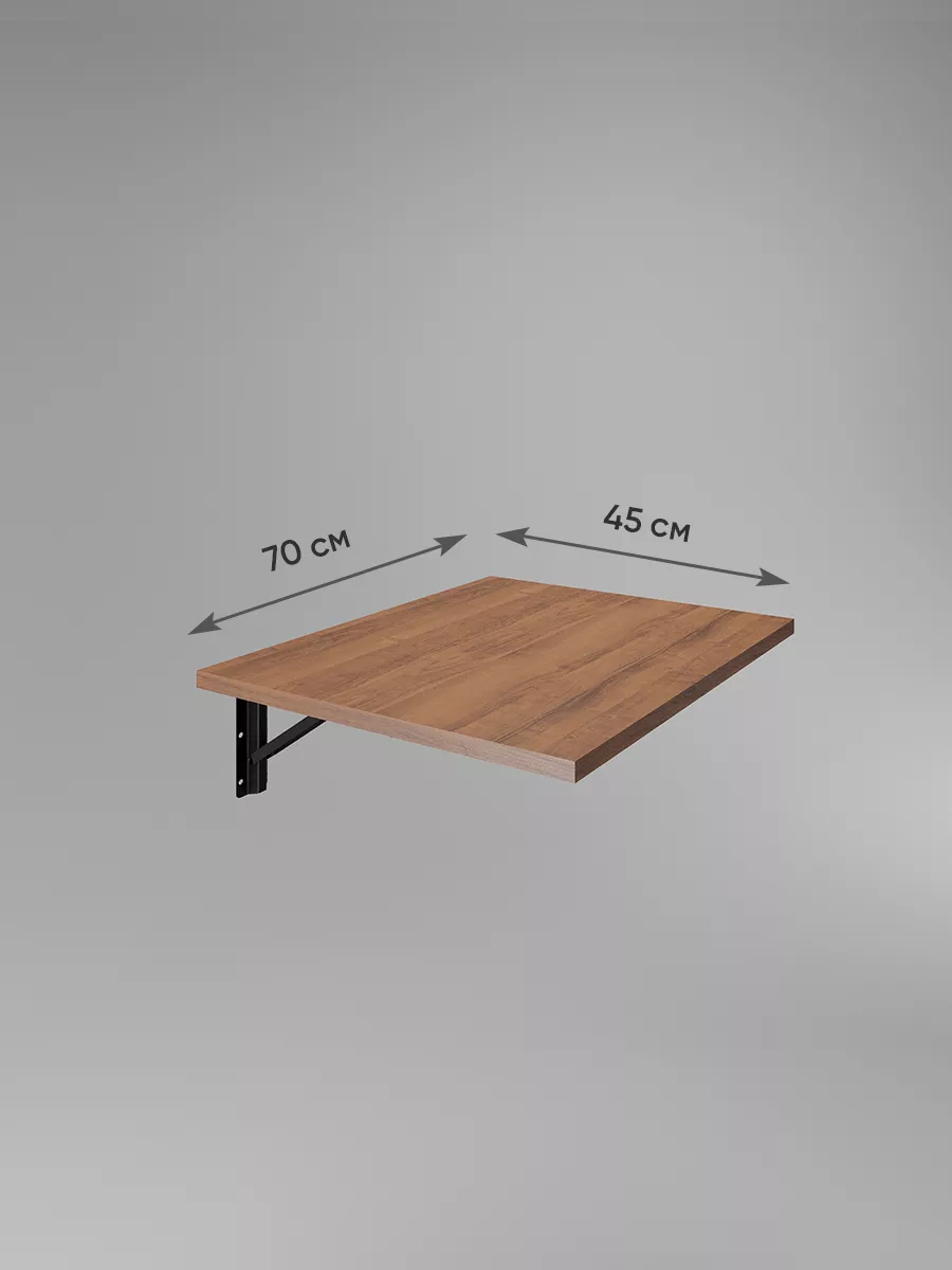 Откидной настенный стол “Сатурн” со своей конструкцией и креплениями к стене отлично подойдет в качестве мебели на кухню, балкон, лоджию, в загородный дом (для дачи), в любую комнату. Отменное качество мебели может служить Вам долгое время в качестве обеденного, письменного, журнального, компьютерного стола, стола для планшета. Стол откидной можно установить абсолютно в любое помещение, где Вам необходима рабочее место стола. Требуется лишь вертикальная поверхность, к которой раскладной столик крепится надежными креплениями из стали. Конструкция стола мини книжки позволяет выдерживать распределенную нагрузку до 50 кг. Поэтому стол трансформер настенный предполагает очень широкое применение. На кухне и даче у вас появится компактное место для завтрака, для чашки кофе, для обеда. В комнате благодаря откидному столику появится рабочее место для занятий школьнику, взрослому, для занятий на ноутбуке, планшете. Механизм для откидного стола обеспечивает легкий поворот и надежную фиксацию. Качественная, удобная и компактная конструкция позволит легко собрать стол и вот он уже не мешает и не занимает место. В небольших помещениях, таких как балкон и лоджия, можно организовать уютное место для отдыха, за столиком приятно попить чай или кофе, полистать журналы и почитать книги, газеты. В сложенном виде стол выглядит как столешница, прижатая к стене, а в разложенном - удобная, прочная и многофункциональная поверхность. Стол на стену изготовлен из ЛДСП - материала крепкого, надежного и долговечного. Товар сертифицирован, соответствует ГОСТам, действует гарантия от производителя. В сложенном виде от стены до столешницы 3 см. + столешница 1,6 см.