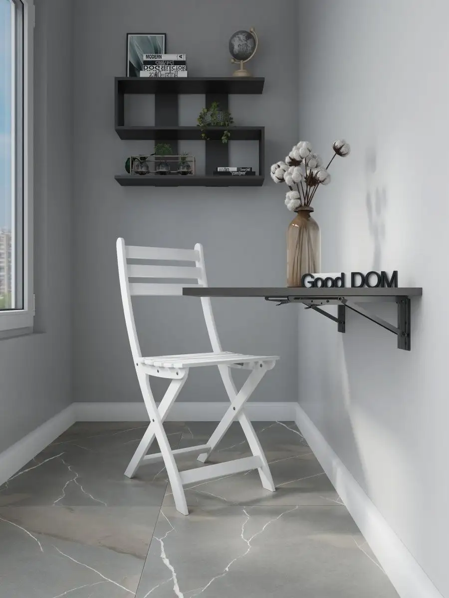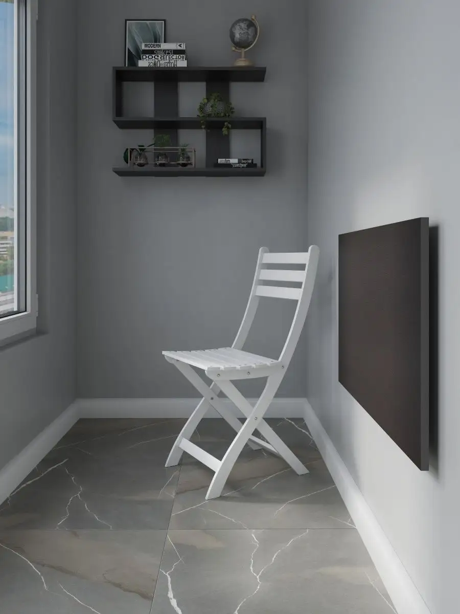 Откидной настенный стол “Сатурн” со своей конструкцией и креплениями к стене отлично подойдет в качестве мебели на кухню, балкон, лоджию, в загородный дом (для дачи), в любую комнату. Отменное качество мебели может служить Вам долгое время в качестве обеденного, письменного, журнального, компьютерного стола, стола для планшета. Стол откидной можно установить абсолютно в любое помещение, где Вам необходима рабочее место стола. Требуется лишь вертикальная поверхность, к которой раскладной столик крепится надежными креплениями из стали. Конструкция стола мини книжки позволяет выдерживать распределенную нагрузку до 50 кг. Поэтому стол трансформер настенный предполагает очень широкое применение. На кухне и даче у вас появится компактное место для завтрака, для чашки кофе, для обеда. В комнате благодаря откидному столику появится рабочее место для занятий школьнику, взрослому, для занятий на ноутбуке, планшете. Механизм для откидного стола обеспечивает легкий поворот и надежную фиксацию. Качественная, удобная и компактная конструкция позволит легко собрать стол и вот он уже не мешает и не занимает место. В небольших помещениях, таких как балкон и лоджия, можно организовать уютное место для отдыха, за столиком приятно попить чай или кофе, полистать журналы и почитать книги, газеты. В сложенном виде стол выглядит как столешница, прижатая к стене, а в разложенном - удобная, прочная и многофункциональная поверхность. Стол на стену изготовлен из ЛДСП - материала крепкого, надежного и долговечного. Товар сертифицирован, соответствует ГОСТам, действует гарантия от производителя. В сложенном виде от стены до столешницы 3 см. + столешница 1,6 см.