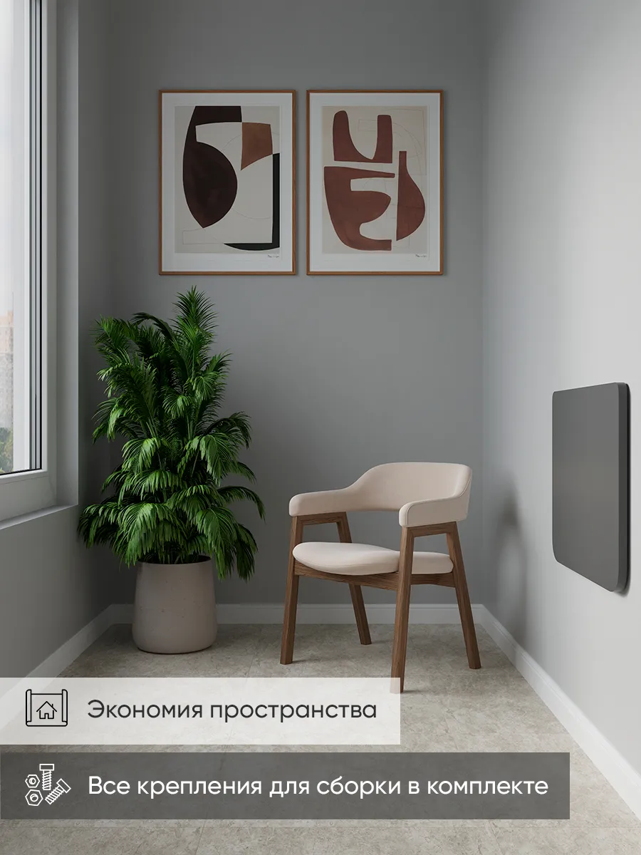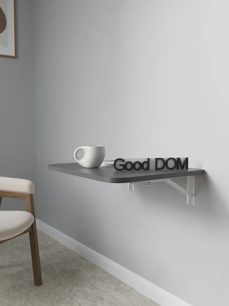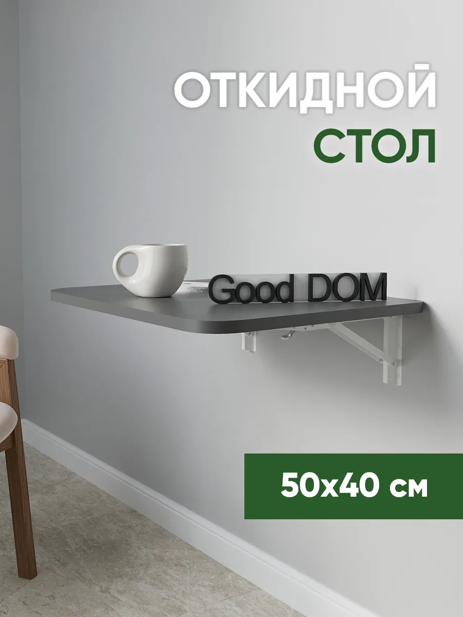 Откидной настенный стол, недорогой раскладной столик, стол-трансформер, от отечественного производителя Good-дом сэкономит пространство в квартире. Благодаря надежному креплению из стали, стол мини книжка на стену выдерживает нагрузку до 50 кг и может служить как письменный или рабочий стол и даже учебной партой. Отлично будет смотреться в качестве стола раздвижного на кухне, стола журнального в мастерской, стола раскладного в кабинете маникюра и стола письменного на балконе. Откидной навесной стол из ЛДСП отличается надежностью и лаконичным дизайном. Стол-трансформер, стол откидной мини-книжка с настенным креплением отлично подойдет как мебель на балкон, для гостиной, в кабинет, для кухни. Закажите товар и уже завтра получите удобный, крепкий атрибут мебели! Товар сертифицирован, соответствует ГОСТам, действует гарантия от производителя. В сложенном виде от стены до столешницы 3 см. + столешница 1,6 см