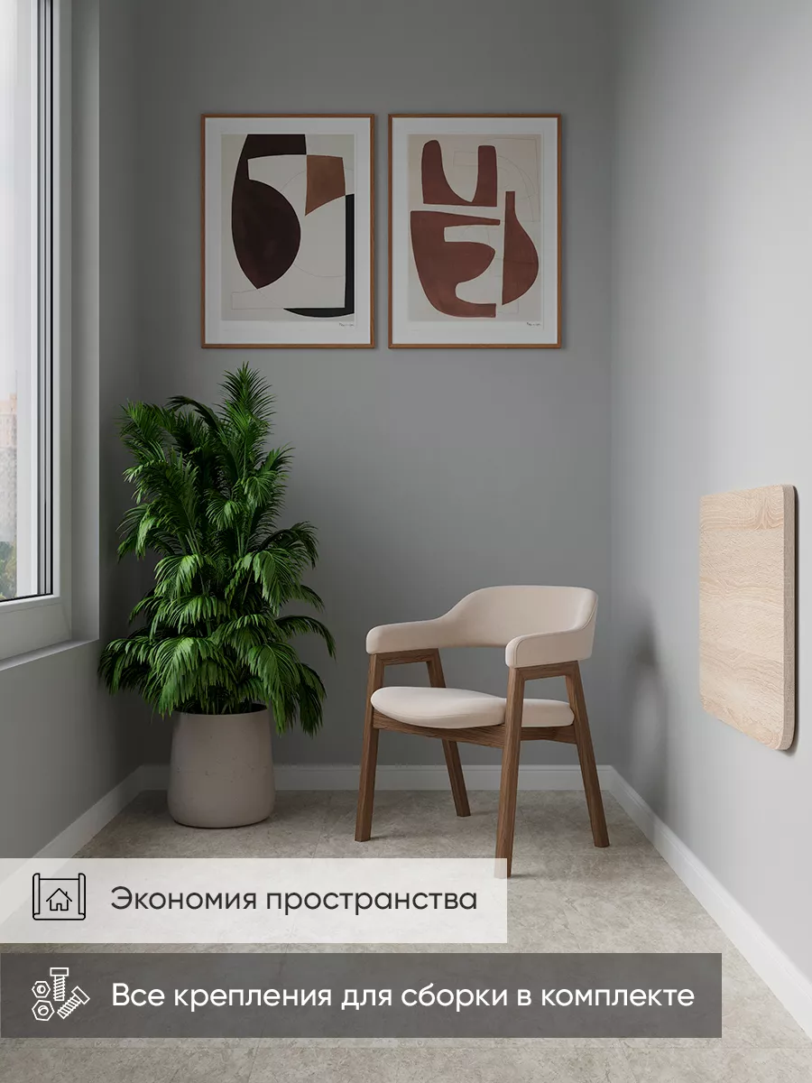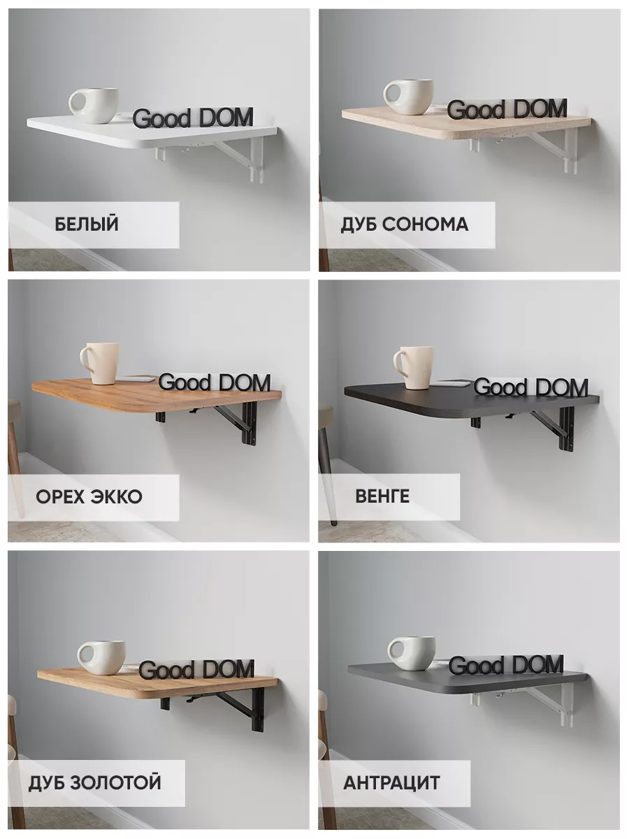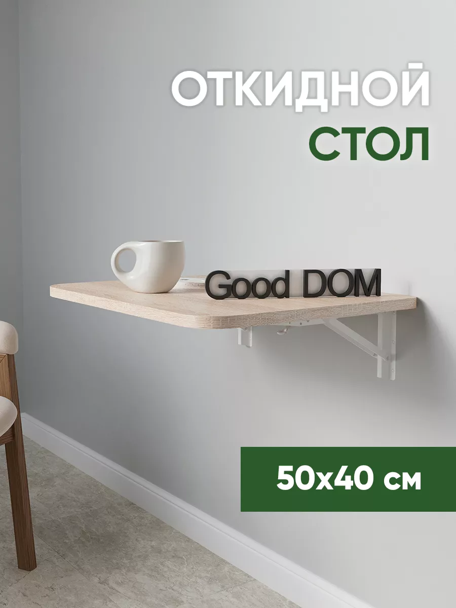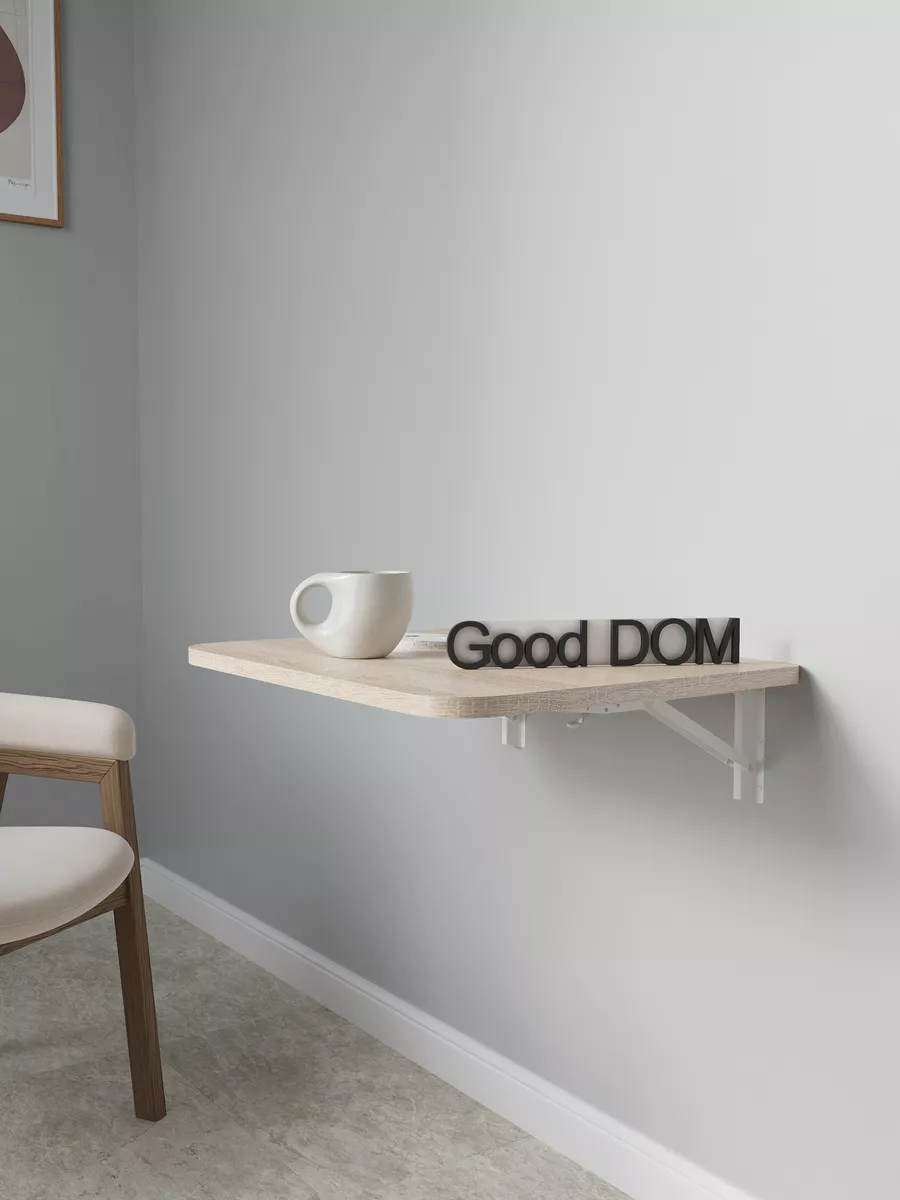Откидной настенный стол, недорогой раскладной столик, стол-трансформер, от отечественного производителя Good-дом сэкономит пространство в квартире. Благодаря надежному креплению из стали, стол мини книжка на стену выдерживает нагрузку до 50 кг и может служить как письменный или рабочий стол и даже учебной партой. Отлично будет смотреться в качестве стола раздвижного на кухне, стола журнального в мастерской, стола раскладного в кабинете маникюра и стола письменного на балконе. Откидной навесной стол из ЛДСП отличается надежностью и лаконичным дизайном. Стол-трансформер, стол откидной мини-книжка с настенным креплением отлично подойдет как мебель на балкон, для гостиной, в кабинет, для кухни. Закажите товар и уже завтра получите удобный, крепкий атрибут мебели! Товар сертифицирован, соответствует ГОСТам, действует гарантия от производителя. В сложенном виде от стены до столешницы 3 см. + столешница 1,6 см