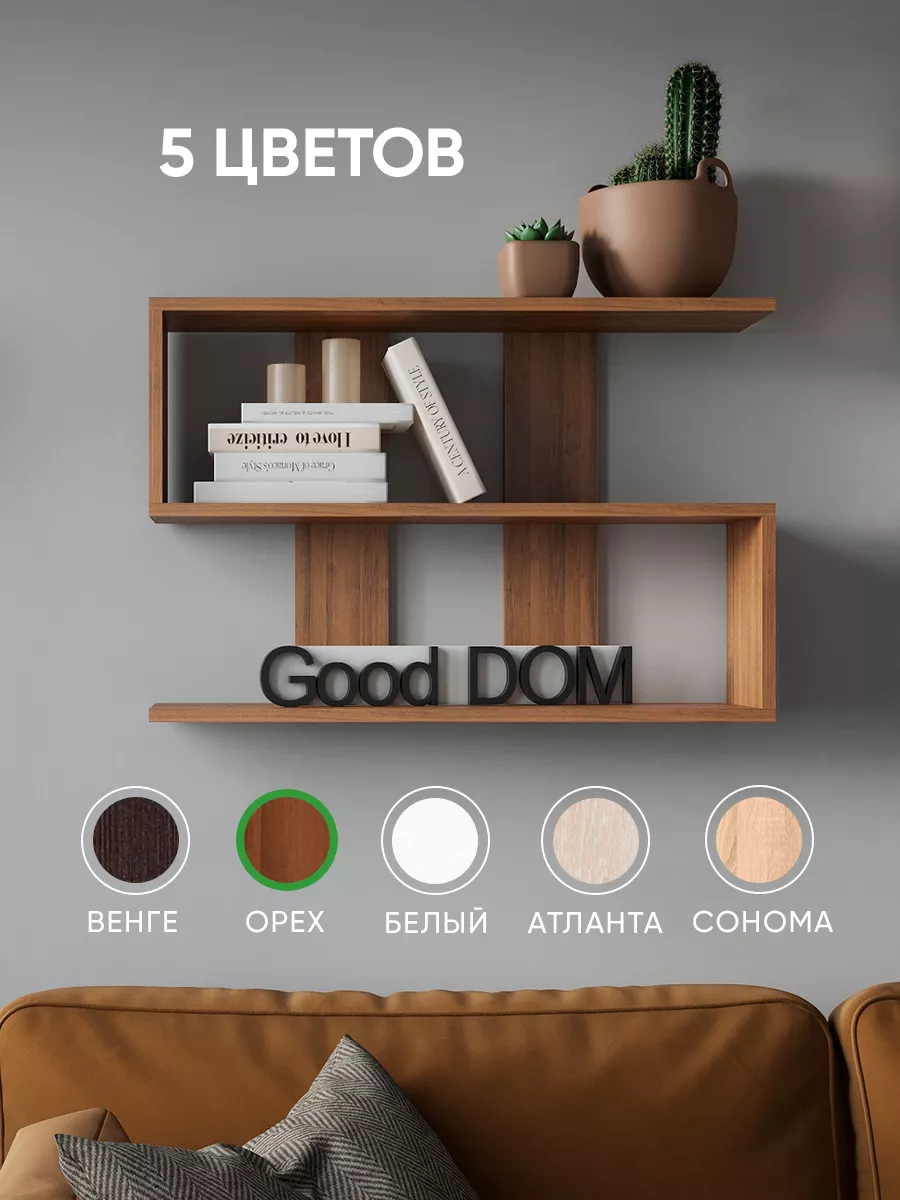 Полки настенные “Полет” избавят интерьер: гостиной, спальни, прихожей, кухни, детской от однообразия . Цвета у полки навесной позволяют подобрать именно под Ваш интерьер аксессуар. Размеры книжной полки: высота - 50,8 см, ширина - 74 см, глубина - 18 см. Легкая открытая полка обладает целым рядом преимуществ: визуально полка настенная разгружает пространство комнаты. Эффективно организует пространство комнаты за счет умелого распределения глубины и ширины у мебели. Не концентрируется внимание на самих полках, а только на их наполнении. Доступность предметов - нет надобности что-то открывать или отодвигать. Особенно это удобно в ванной и на кухне, где постоянно приходится пользоваться предметами ежедневного ухода или посудой. Стильный стеллаж подходит и для рабочего места: документов, книг, учебников. Комфортная глубина полок этажерки избавит от внезапного падения предметов, полочки достаточно широкие и вместительные.