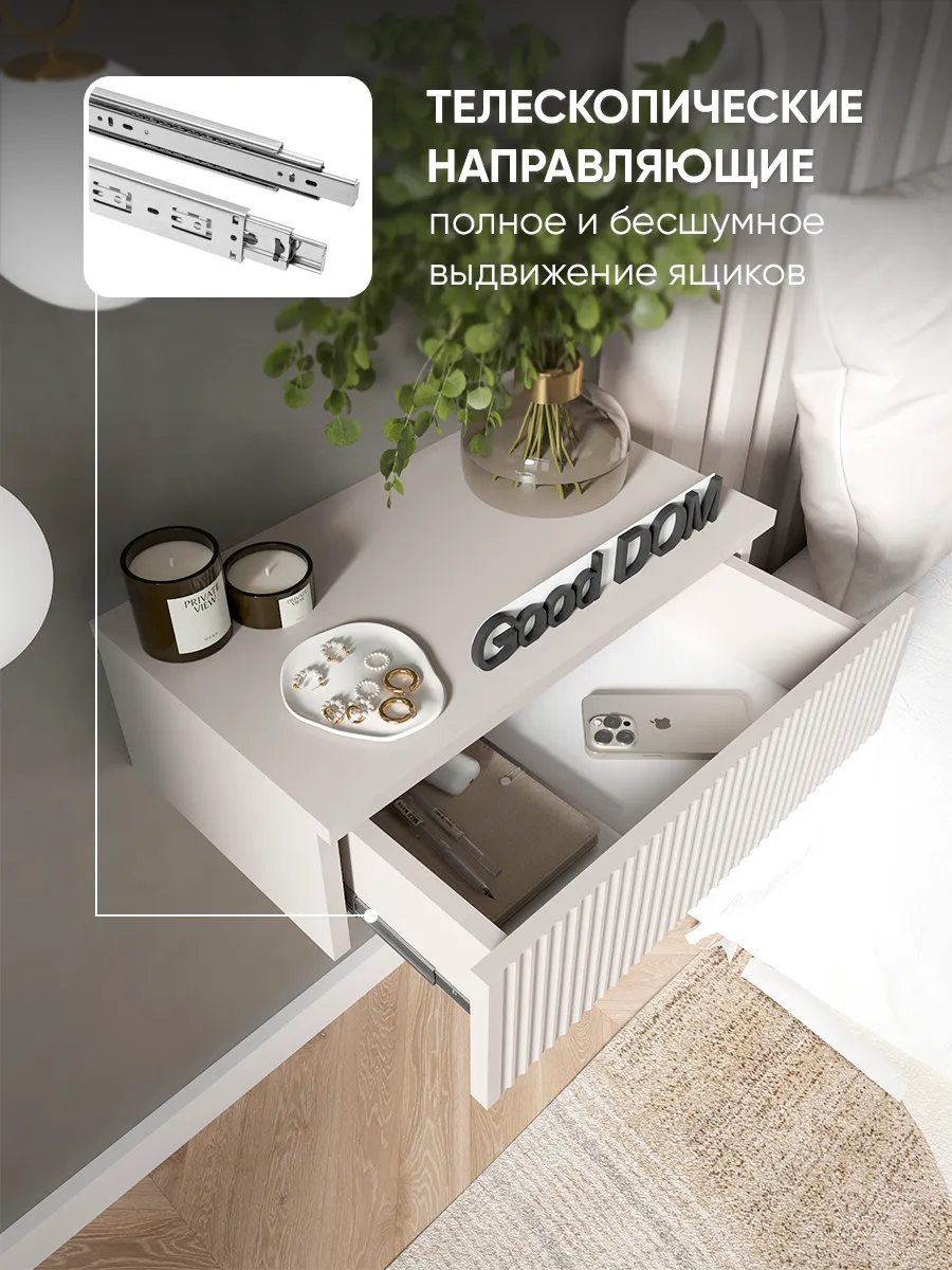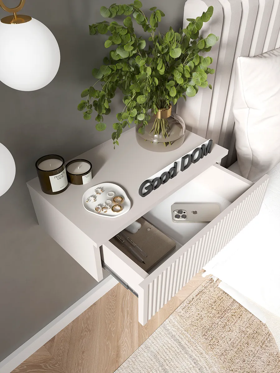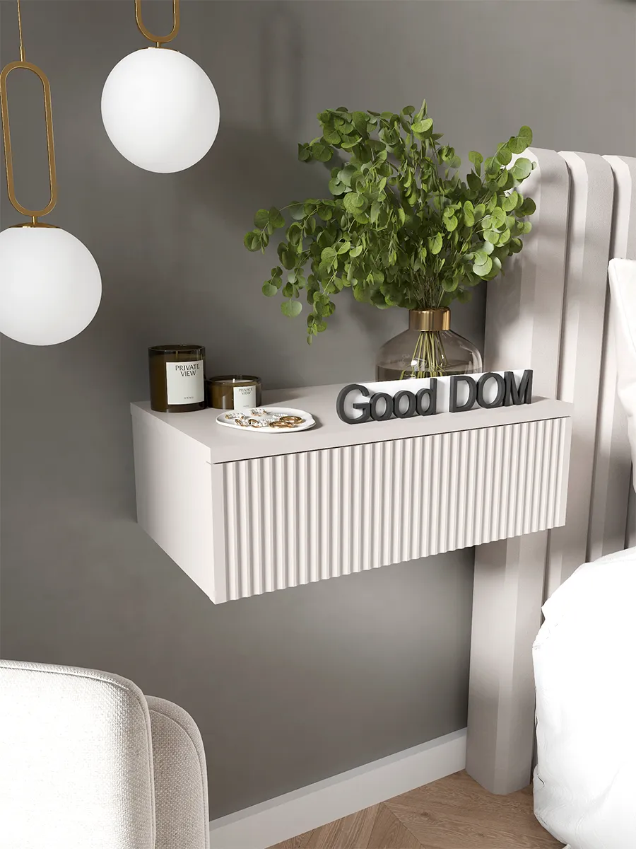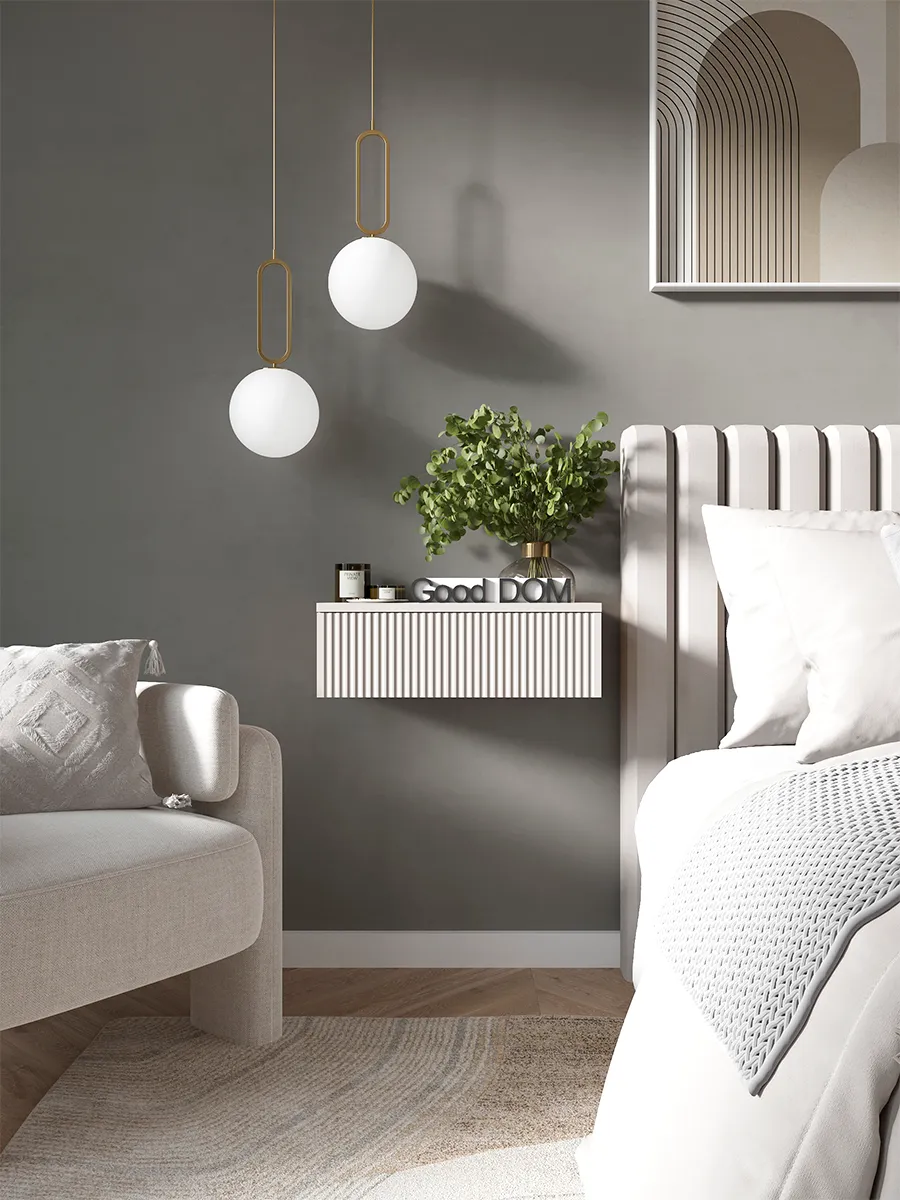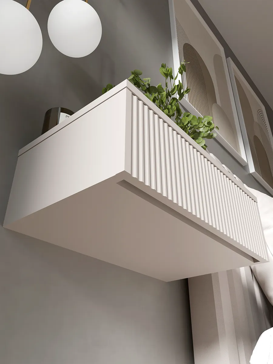 Подвесной шкафчик легко монтируется на стену и словно парит над полом, создавая ощущение легкости и упрощая уборку. Это идеальный выбор для тех, кто ценит функциональность и стиль в одном предмете интерьера.