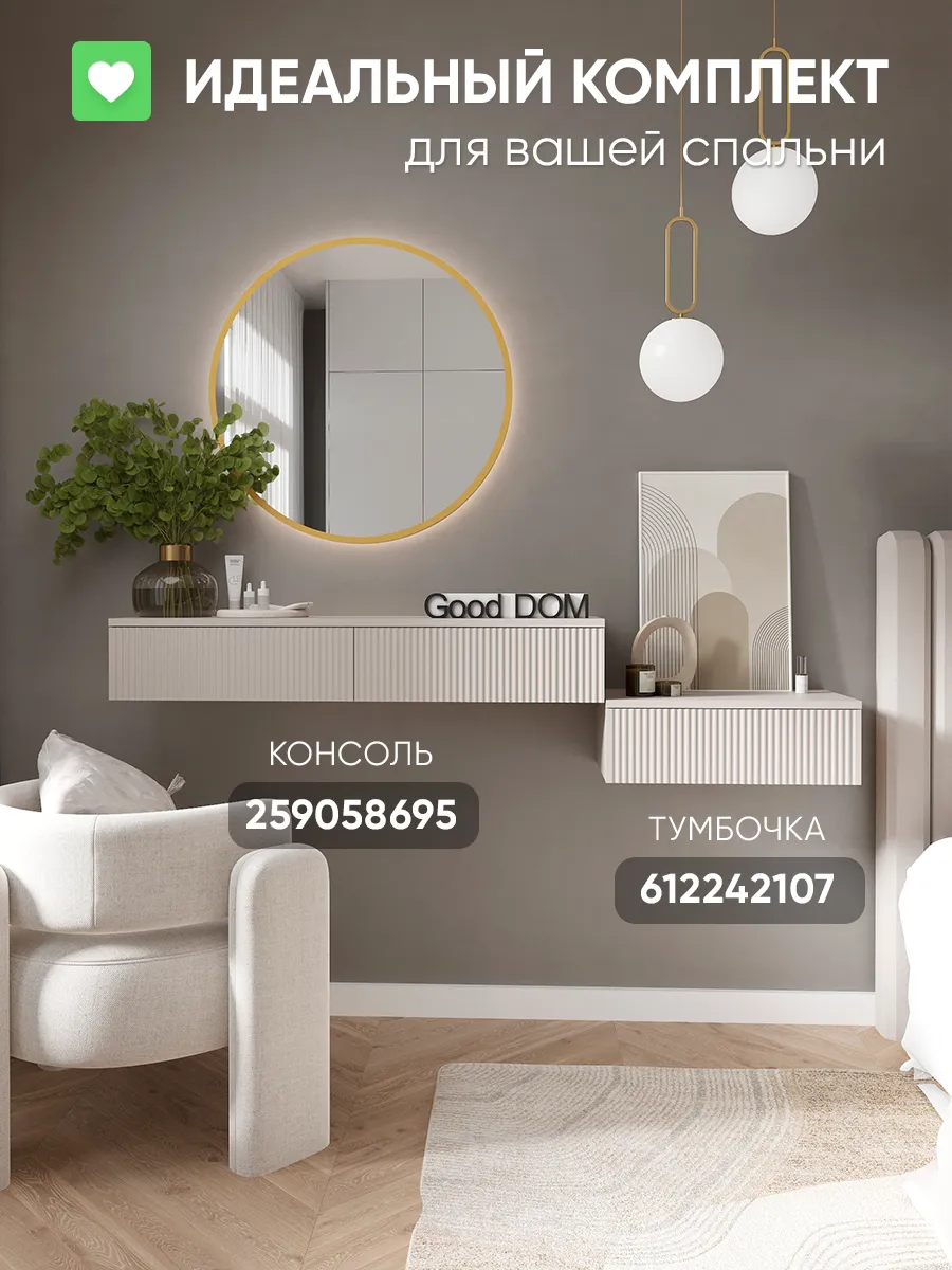 Особенно выигрышно модель смотрится в паре с классическим трельяжем. Трехстворчатое зеркало позволит видеть себя под любым углом, а подвесная тумба обеспечит идеальный порядок. Такое сочетание превращает обычную спальню в профессиональную гримерную зону.