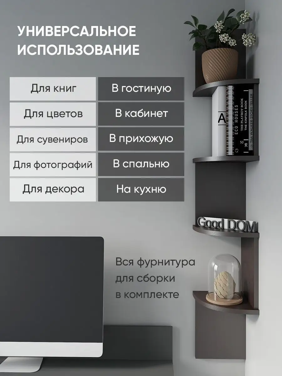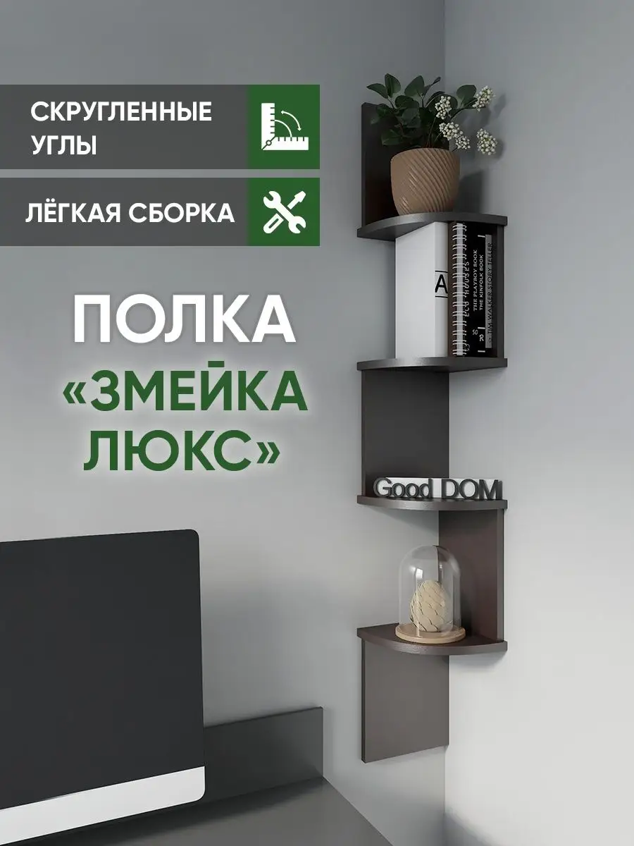 Полка настенная «Змейка Люкс» со скругленными углами – удобный и функциональный предмет мебели. Полка угловая не займёт много места, но уместит множество вещей благодаря открытым полкам. Стильная и нестандартная конструкция подвесной полки в виде змейки, внесет изюминку в любой интерьер и поможет выгодно дополнить его. Настенная угловая деревянная полка стеллаж для дома и гостиной используется как полочка для книг, цветов, растений, роутера, для декора, как полка на стену в детскую для игрушек, фигурок, декора, в спальню для косметики и парфюма и даже для уходовых средств, в туалет для хранения туалетной бумаги. Полка в угол может располагаться на кухне как полка для кухни – для хранения кухонных приборов, икон, специй, посуды и декора для кухни. Полка для книг лаконично впишется и в кабинет для хранения документов. Также полочка может использоваться в качестве садовой мебели для дачи для хранения инструмента, в мастерской. Полка в прихожую настенная для декора и хранения ключей, писем, сумок, зонтика в коридоре. Навесная декоративная полка отличный органайзер, который можно повесить над стиральной машиной или письменным столом. Так же используется для икон, полотенец или медалей. Полка в стиле лофт для квартиры, дачи, офиса, салона, детского центра – подойдёт в любую комнату. Доступные цвета: белая, дуб сонома, венге, орех, дуб атланта. Легкий материал полки ЛДСП практичен, долговечен и прост в уходе. В нашем ассортименте представлена другая мебель интересных и практичных моделей – вы можете легко посмотреть весь ассортимент, щелкнув на значок логотипа. Мы постоянно работаем над качеством нашей продукции, поэтому улучшили упаковку - наша УСИЛЕННАЯ УПАКОВКА ЗАЩИТИТ Вашу Обувницу при доставке ОТ СЛОМАННЫХ УГЛОВ и СКОЛОВ!
