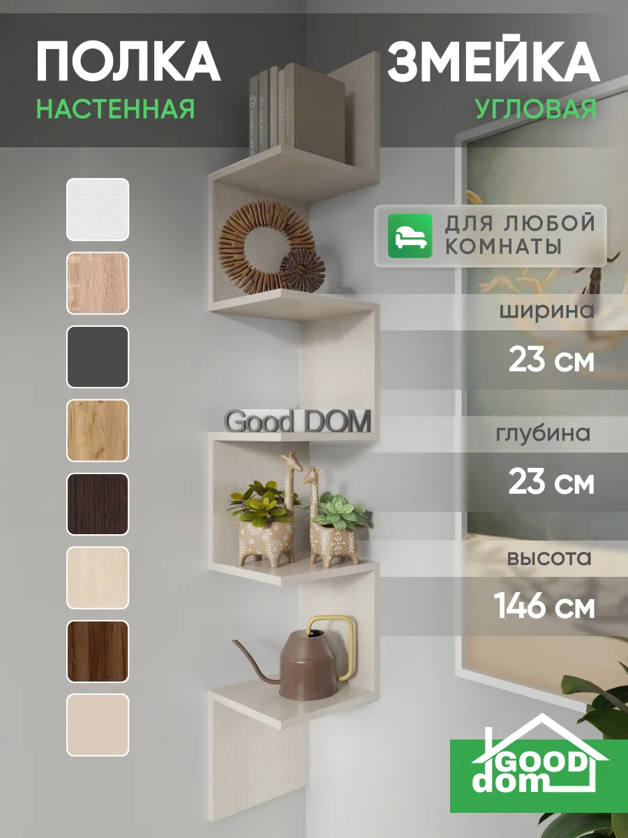Стильная и нестандартная конструкция подвесной полки в виде змейки, внесет изюминку в любой интерьер и поможет выгодно дополнить его. Открытые полочки обеспечат быстрый доступ к вещам и у вас появится отличная настенная полка. Универсальный дизайн мебельной угловой деревянной полки впишется в любое пространство: дома, квартиры, дачи, офиса, кафе, салона красоты, детского центра и т.д.