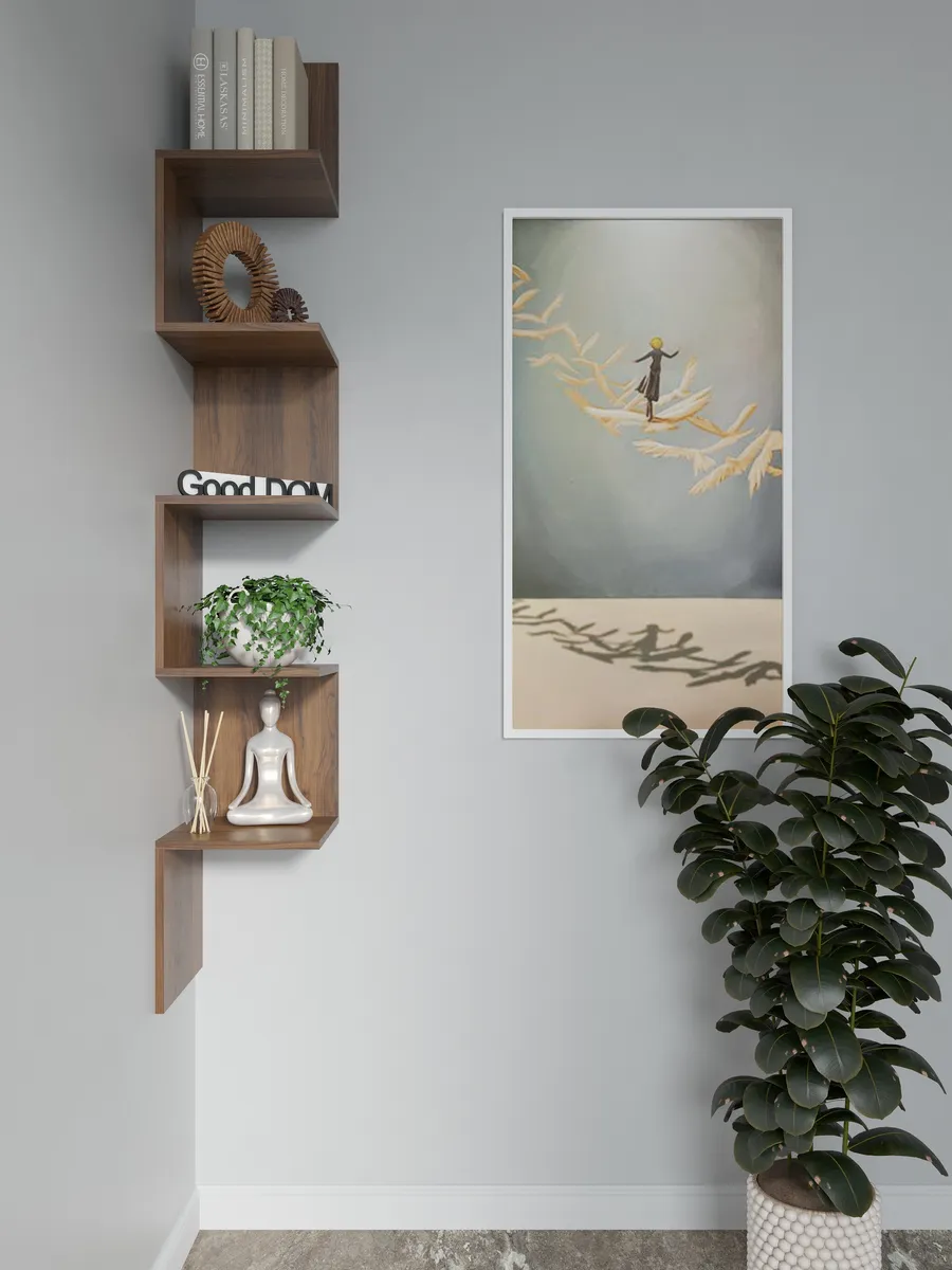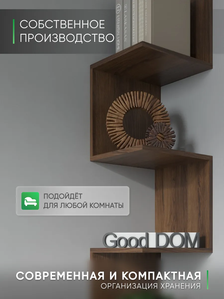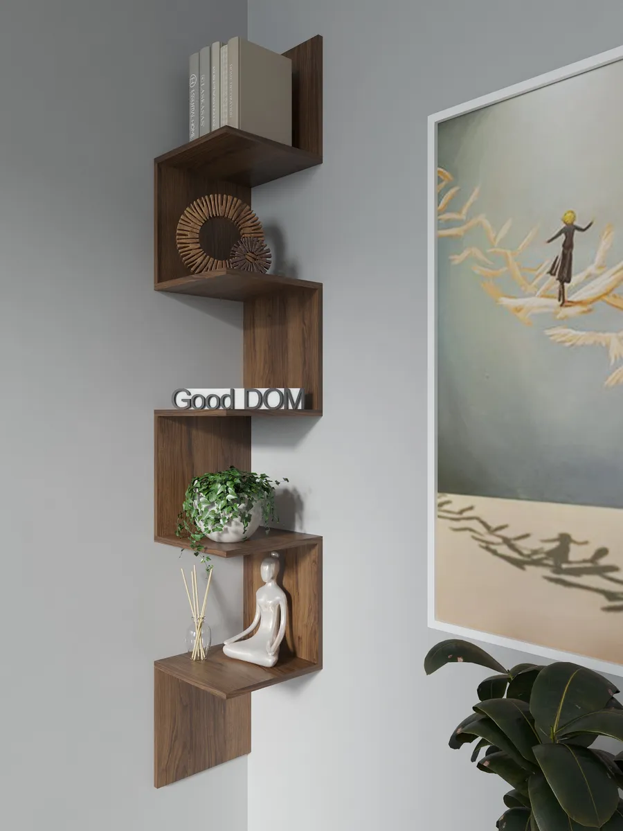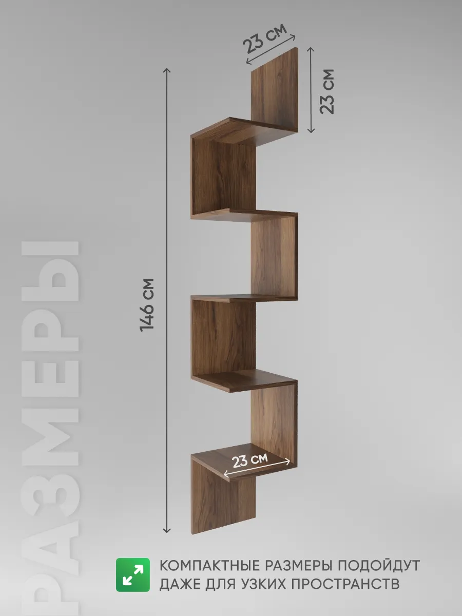 Стильная и нестандартная конструкция подвесной полки в виде змейки, внесет изюминку в любой интерьер и поможет выгодно дополнить его. Открытые полочки обеспечат быстрый доступ к вещам и у вас появится отличная настенная полка. Универсальный дизайн мебельной угловой деревянной полки впишется в любое пространство: дома, квартиры, дачи, офиса, кафе, салона красоты, детского центра и т.д.