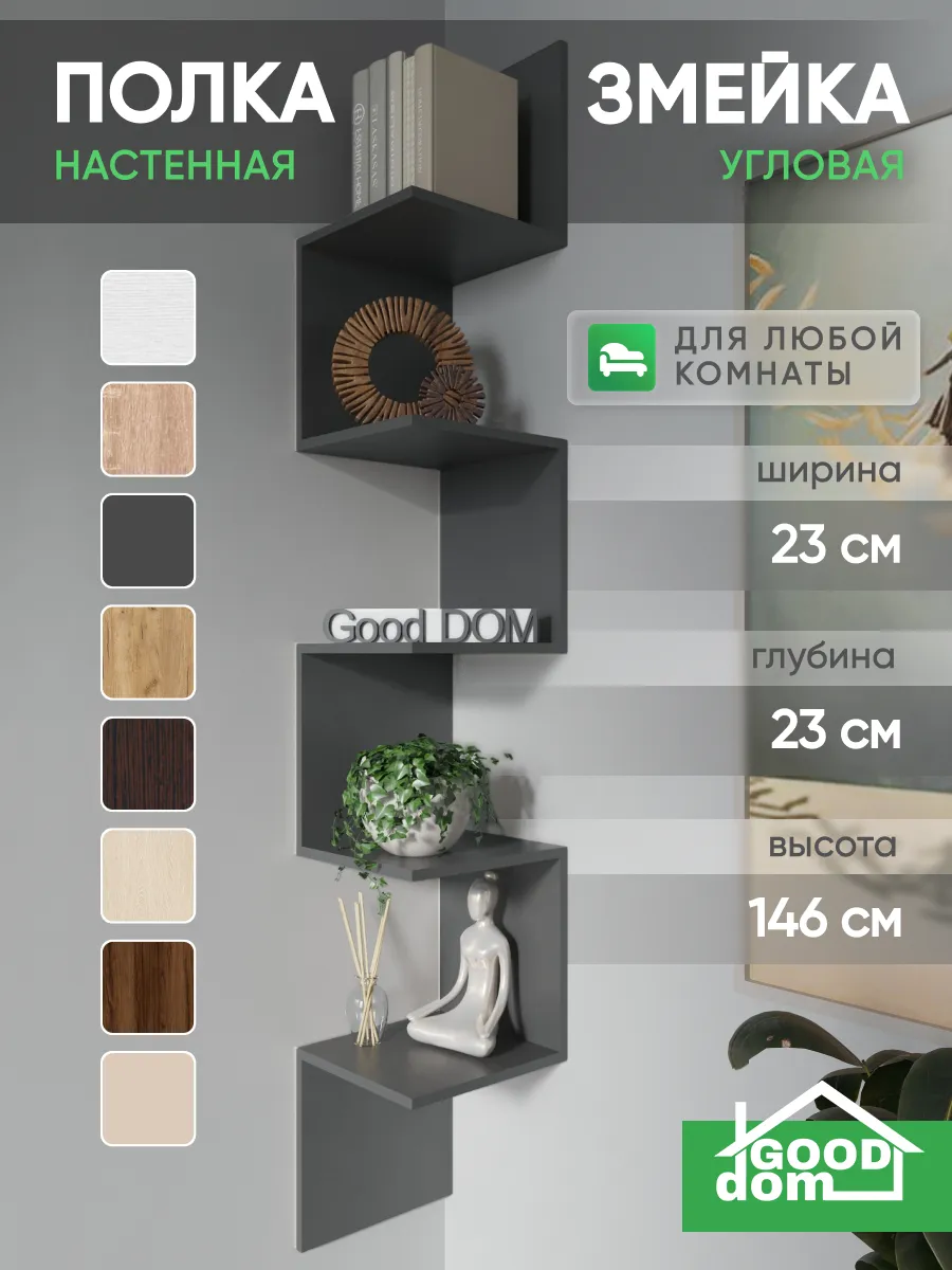Стильная и нестандартная конструкция подвесной полки в виде змейки, внесет изюминку в любой интерьер и поможет выгодно дополнить его. Открытые полочки обеспечат быстрый доступ к вещам и у вас появится отличная настенная полка. Универсальный дизайн мебельной угловой деревянной полки впишется в любое пространство: дома, квартиры, дачи, офиса, кафе, салона красоты, детского центра и т.д.
