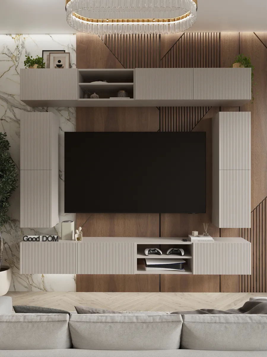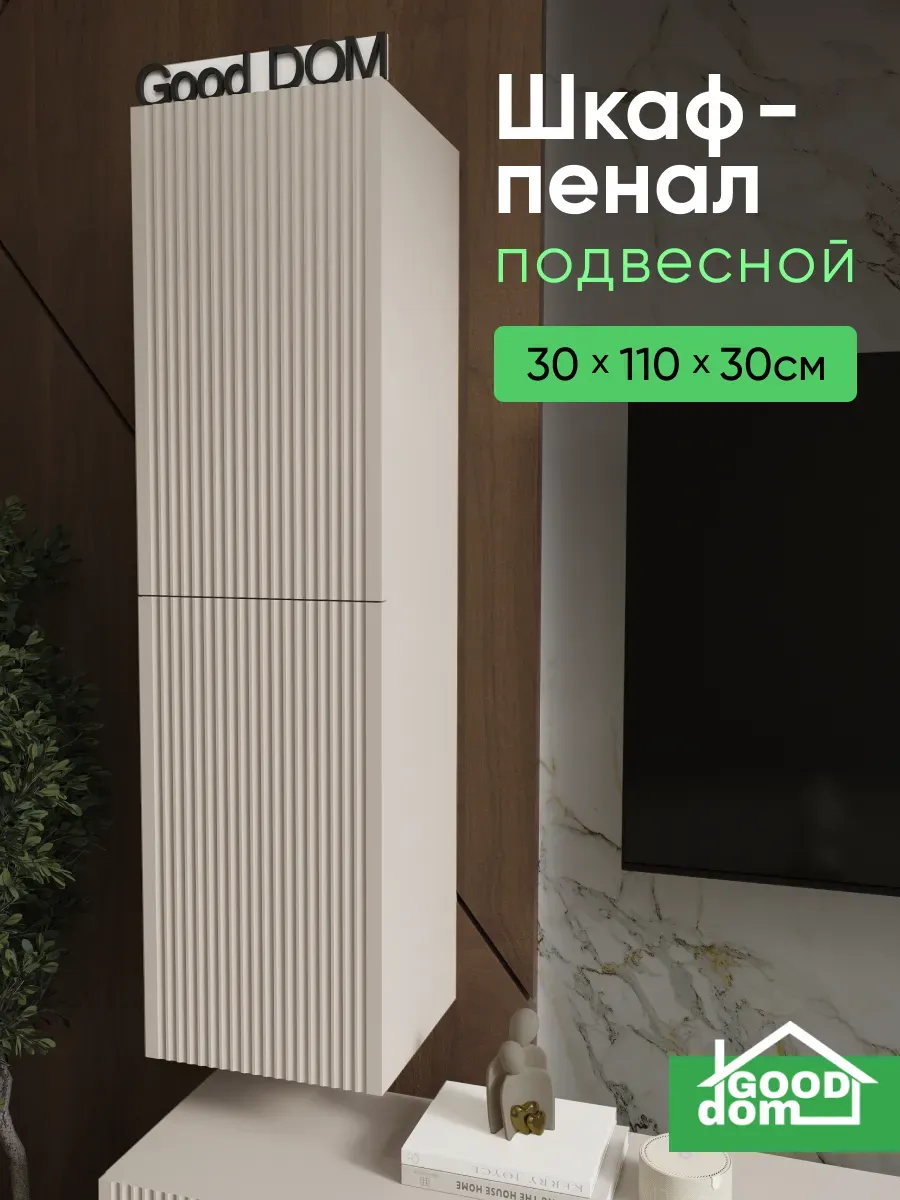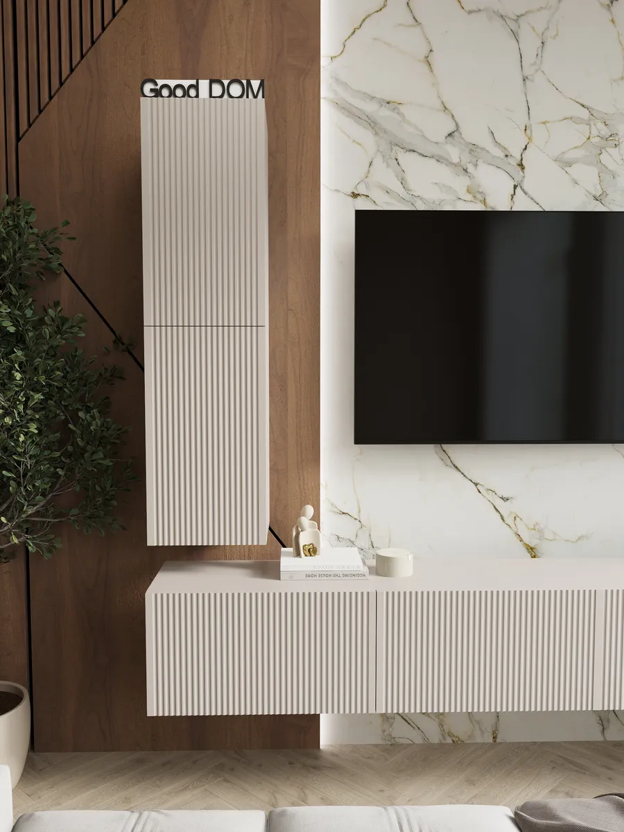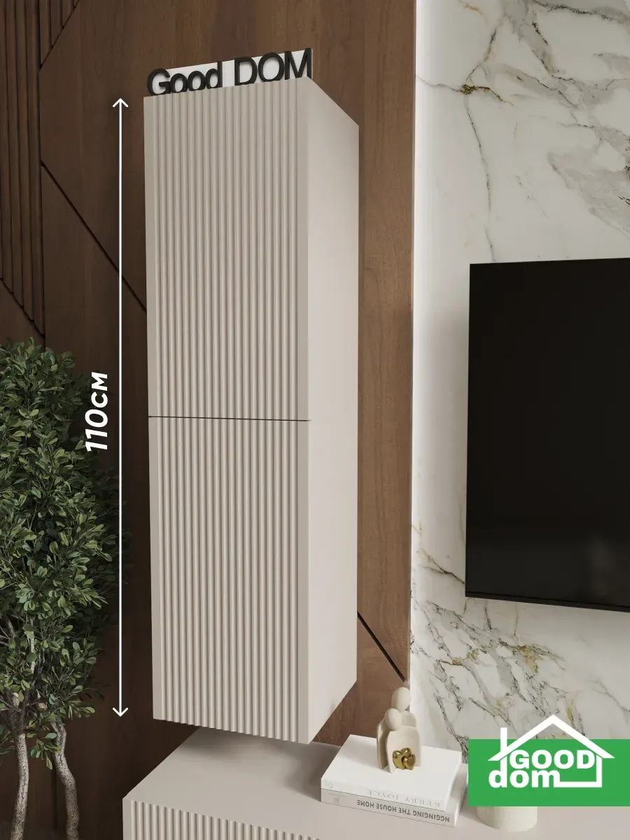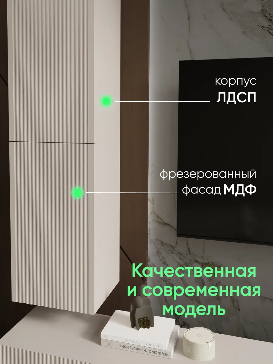 Подвесной шкаф для ТВ-зоны с фрезерованными фасадами МДФ — современное и функциональное решение для гостиной, спальни, кабинета или детской. Размер 300×297×1100 мм