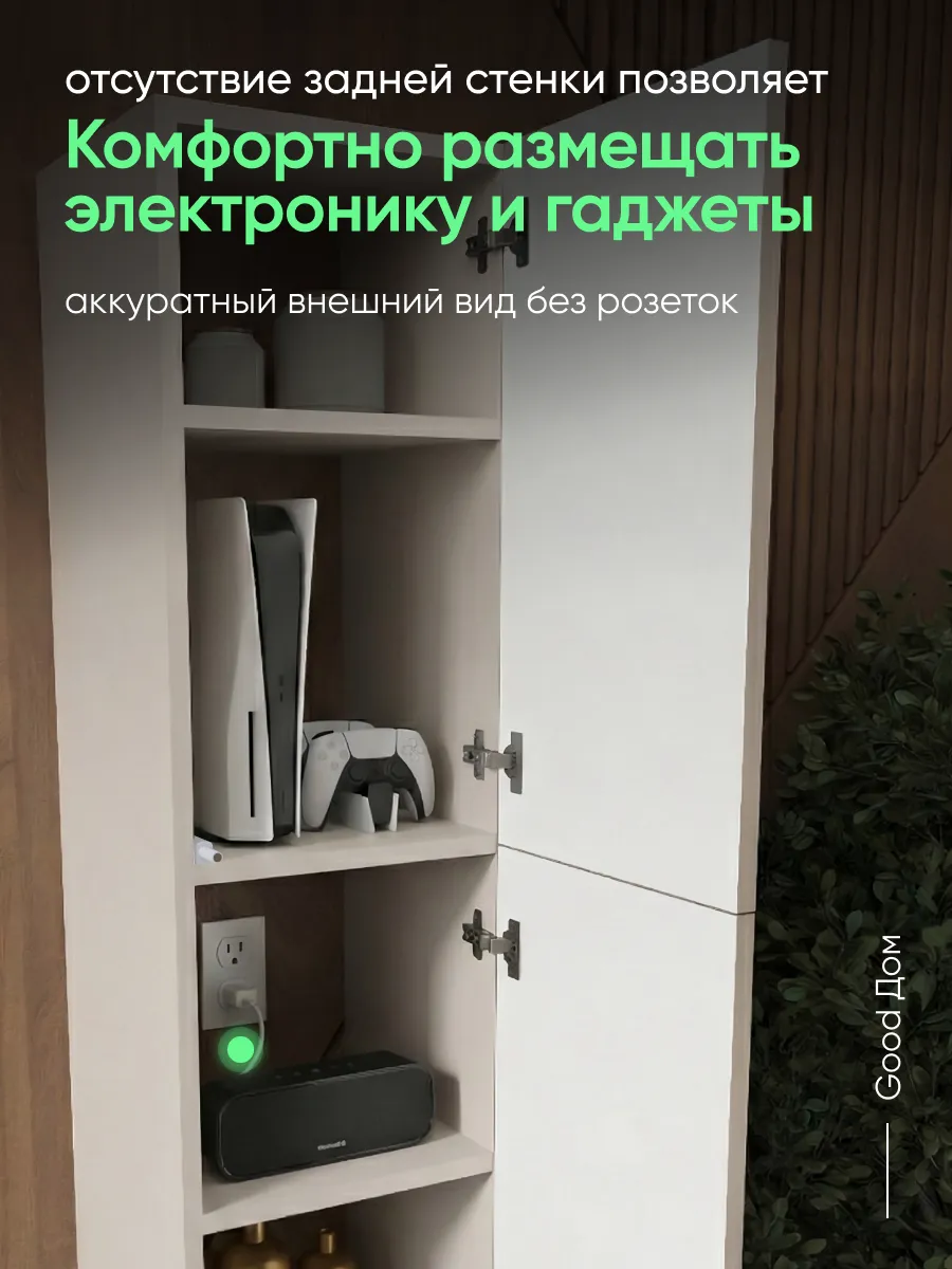 Внутреннее пространство вместительное: подходят игровые приставки (PlayStation, Xbox), ТВ-приставка, роутер, саундбар, документы и другие вещи. Подвесная конструкция визуально облегчает интерьер и упрощает уборку.