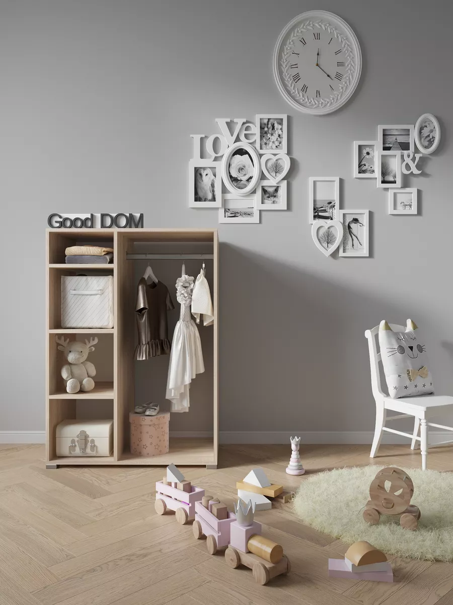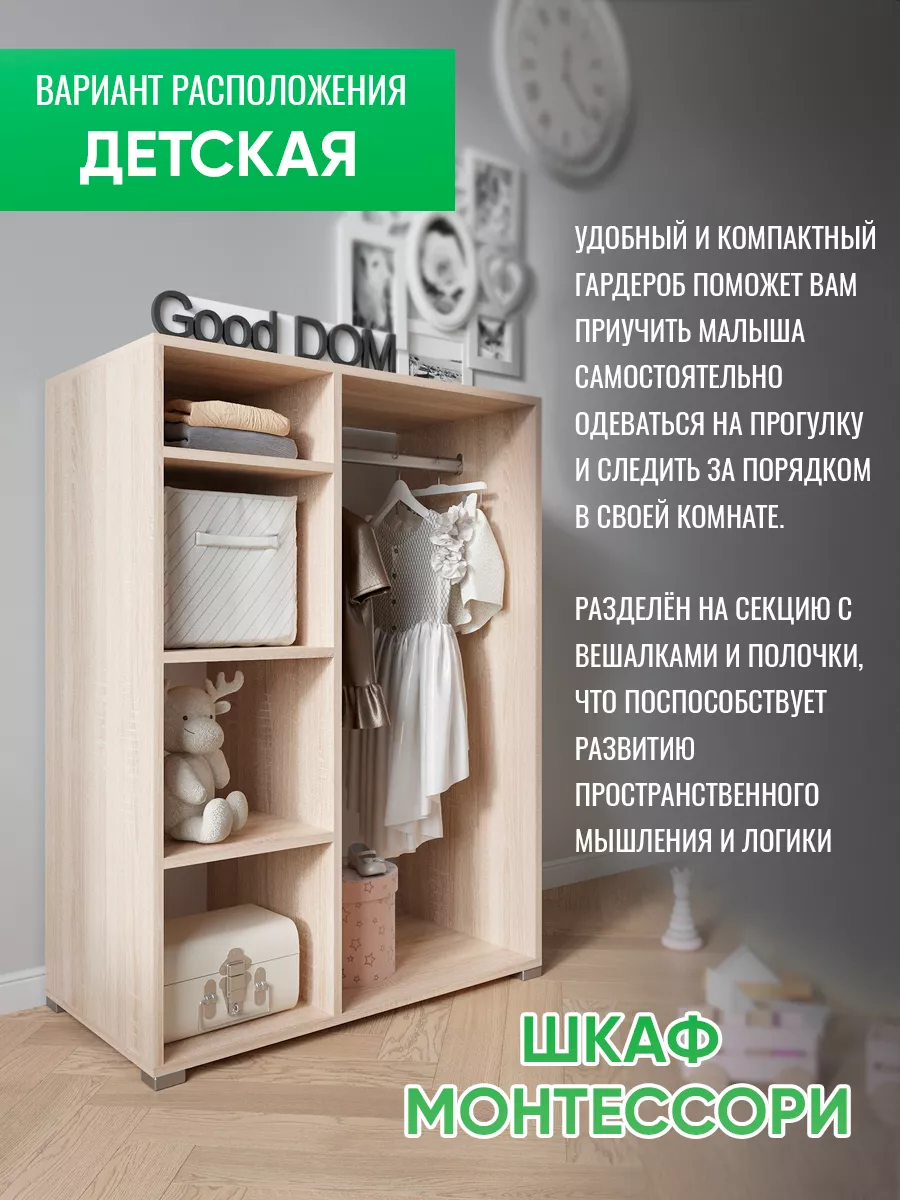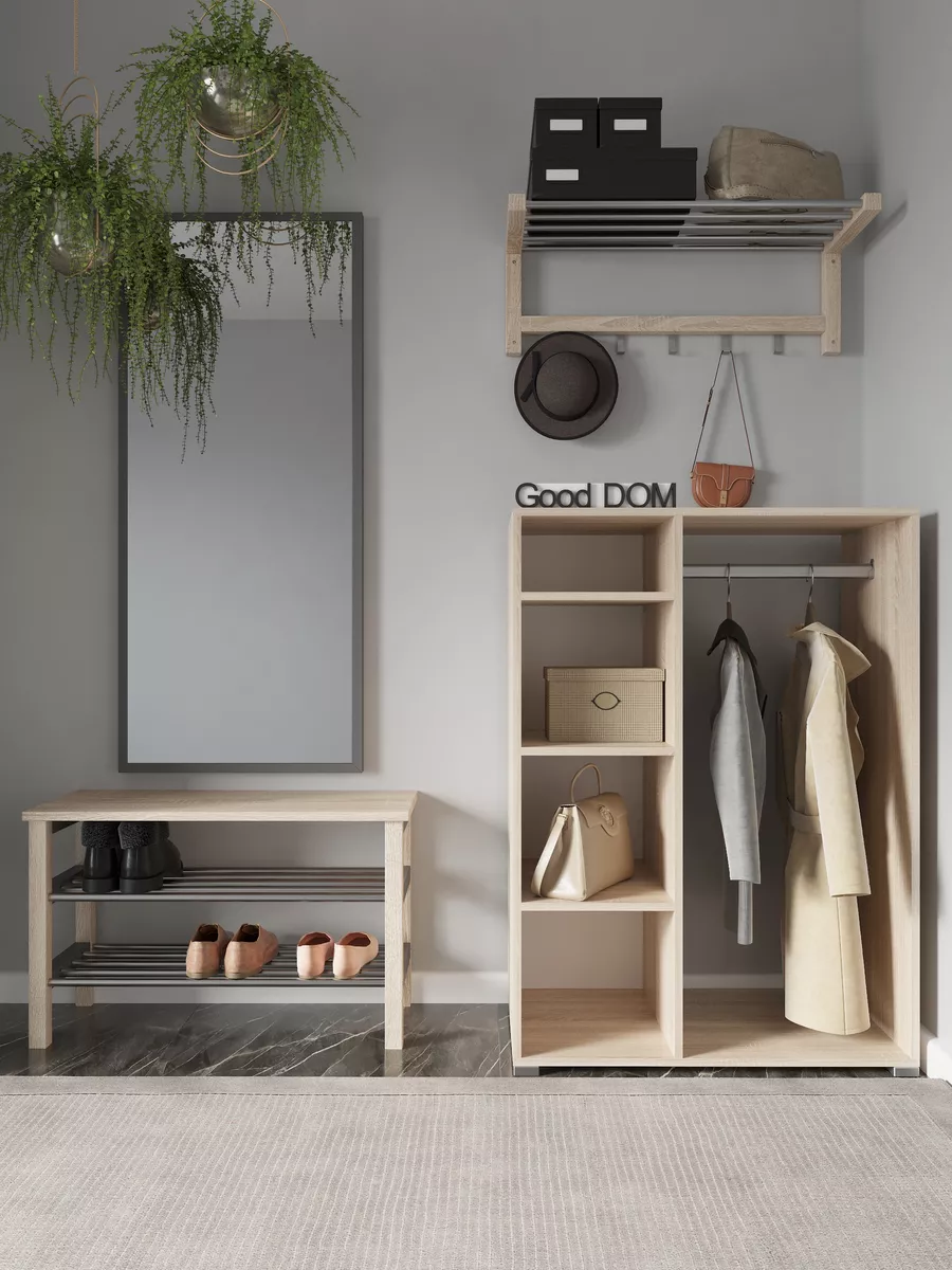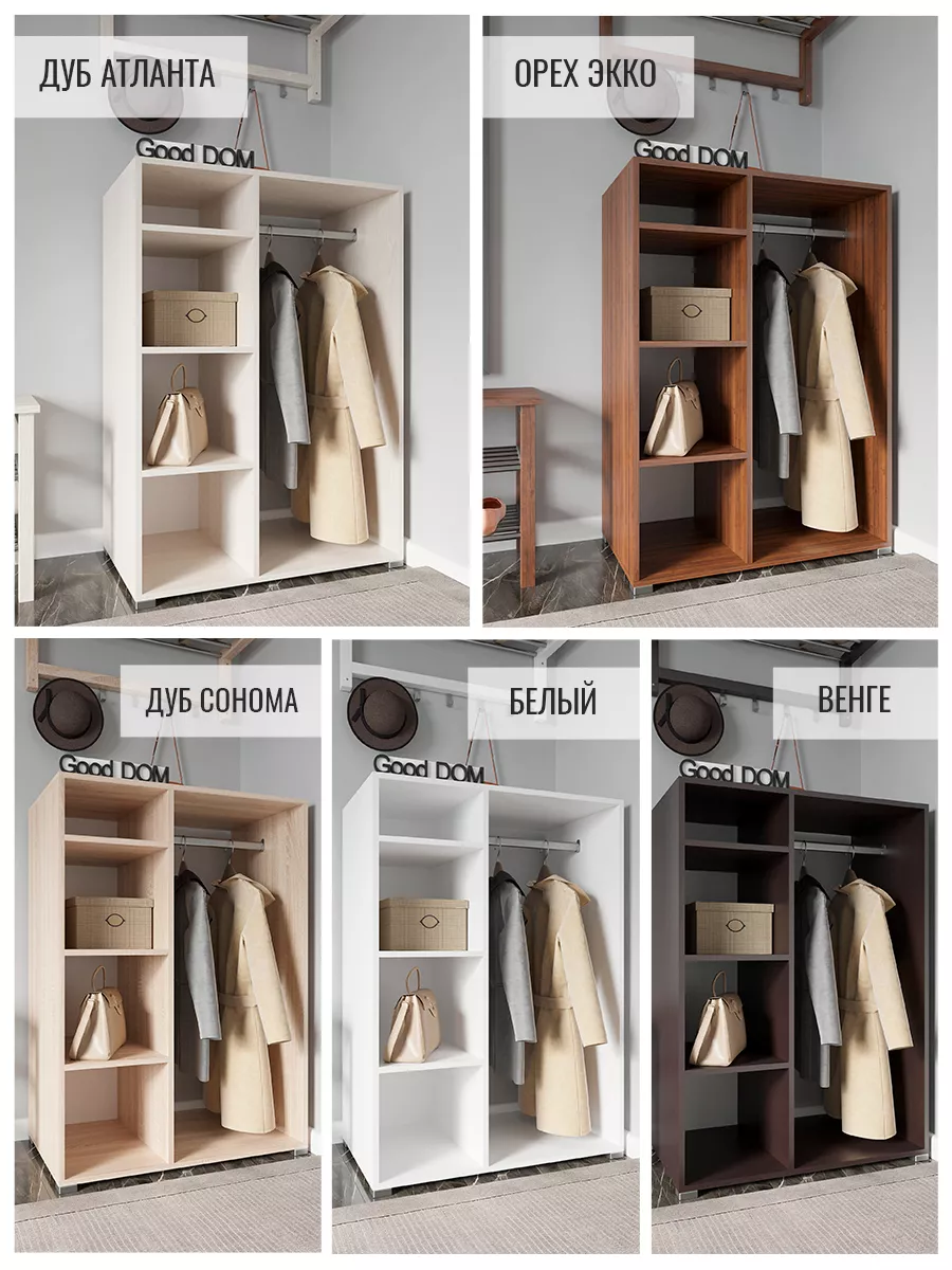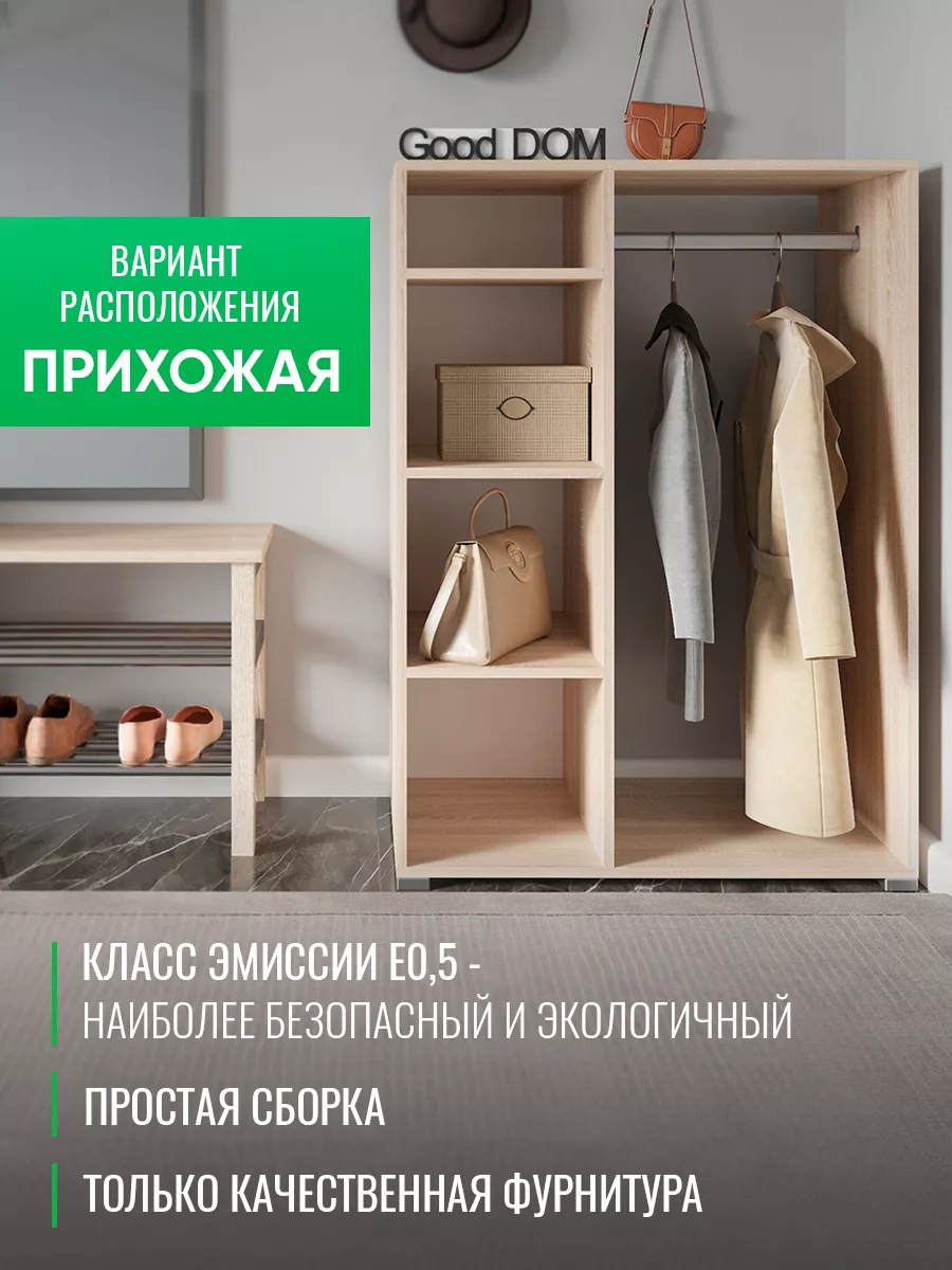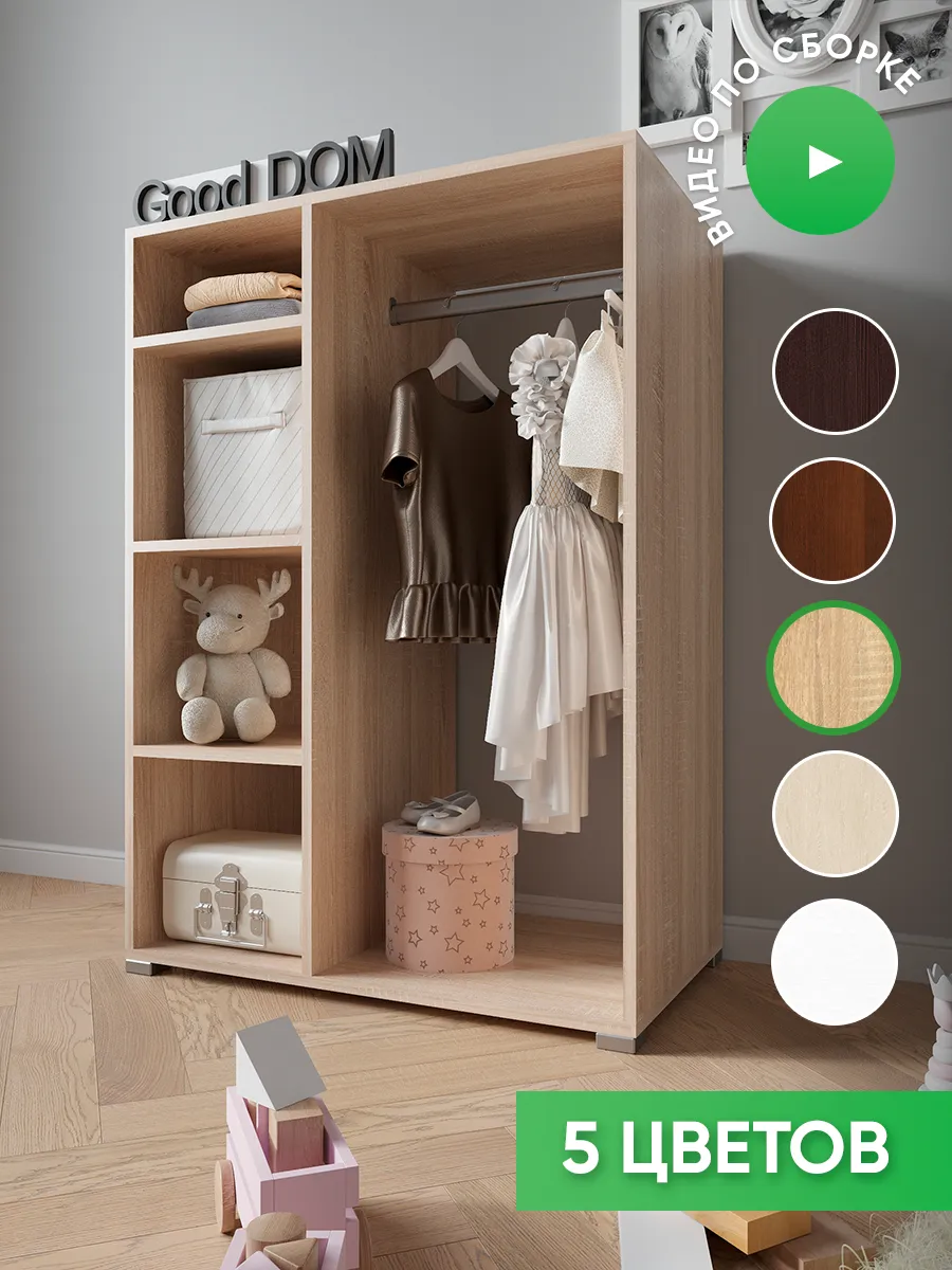 Шкаф мини со штангой и полками. Мини шкаф дуб сонома без дверей не займет много места и уместится даже в малогабаритной комнате. Несмотря на компактность, шкаф для спальни вместит в себя достаточно много вещей. Четыре вместительные полки и штанга для вешалок - помогут в грамотной организации хранения в прихожей, коридоре, кладовой или гардеробной. В отличие от шкафа пенала - штанга вешалка поможет в компактном и аккуратном хранении верхней одежды. На полках гардеробного шкафа вы сможете расположить сумки, головные уборы, зонты и аксессуары. Открытый шкаф для одежды, белья отлично подойдет как для маленькой квартиры, так и для дома, дачи и офиса. Так же шкафчик можно разместить в детской для хранения детской одежды как детский шкаф монтессори. Гардероб имеет плательное отделение с хромированной штангой. Этот маленький шкаф идеальный вариант мебели для игрушек в детскую комнату или в гостиную.