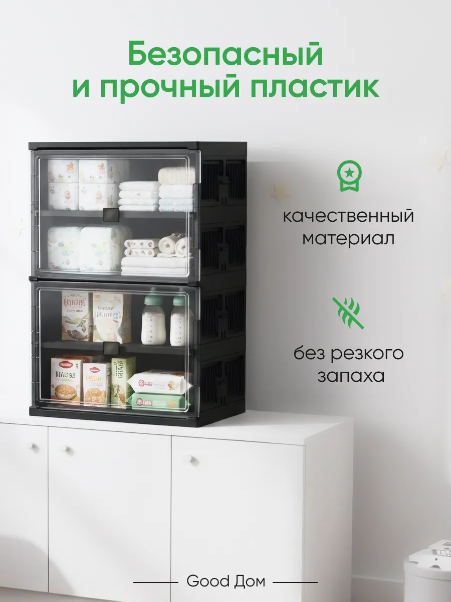 Благодаря простой сборке без инструментов этот шкаф для хранения без шурупов и болтов станет отличным выбором для съемного жилья, дачи или быстрого обустройства пространства. Его удобно разбирать и собирать при переезде. Пластиковые панели легко моются и не требуют сложного ухода.