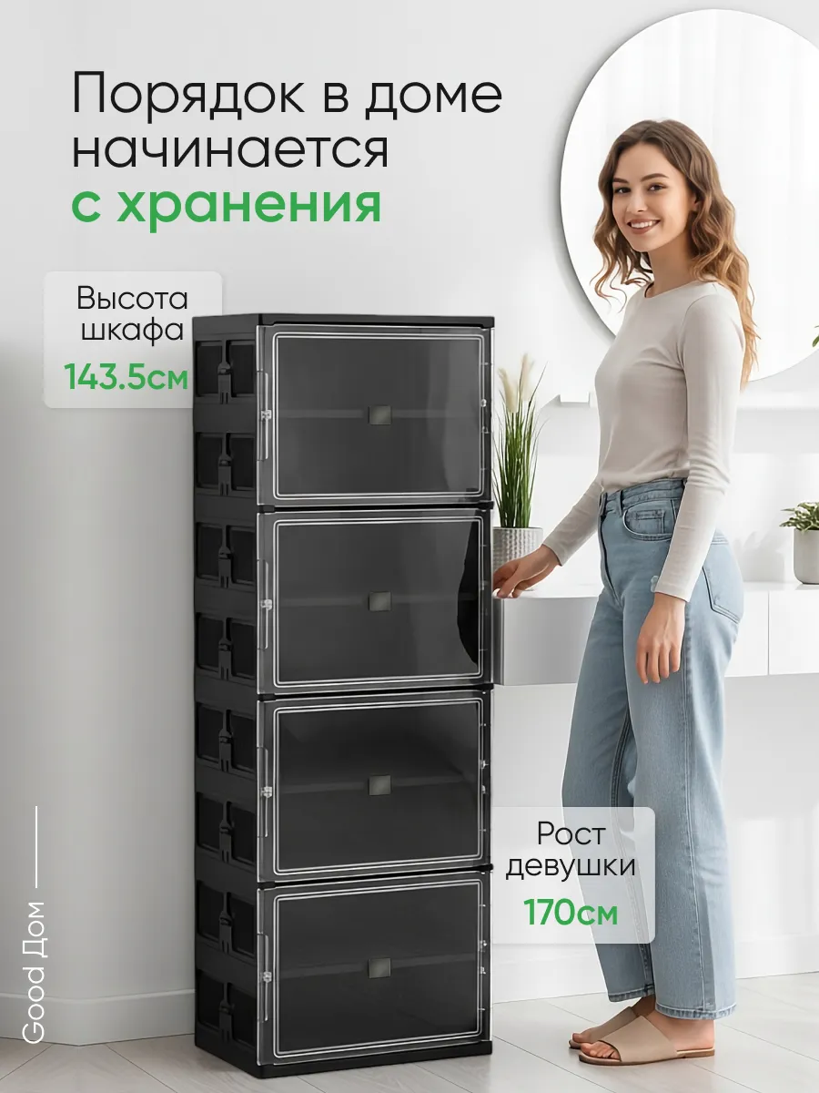 Если вы ищете универсальный шкаф для хранения, который заменит сразу несколько решений — обувницу, стеллаж, органайзер и шкаф для вещей — этот вариант станет оптимальным выбором. Он помогает навести порядок, рационально использовать пространство и хранить большое количество вещей в одном месте.