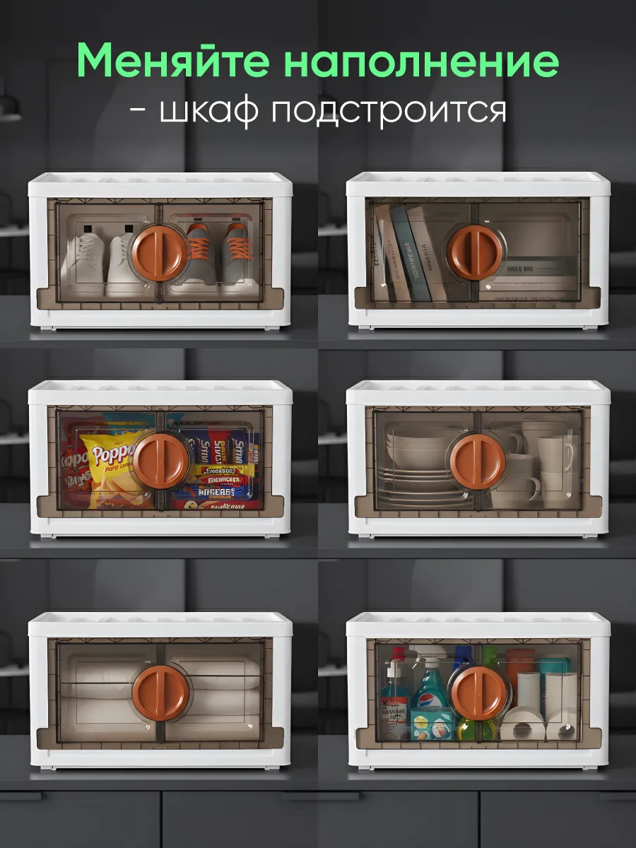 Модульная система позволяет использовать шкаф как стеллаж пластиковый, органайзер для хранения, шкаф для обуви, шкаф для игрушек, шкаф для книг, шкаф для продуктов или систему хранения для дома. Модули можно комбинировать по высоте, устанавливать рядом или друг на друга, создавая индивидуальную систему хранения под свои задачи.