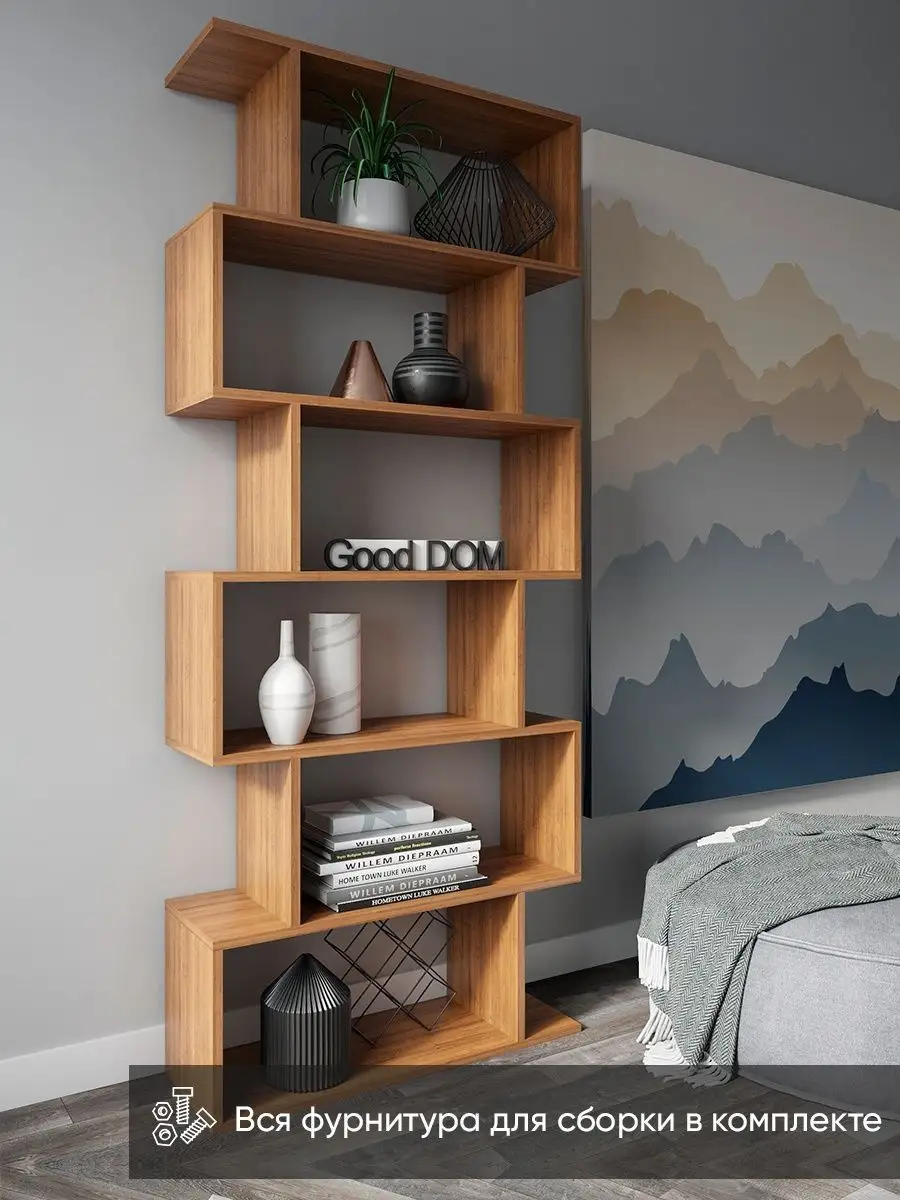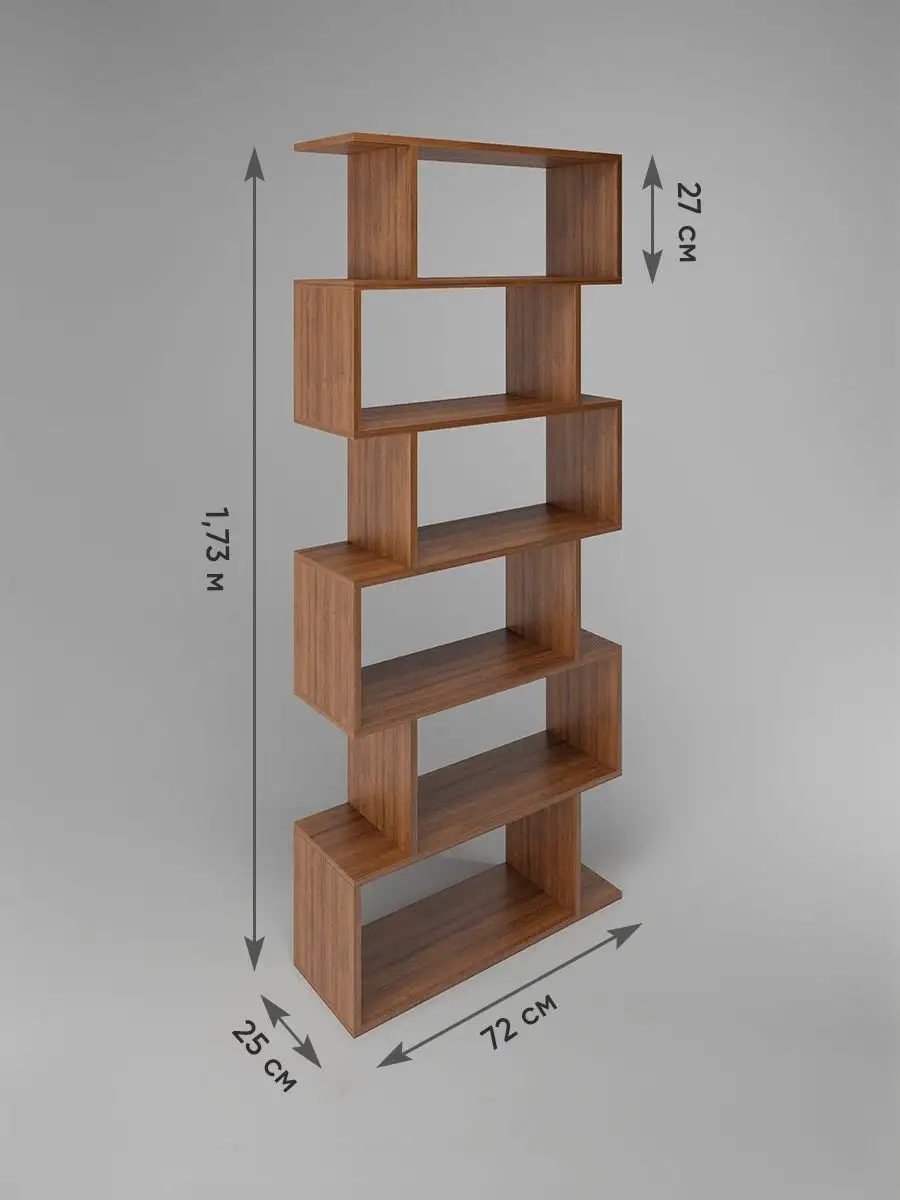 Стеллаж деревянный “Браво” – система открытых полок в одном предмете мебели. Стеллаж можно использовать для книг, цветов, в детскую комнату для игрушек, как книжная полка в детскую. Стелаж этажерка с легкостью заменит громоздкую стенку в гостиной или комод. Если вы ищите вариант перегородки для зонирования пространства – то открытый стеллаж «Браво» отлично подойдёт и для этого. Напольный стеллаж может стать книжной полкой для книг в гостиной, для декора комнаты, для хранения сувениров, декора, фотографий. Мебель для кухни как шкаф для посуды, полочка для хранения специй, кружек, банок. Стеллаж лофт напольный подойдёт и как дачная мебель для инструмента, рассады, в мастерскую. Стеллаж для книг функционален и удобен в использовании, малый вес обеспечивает отсутствие лишней нагрузки на стены и перекрытия, возможно использовать в любых помещениях, простота монтажа, возможность разместить для хранение большое количество предметов разного типа и это ещё не все плюсы нашей продукции. Стеллажи и полки отлично подойдут для размещения большого количества книг, детских игрушек, строительных инструментов. Также часто используют и для рассады: разместив саженцы вместе с емкостями для воды. Полки способны сочетать сразу несколько рабочих возможностей и одновременно украшать помещение, придать ему стильный вид. Нередко используют стеллажи как перегородку для зонирования комнаты, например, отделить зону столовой от кухни. Размер стеллажа: 173*72*25 см. Он невероятно просто собирается: инструкция по сборке входит в комплектацию, а также необходимый комплект фурнитуры. Толщина полок: 1,6 см.