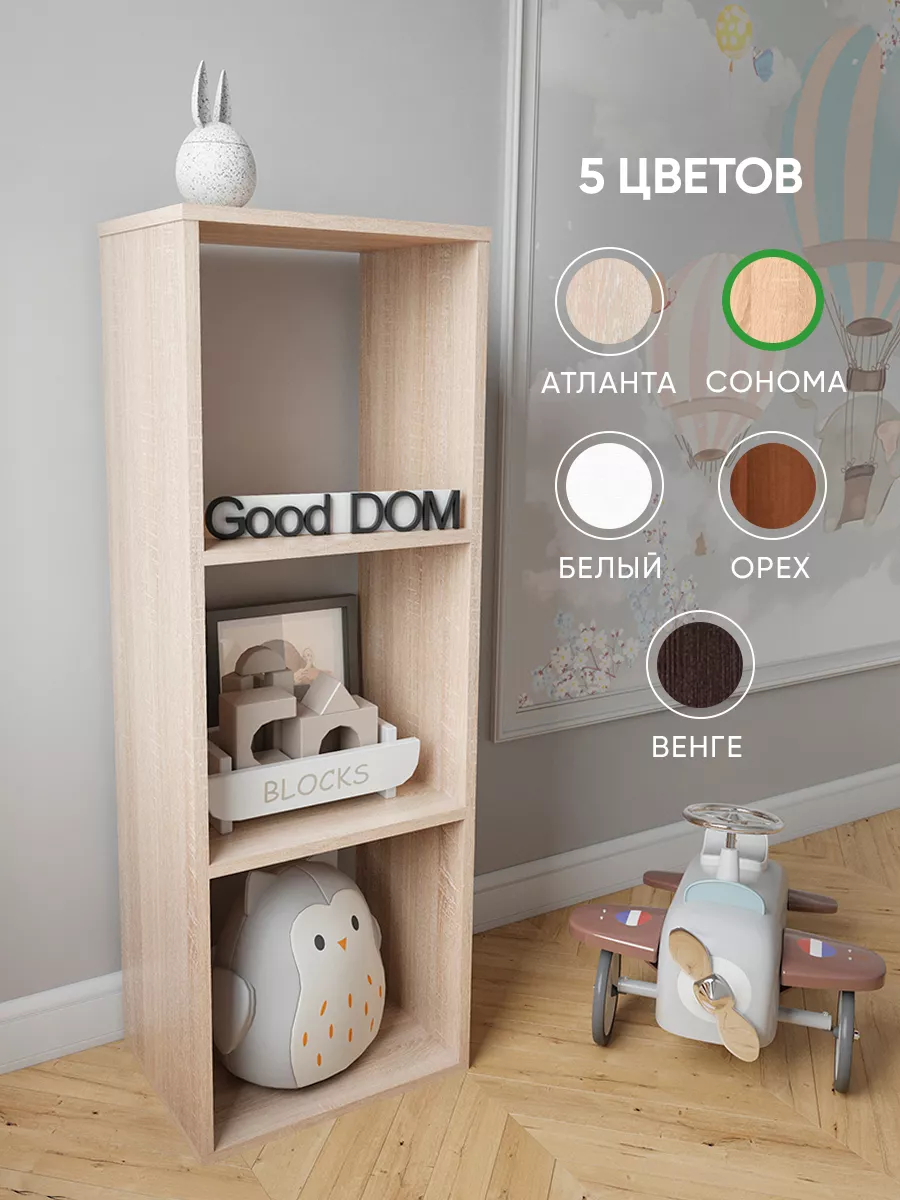 Стеллаж "Лайт" - компактный, но вместительный органайзер для организации хранения ваших вещей. Шкаф этажерка поможет легко поддерживать порядок, расположить в вашем интерьере предметы декора. Напольная полка с открытой системой хранения удобна тем, что всё, что нужно всегда будет под рукой.Стелаж может стать мебелью в любую комнату: гостиную, спальню, в детскую, в коридор, прихожую, гардеробную, туалет, кухню, на лоджию и балкон, даже для гаража. Кроме этого стеллаж подойдёт как для квартиры, так и для дома, дачи, сада и даже офиса. Офисная полка из ЛДСП намного удобнее и надежнее пластиковых аналогов для документов и бумаг. Стеллаж может дополнить кухонный гарнитур и обеспечить вас дополнительным местом для хранения посуды, как углок для икон. В прихожей для храния ключей, зонтов, зеркала. В гостиной разместить цветы, книги, фотографии, косметику, учебники. Коробку стеллажа можно расположить как вертикально так и горизонтально - трансформер. Стилаж можно использовать для хранения одежды и обуви, как книжный шкаф в стиле лофт, как ящик для рассады. Комплект из двух таких стеллажей может стать перегородкой для зонирования пространства. Белый вариант полочки идеально впишется в детскую комнату для хранения игрушек, как домик для машинок, организовать уголок для книг. Подойдёт и для мальчика и для девочки. Шкаф не высокий - удобно доставать предметы для детей и даже малышей. Навесы для крепления полки на стену (скрытое крепление). Вы можете легко сделать из стелажа настенную полку, а разместив стеллаж в углу получить угловой стеллаж или полку. Вся фурнитура для сборки в комплекте. Цвета: белый, дуб сонома, дуб атланта, орех, венге.