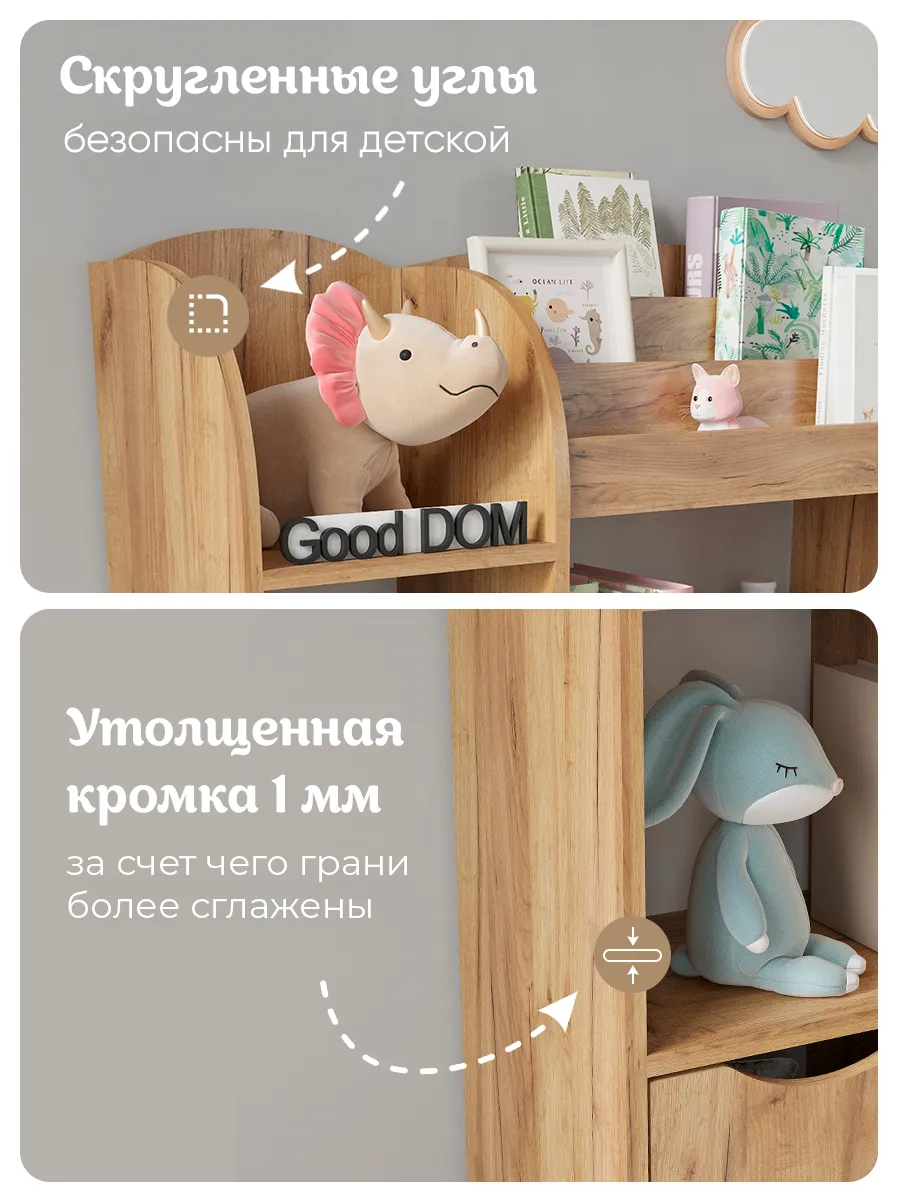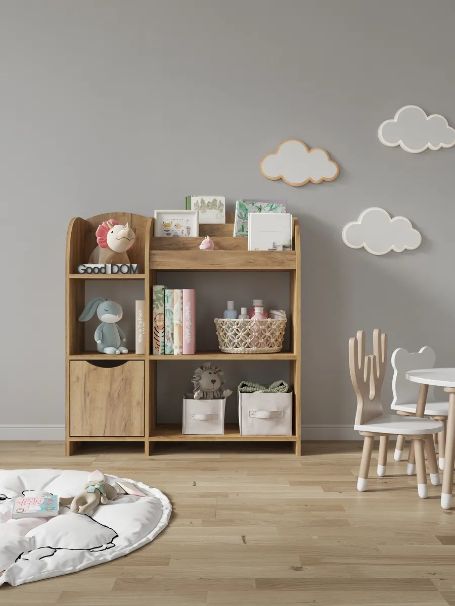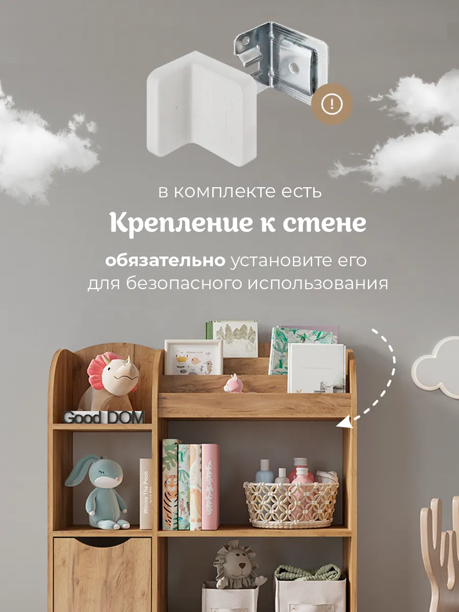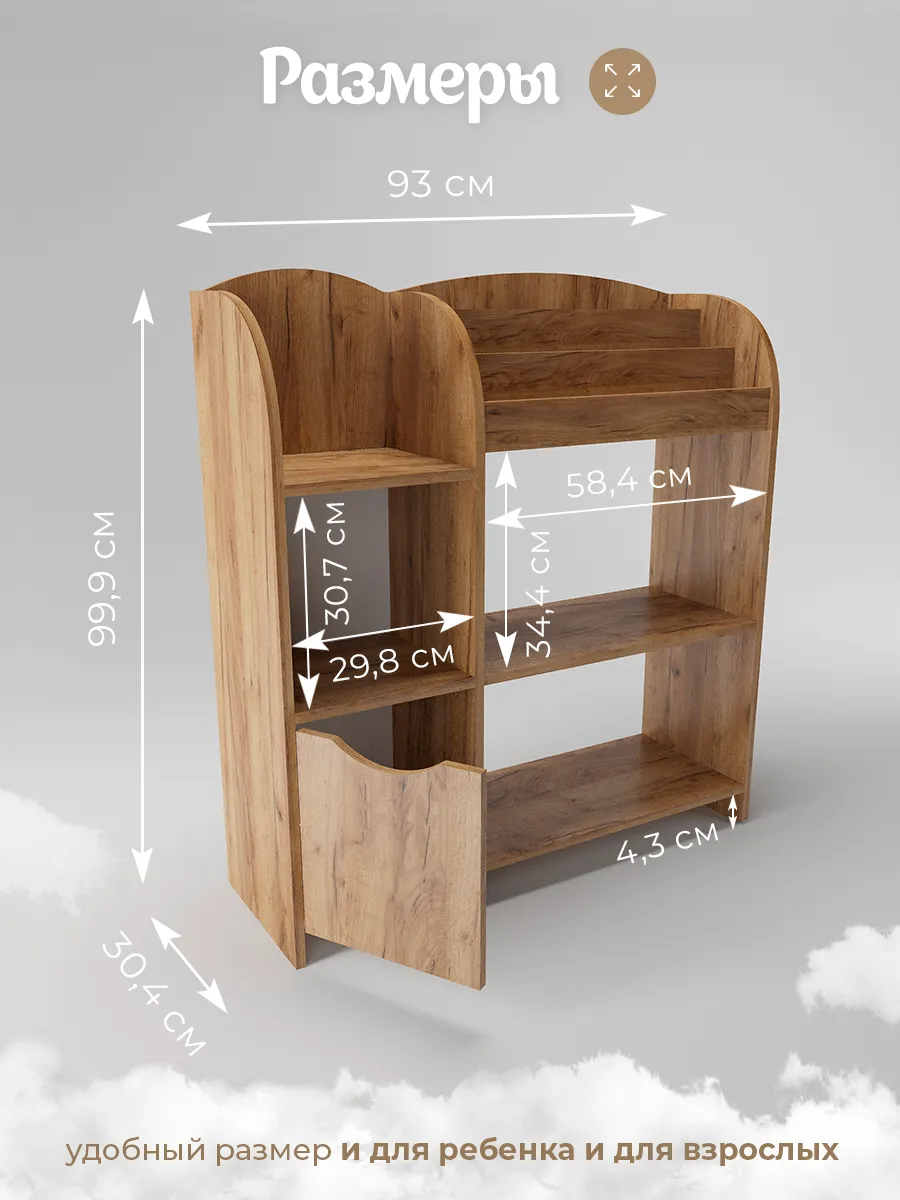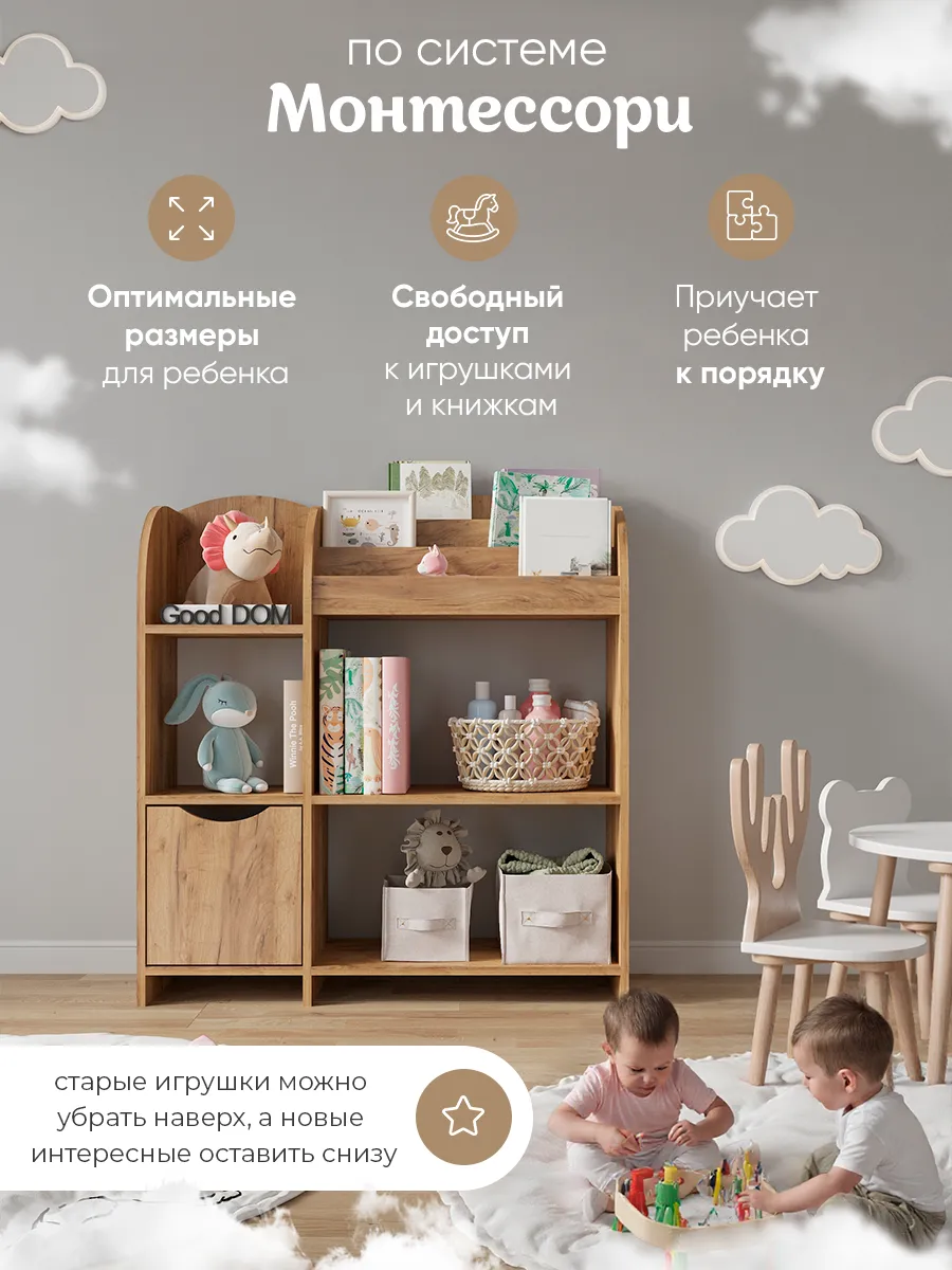Стеллаж в детскую комнату для игрушек. В детской комнате он найдет свое место как стеллаж детский для игрушек или стеллаж для книг детский. Шкаф в детскую станет идеальным местом для хранения игрушек, книг и других вещей вашего ребёнка. Стеллаж подойдет для мальчиков и для девочек. Шкаф в детскую. Детский стеллаж - стильное решение организации хранения в комнате ребенка. Стеллаж для детской выполнен из безопасных материалов. Острые углы, о которые может пораниться ребенок, отсутствуют. Распределение предметов по зонам приучает детей к порядку, ответственности. Ребенок, пользующийся мебелью по системе Монтесорри, вырастает организованным и уверенным в собственных действиях. Такая мебель развивает в ребенке самостоятельность, ведь он складывает свои вещи на определённые места. Верхняя часть стеллажа оптимально подходит для хранения книг по системе Монтесорри. Стеллаж с дверцей так же отличное интерьерное решение для любой комнаты: гостиной, спальни, прихожей, коридора, детской, офиса. Открытые полки и закрытое отделение (ящик) помогут разместить все необходимые вам вещи, а универсальный дизайн поможет стеллажу вписаться в любой интерьер. Шкаф напольный универсален. Стеллаж в детскую с полками, отделениями, секциями удобен для размещения вещей. Скругленные углы и петли с доводчиками делают его безопасным в использовании даже детьми. Стеллаж книжный вместит книги, журналы, учебники школьника. Так же стеллаж может использоваться как стеллаж для кухни. Стеллаж на кухню поможет организовать хранение кухонной утвари, приправ, баночек и даже декора. Универсальный шкаф впишется в любой интерьер от лофт до классики. Белый стеллаж – это современный и многофункциональный атрибут для детской, гостиной или офисного помещения. Мы дорожим качеством и внешним видом нашей продукции, поэтому вся наша продукция проверяется перед отправкой отделом контроля и упаковывается в коробки с дополнительной твердой защитой.