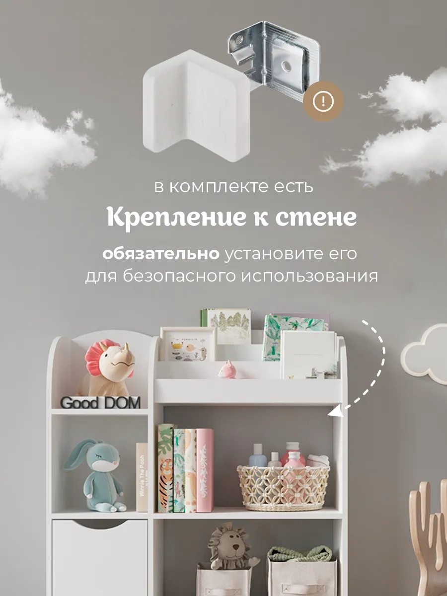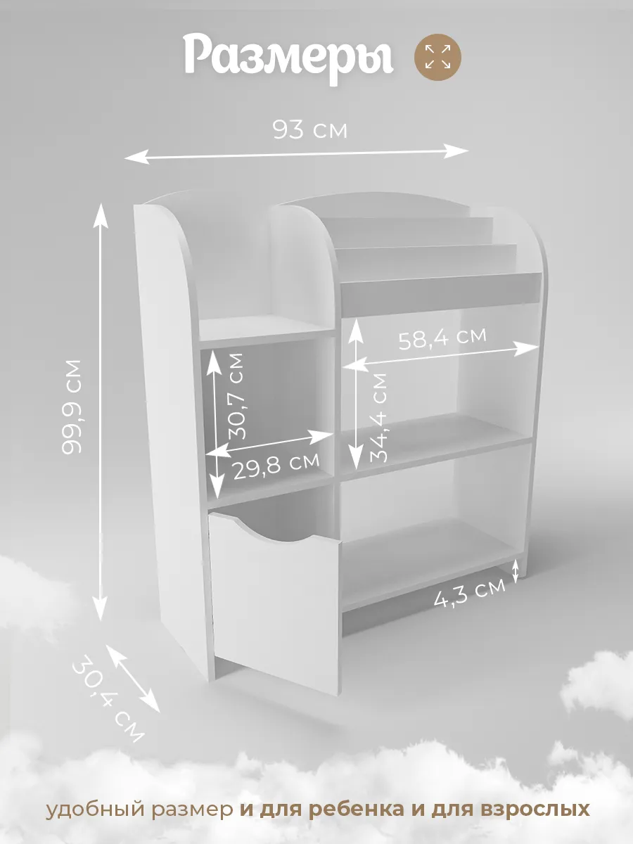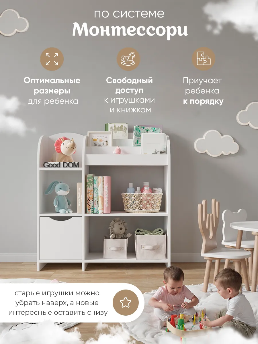 Стеллаж в детскую комнату для игрушек. В детской комнате он найдет свое место как стеллаж детский для игрушек или стеллаж для книг детский. Шкаф в детскую станет идеальным местом для хранения игрушек, книг и других вещей вашего ребёнка. Стеллаж подойдет для мальчиков и для девочек. Шкаф в детскую. Детский стеллаж - стильное решение организации хранения в комнате ребенка. Стеллаж для детской выполнен из безопасных материалов. Острые углы, о которые может пораниться ребенок, отсутствуют. Распределение предметов по зонам приучает детей к порядку, ответственности. Ребенок, пользующийся мебелью по системе Монтесорри, вырастает организованным и уверенным в собственных действиях. Такая мебель развивает в ребенке самостоятельность, ведь он складывает свои вещи на определённые места. Верхняя часть стеллажа оптимально подходит для хранения книг по системе Монтесорри. Стеллаж с дверцей так же отличное интерьерное решение для любой комнаты: гостиной, спальни, прихожей, коридора, детской, офиса. Открытые полки и закрытое отделение (ящик) помогут разместить все необходимые вам вещи, а универсальный дизайн поможет стеллажу вписаться в любой интерьер. Шкаф напольный универсален. Стеллаж в детскую с полками, отделениями, секциями удобен для размещения вещей. Скругленные углы и петли с доводчиками делают его безопасным в использовании даже детьми. Стеллаж книжный вместит книги, журналы, учебники школьника. Так же стеллаж может использоваться как стеллаж для кухни. Стеллаж на кухню поможет организовать хранение кухонной утвари, приправ, баночек и даже декора. Универсальный шкаф впишется в любой интерьер от лофт до классики. Белый стеллаж – это современный и многофункциональный атрибут для детской, гостиной или офисного помещения. Мы дорожим качеством и внешним видом нашей продукции, поэтому вся наша продукция проверяется перед отправкой отделом контроля и упаковывается в коробки с дополнительной твердой защитой.