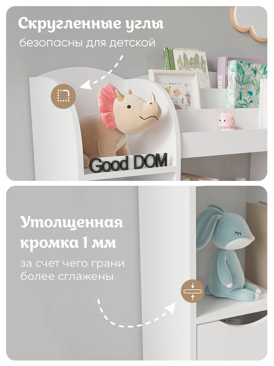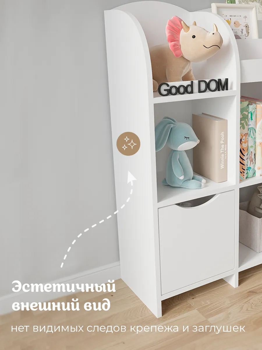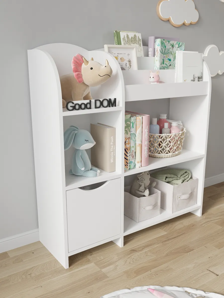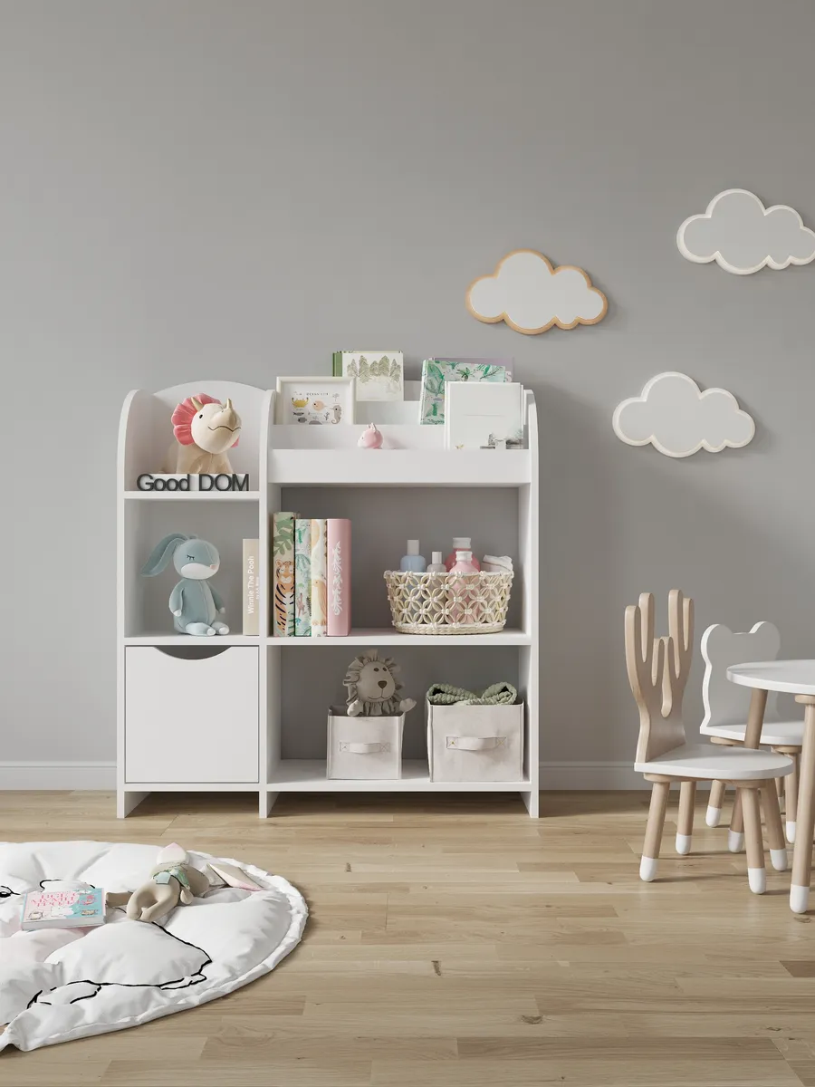 Стеллаж в детскую комнату для игрушек. В детской комнате он найдет свое место как стеллаж детский для игрушек или стеллаж для книг детский. Шкаф в детскую станет идеальным местом для хранения игрушек, книг и других вещей вашего ребёнка. Стеллаж подойдет для мальчиков и для девочек. Шкаф в детскую. Детский стеллаж - стильное решение организации хранения в комнате ребенка. Стеллаж для детской выполнен из безопасных материалов. Острые углы, о которые может пораниться ребенок, отсутствуют. Распределение предметов по зонам приучает детей к порядку, ответственности. Ребенок, пользующийся мебелью по системе Монтесорри, вырастает организованным и уверенным в собственных действиях. Такая мебель развивает в ребенке самостоятельность, ведь он складывает свои вещи на определённые места. Верхняя часть стеллажа оптимально подходит для хранения книг по системе Монтесорри. Стеллаж с дверцей так же отличное интерьерное решение для любой комнаты: гостиной, спальни, прихожей, коридора, детской, офиса. Открытые полки и закрытое отделение (ящик) помогут разместить все необходимые вам вещи, а универсальный дизайн поможет стеллажу вписаться в любой интерьер. Шкаф напольный универсален. Стеллаж в детскую с полками, отделениями, секциями удобен для размещения вещей. Скругленные углы и петли с доводчиками делают его безопасным в использовании даже детьми. Стеллаж книжный вместит книги, журналы, учебники школьника. Так же стеллаж может использоваться как стеллаж для кухни. Стеллаж на кухню поможет организовать хранение кухонной утвари, приправ, баночек и даже декора. Универсальный шкаф впишется в любой интерьер от лофт до классики. Белый стеллаж – это современный и многофункциональный атрибут для детской, гостиной или офисного помещения. Мы дорожим качеством и внешним видом нашей продукции, поэтому вся наша продукция проверяется перед отправкой отделом контроля и упаковывается в коробки с дополнительной твердой защитой.