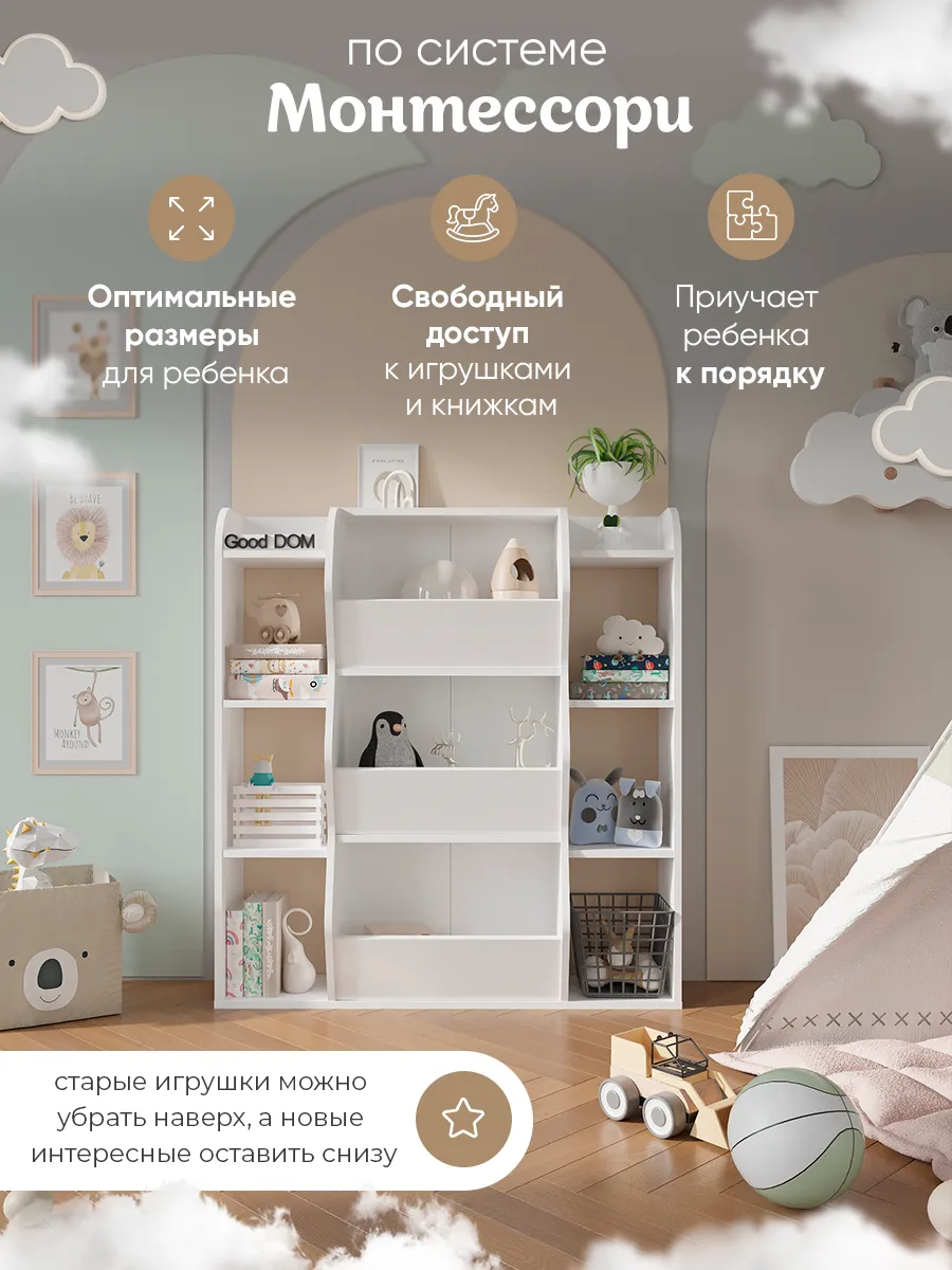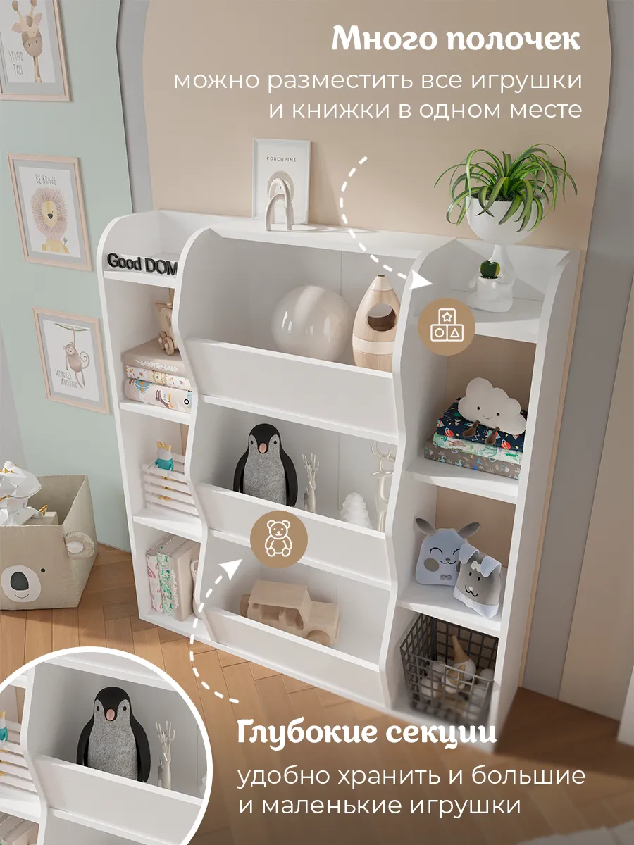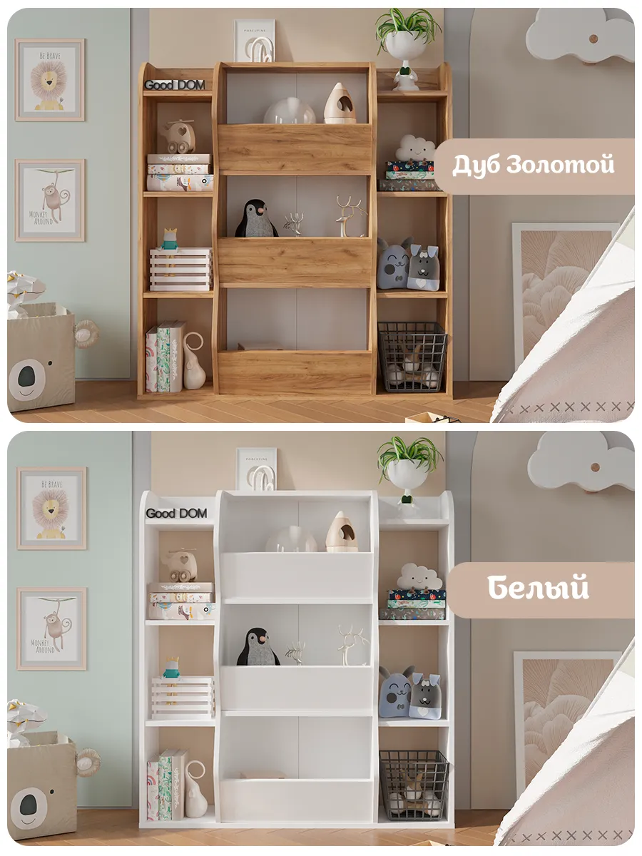 Стеллаж в детскую комнату для игрушек. В детской комнате он найдет свое место как стеллаж детский для игрушек или стеллаж для книг детский. Шкаф в детскую станет идеальным местом для хранения игрушек, книг и других вещей вашего ребёнка. Стеллаж подойдет для мальчиков и для девочек. Шкаф в детскую. Детский стеллаж - стильное решение организации хранения в комнате ребенка. Стеллаж для детской выполнен из безопасных материалов. Острые углы, о которые может пораниться ребенок, отсутствуют. Распределение предметов по зонам приучает детей к порядку, ответственности. Ребенок, пользующийся мебелью по системе Монтесорри, вырастает организованным и уверенным в собственных действиях. Такая мебель развивает в ребенке самостоятельность, ведь он складывает свои вещи на определённые места. Три глубоких ящика в центральной части и четыре полки по бокам - точно уместят все игрушки вашего ребенка. Стеллаж с ящиками так же отличное интерьерное решение для любой комнаты: гостиной, спальни, прихожей, коридора, детской, офиса. Открытые полки и вместительные ящики помогут разместить все необходимые вам вещи, а универсальный дизайн поможет стеллажу вписаться в любой интерьер. Шкаф напольный универсален. Стеллаж в детскую с полками, отделениями, секциями удобен для размещения вещей. Скругленные углы и петли с доводчиками делают его безопасным в использовании даже детьми. Стеллаж книжный вместит книги, журналы, учебники школьника. Так же стеллаж может использоваться как стеллаж для кухни. Стеллаж на кухню поможет организовать хранение кухонной утвари, приправ, баночек и даже декора. Универсальный шкаф впишется в любой интерьер от лофт до классики. Белый стеллаж – это современный и многофункциональный атрибут для детской, гостиной или офисного помещения. Мы дорожим качеством и внешним видом нашей продукции, поэтому вся наша продукция проверяется перед отправкой отделом контроля и упаковывается в коробки с дополнительной твердой защитой.
