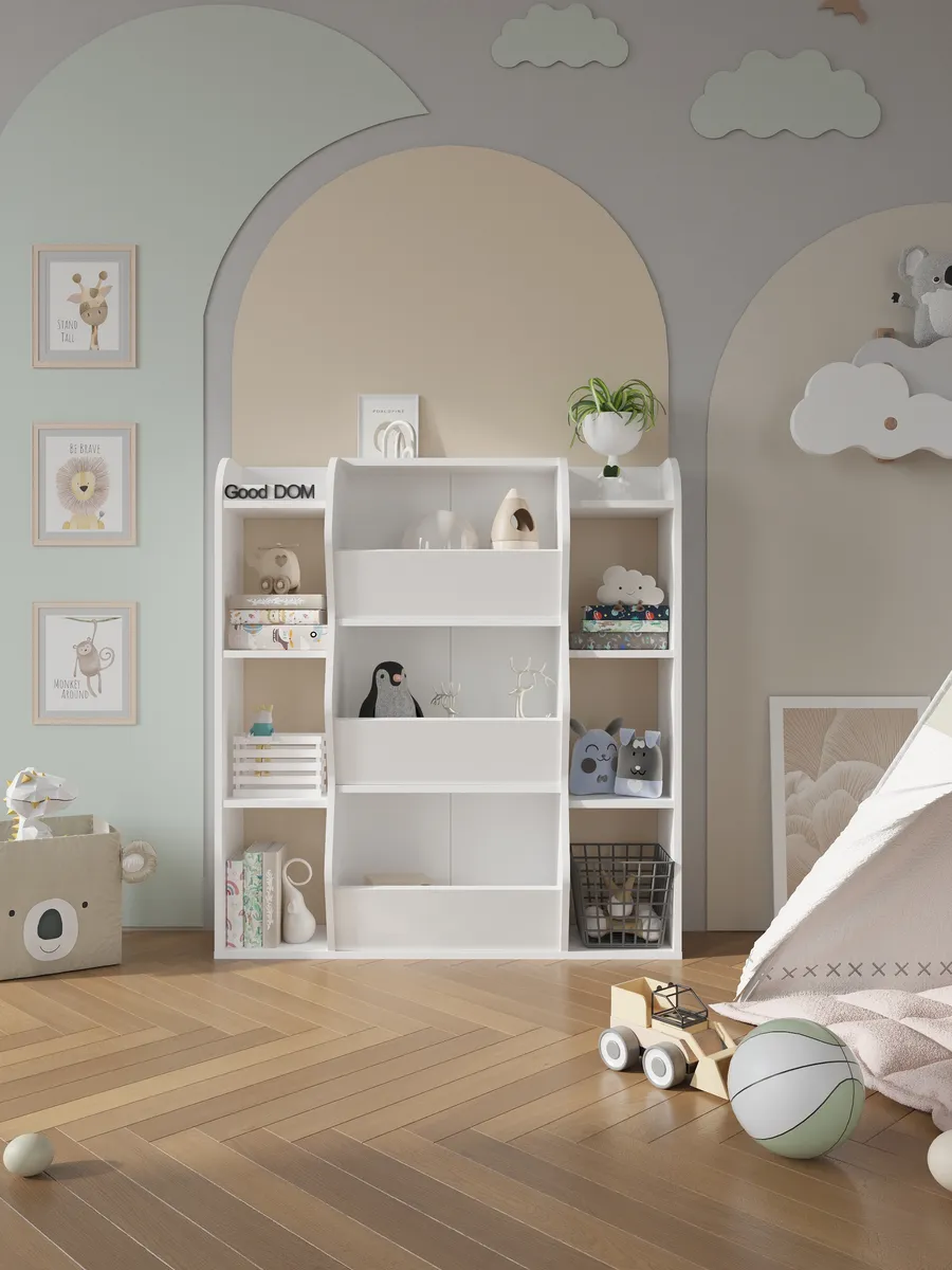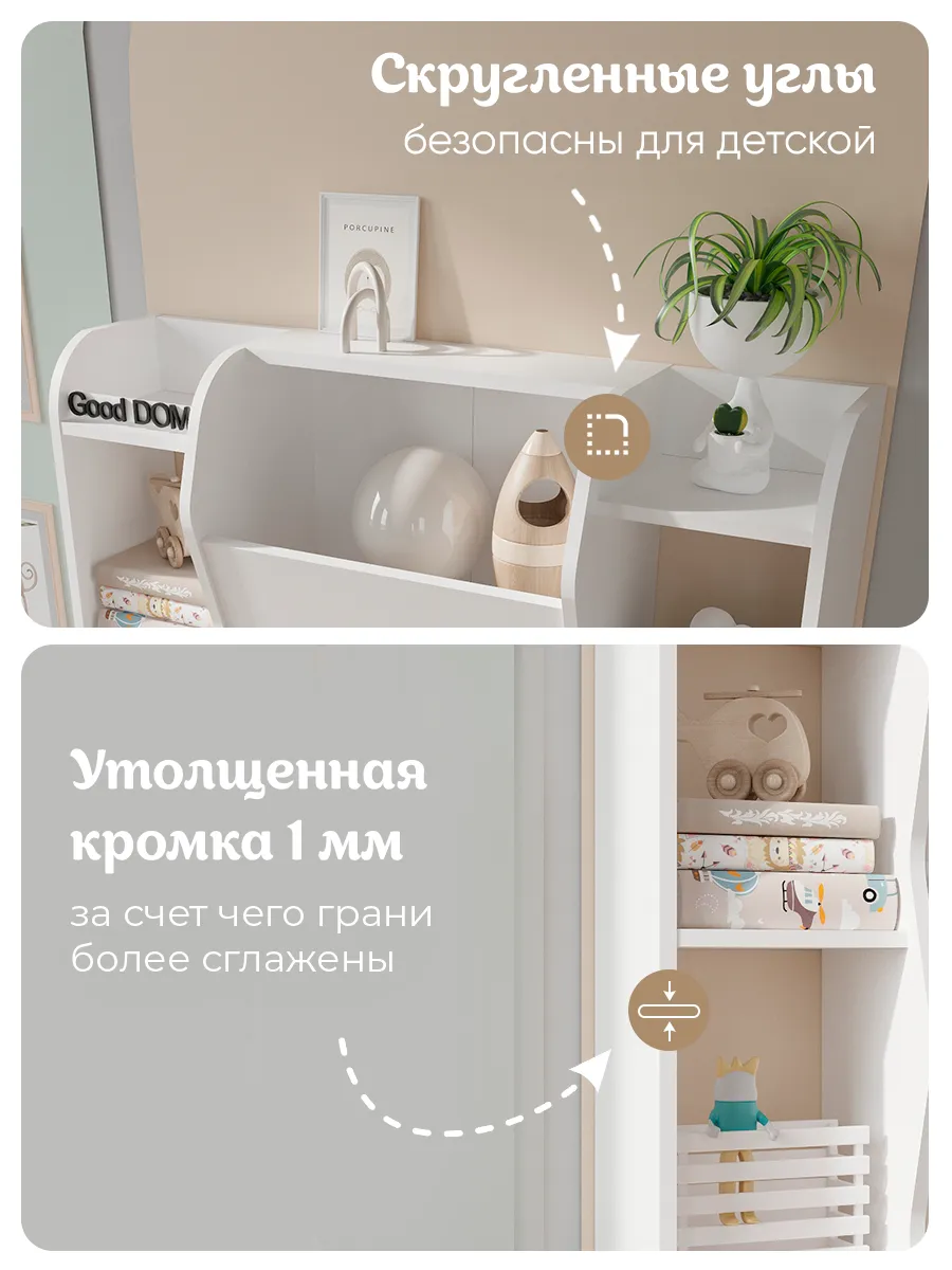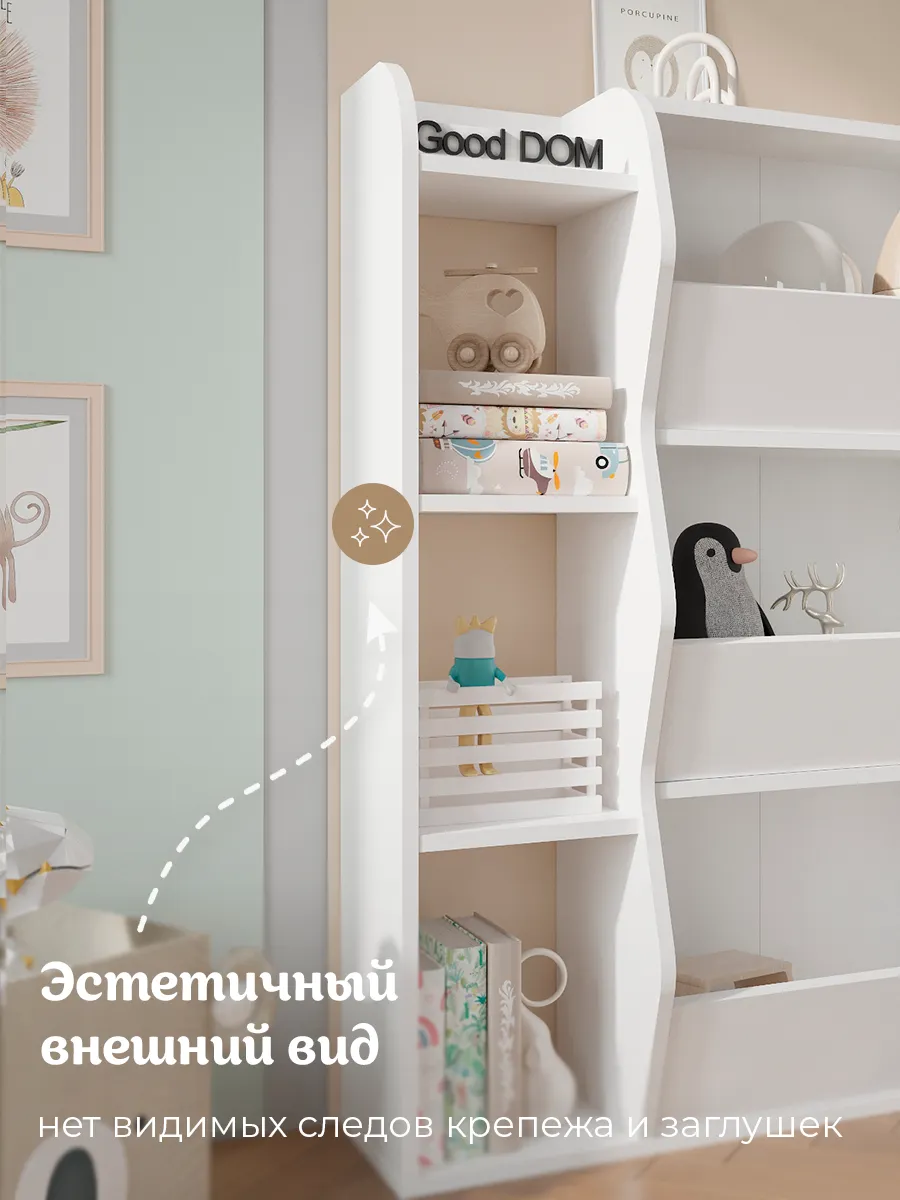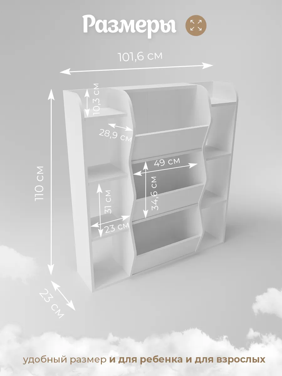 Стеллаж в детскую комнату для игрушек. В детской комнате он найдет свое место как стеллаж детский для игрушек или стеллаж для книг детский. Шкаф в детскую станет идеальным местом для хранения игрушек, книг и других вещей вашего ребёнка. Стеллаж подойдет для мальчиков и для девочек. Шкаф в детскую. Детский стеллаж - стильное решение организации хранения в комнате ребенка. Стеллаж для детской выполнен из безопасных материалов. Острые углы, о которые может пораниться ребенок, отсутствуют. Распределение предметов по зонам приучает детей к порядку, ответственности. Ребенок, пользующийся мебелью по системе Монтесорри, вырастает организованным и уверенным в собственных действиях. Такая мебель развивает в ребенке самостоятельность, ведь он складывает свои вещи на определённые места. Три глубоких ящика в центральной части и четыре полки по бокам - точно уместят все игрушки вашего ребенка. Стеллаж с ящиками так же отличное интерьерное решение для любой комнаты: гостиной, спальни, прихожей, коридора, детской, офиса. Открытые полки и вместительные ящики помогут разместить все необходимые вам вещи, а универсальный дизайн поможет стеллажу вписаться в любой интерьер. Шкаф напольный универсален. Стеллаж в детскую с полками, отделениями, секциями удобен для размещения вещей. Скругленные углы и петли с доводчиками делают его безопасным в использовании даже детьми. Стеллаж книжный вместит книги, журналы, учебники школьника. Так же стеллаж может использоваться как стеллаж для кухни. Стеллаж на кухню поможет организовать хранение кухонной утвари, приправ, баночек и даже декора. Универсальный шкаф впишется в любой интерьер от лофт до классики. Белый стеллаж – это современный и многофункциональный атрибут для детской, гостиной или офисного помещения. Мы дорожим качеством и внешним видом нашей продукции, поэтому вся наша продукция проверяется перед отправкой отделом контроля и упаковывается в коробки с дополнительной твердой защитой.