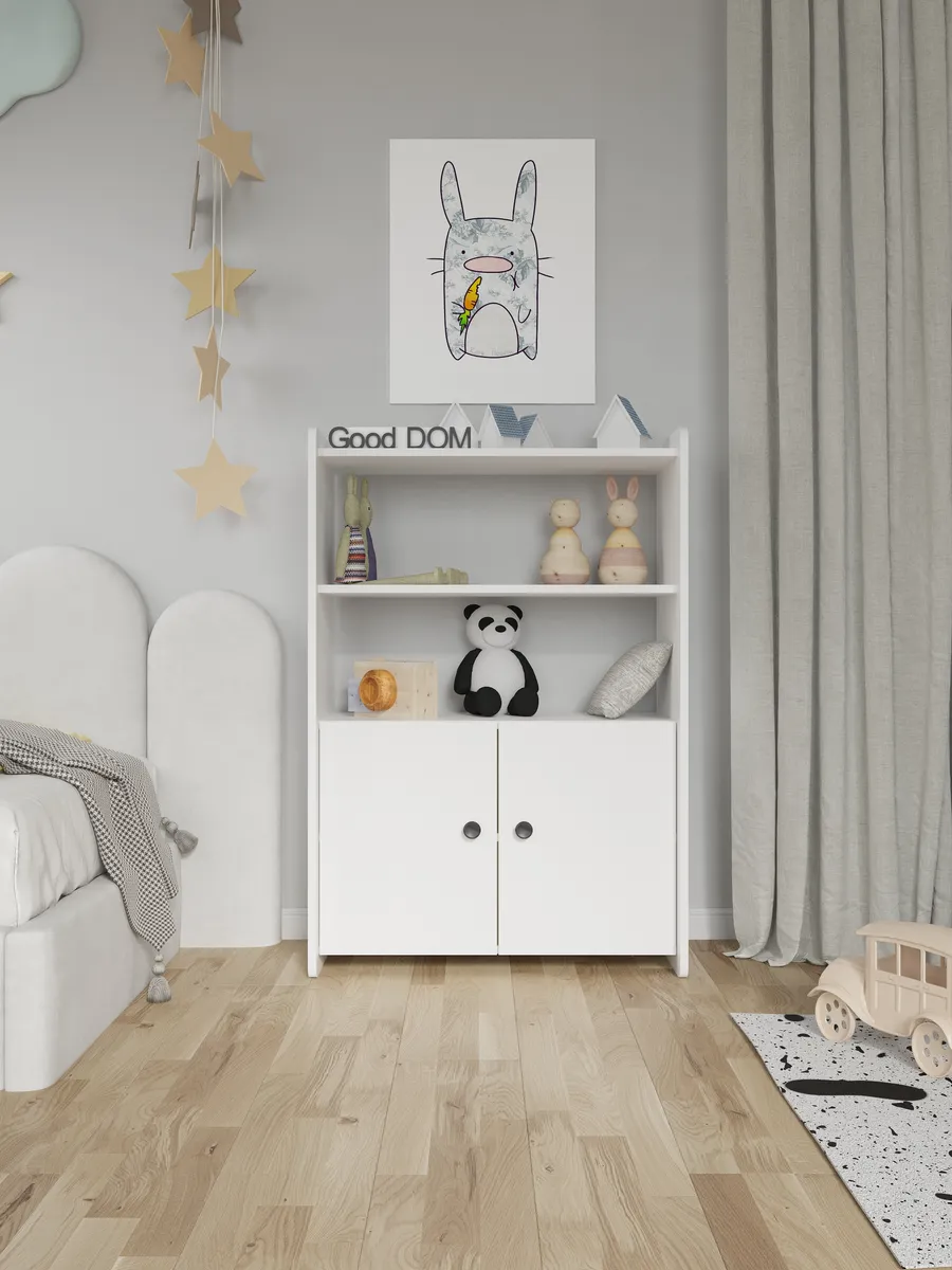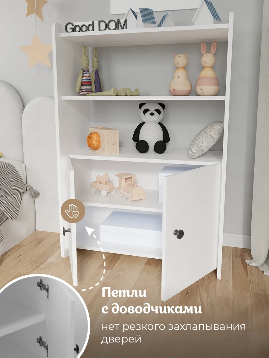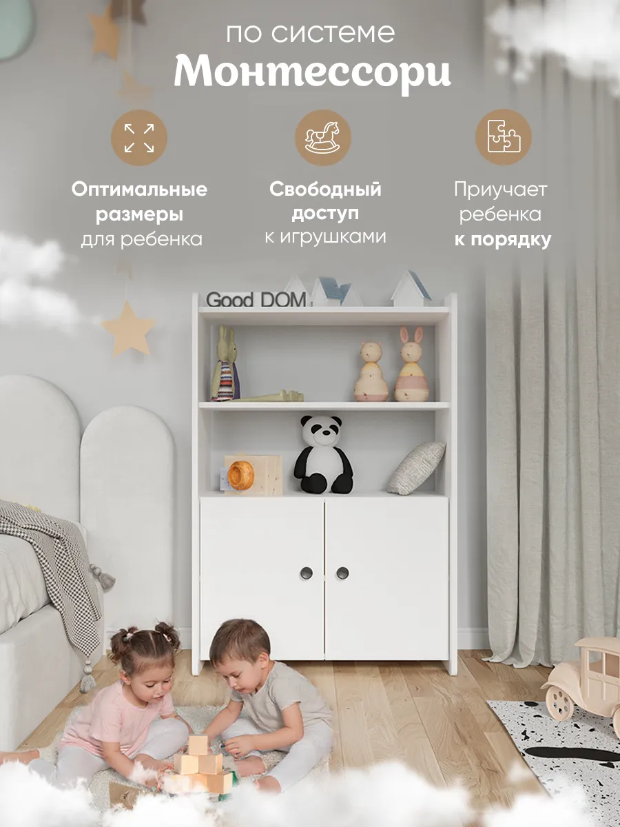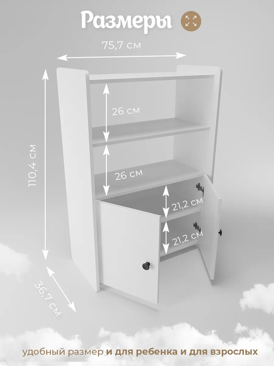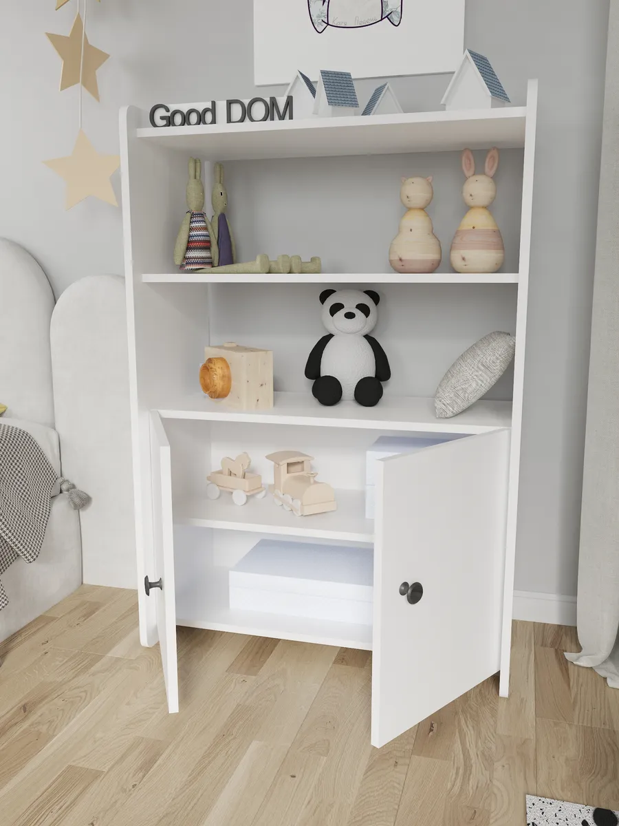 Стеллаж в детскую комнату для игрушек. В детской комнате он найдет свое место как стеллаж детский для игрушек или стеллаж для книг детский. Шкаф в детскую станет идеальным местом для хранения игрушек, книг и других вещей вашего ребёнка. Стеллаж подойдет для мальчиков и для девочек. Шкаф в детскую. Детский стеллаж - стильное решение организации хранения в комнате ребенка. Стеллаж для детской выполнен из безопасных материалов. Острые углы, о которые может пораниться ребенок, отсутствуют. Распределение предметов по зонам приучает детей к порядку, ответственности. Ребенок, пользующийся мебелью по системе Монтесорри, вырастает организованным и уверенным в собственных действиях. Такая мебель развивает в ребенке самостоятельность, ведь он складывает свои вещи на определённые места. Верхняя часть стеллажа оптимально подходит для хранения книг по системе Монтесорри. Стеллаж с дверцей так же отличное интерьерное решение для любой комнаты: гостиной, спальни, прихожей, коридора, детской, офиса. Открытые и закрытые полки помогут разместить все необходимые вам вещи, а универсальный дизайн поможет стеллажу вписаться в любой интерьер. Шкаф напольный универсален. Стеллаж в детскую с полками, отделениями, секциями удобен для размещения вещей. Скругленные углы и петли с доводчиками делают его безопасным в использовании даже детьми. Стеллаж книжный вместит книги, журналы, учебники школьника. Так же стеллаж может использоваться как стеллаж для кухни. Стеллаж на кухню поможет организовать хранение кухонной утвари, приправ, баночек и даже декора. Универсальный шкаф впишется в любой интерьер от лофт до классики. Белый стеллаж – это современный и многофункциональный атрибут для детской, гостиной или офисного помещения. Мы дорожим качеством и внешним видом нашей продукции, поэтому вся наша продукция проверяется перед отправкой отделом контроля и упаковывается в коробки с дополнительной твердой защитой.
