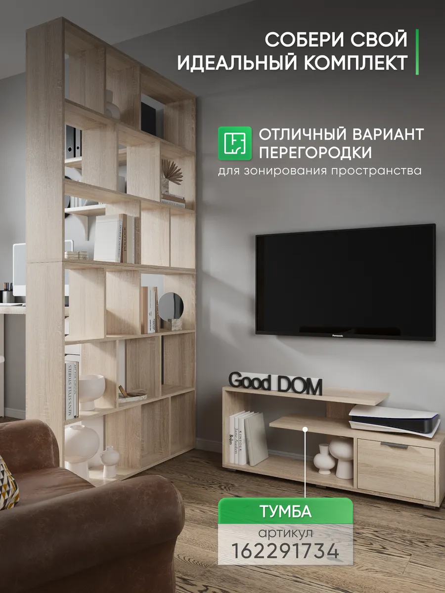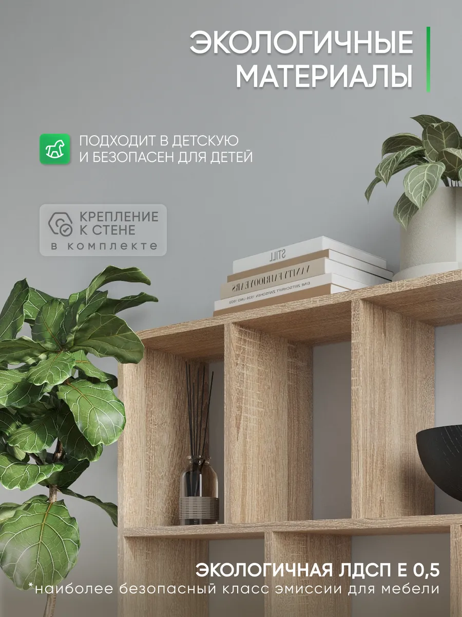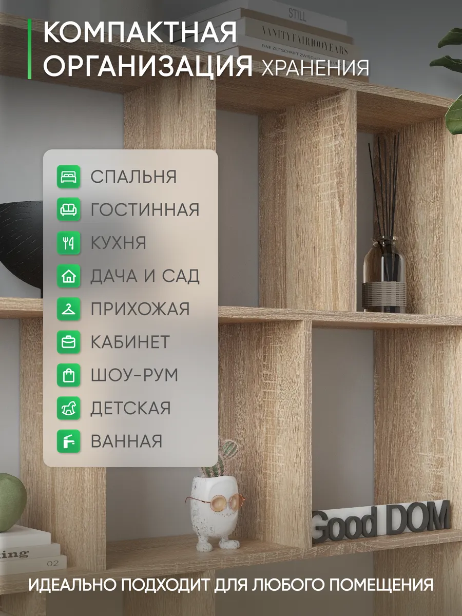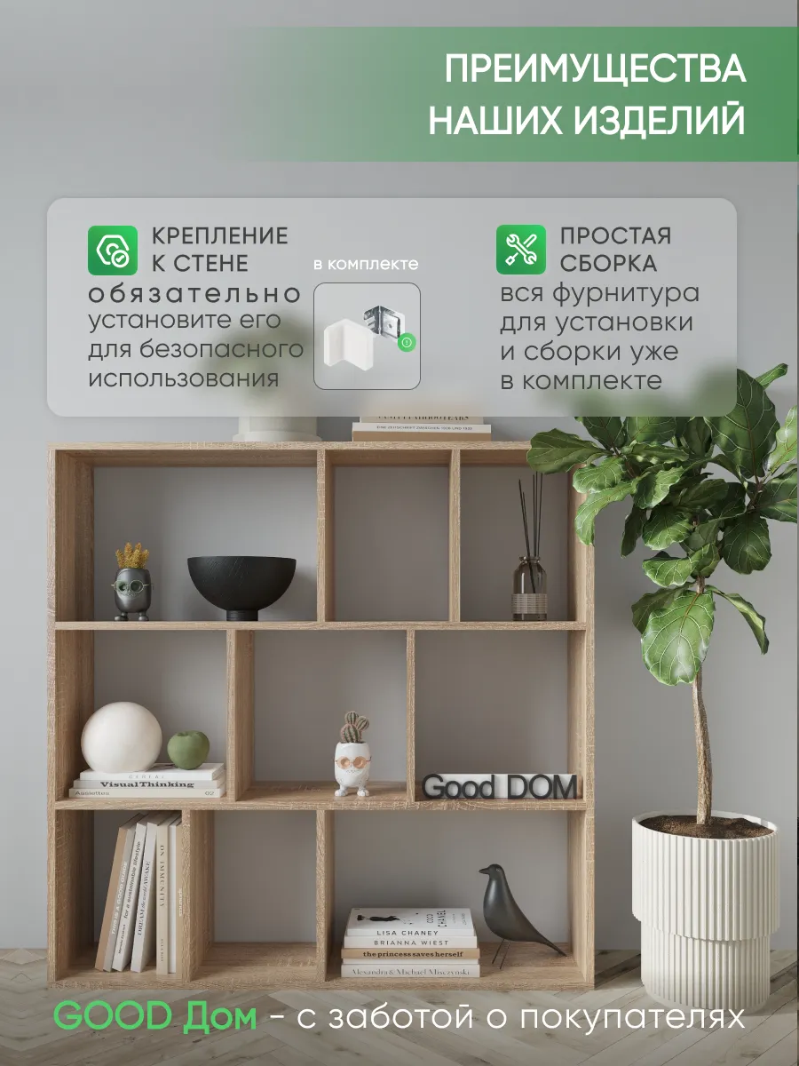 Стеллаж "Салют" отличное интерьерное решение для любой комнаты. Девять открытых полок секций стелажа помогут компактно разместить все необходимые вам вещи, а необычная форма напольной полки поможет сделать ваш интерьер интереснее. Шкаф вместительный, но узкий - что позволит с максимальной пользой использовать свободное пространство и уместить его даже в маленькой комнате. Книжный стеллаж можно "увеличить" купив два и установив, их друг на друга. Тем самым вы получите большой и вместительный стеллаж с полками. Стилаж деревянный в современном стиле украсят ваш интерьер, а дизайн позволит разместить его в любой уголок вашего дома или квартиры. Стеллаж белый наиболее популярная модель, но есть еще несколько разных расцветок - вы можете выбрать именно тот цвет, который подходит под Ваш интерьер и сочетается с уже имеющейся мебелью. Данная модель отлично служит как шкаф офисный, красиво украсив полки, использовать как стеллаж для игрушек в детскую, шкаф в спальню. Еще одно применение - этажерка для игрушек или коллекционных фигурок, моделей машинок. Так же стеллаж может с легкостью стать книжным шкафом для удобного хранения любимых книг. Для размещения растений, для цветов наш шкаф также подойдет. Стеллаж в прихожей найдет свое место под аксессуары или сумки - открытый шкаф в коридор. Благодаря открытым полкам и нестандартному их расположению стеллаж часто используют в зонировании пространства как перегородку. Наш стеллаж изготовлен на новом оборудовании из высококачественных материалов ЛДСП. Мы дорожим качеством и внешним видом нашей продукции, поэтому вся продукция проверяется перед отправкой отделом контроля и упаковывается в коробки с дополнительной твердой защитой. В нашем ассортименте есть много интересных моделей мебели, что позволяет собрать комплект мебели от бренда Good дом, все в Дом, которая сочетается между собой. Чтобы посмотреть всё - просто нажмите на иконку логотипа.
