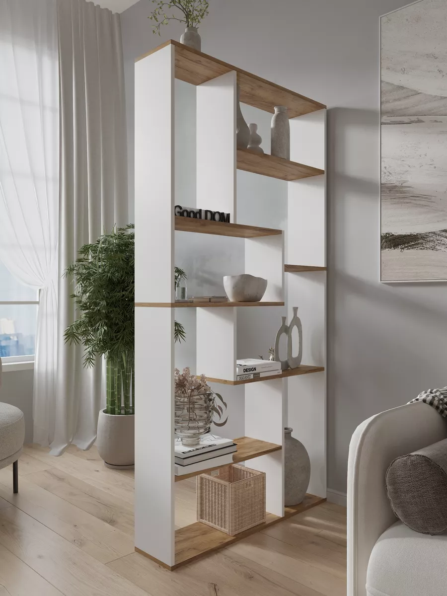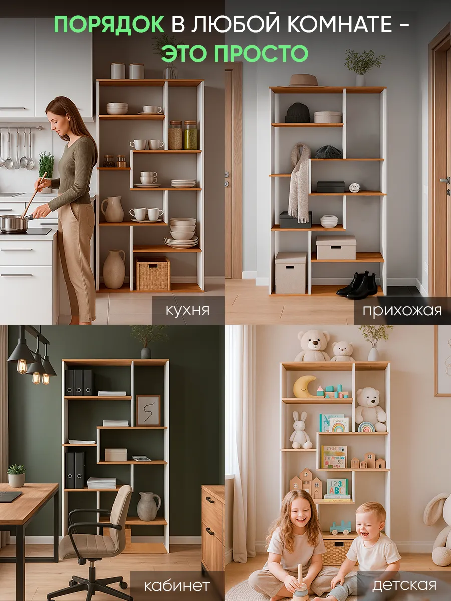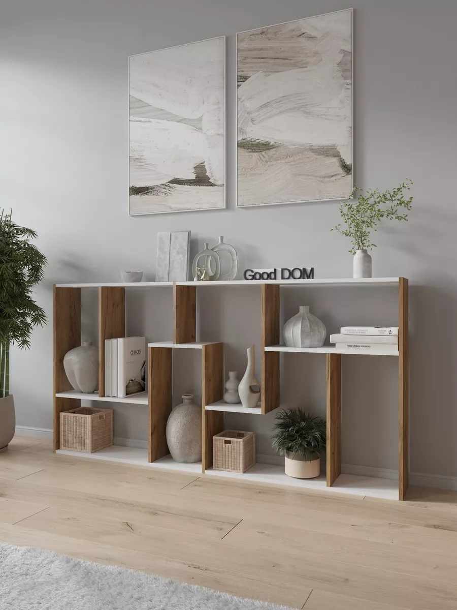 Небольшой напольный шкаф идеально подходит для хранения и организации пространства в доме или офисе. Этот корпусный стеллаж с закрытой дверью и открытыми полками создает удобную систему хранения книг, игрушек и декоративных элементов. Горизонтальная этажерка с глубокими секциями помогает разделять комнаты и зонировать интерьер, превращая любую комнату в функциональное и стильное пространство. Универсальный дизайн позволяет использовать мебель как в гостиной, так и в прихожей, спальне или кухне. Легкий и сборный шкафчик отлично впишется в интерьер в стиле лофт или классический дизайн, добавляя красивый декоративный акцент. Узкий и угловой вариант помогает экономить место, а наличие ящиков и полок обеспечивает удобный доступ к вещам. Этот полочный элемент мебели станет хорошим дополнением к любому дому, создавая уют и порядок. Раздвижная дверь облегчает использование в ограниченном пространстве, а белый цвет корпуса гармонично сочетается с различными оттенками интерьера.