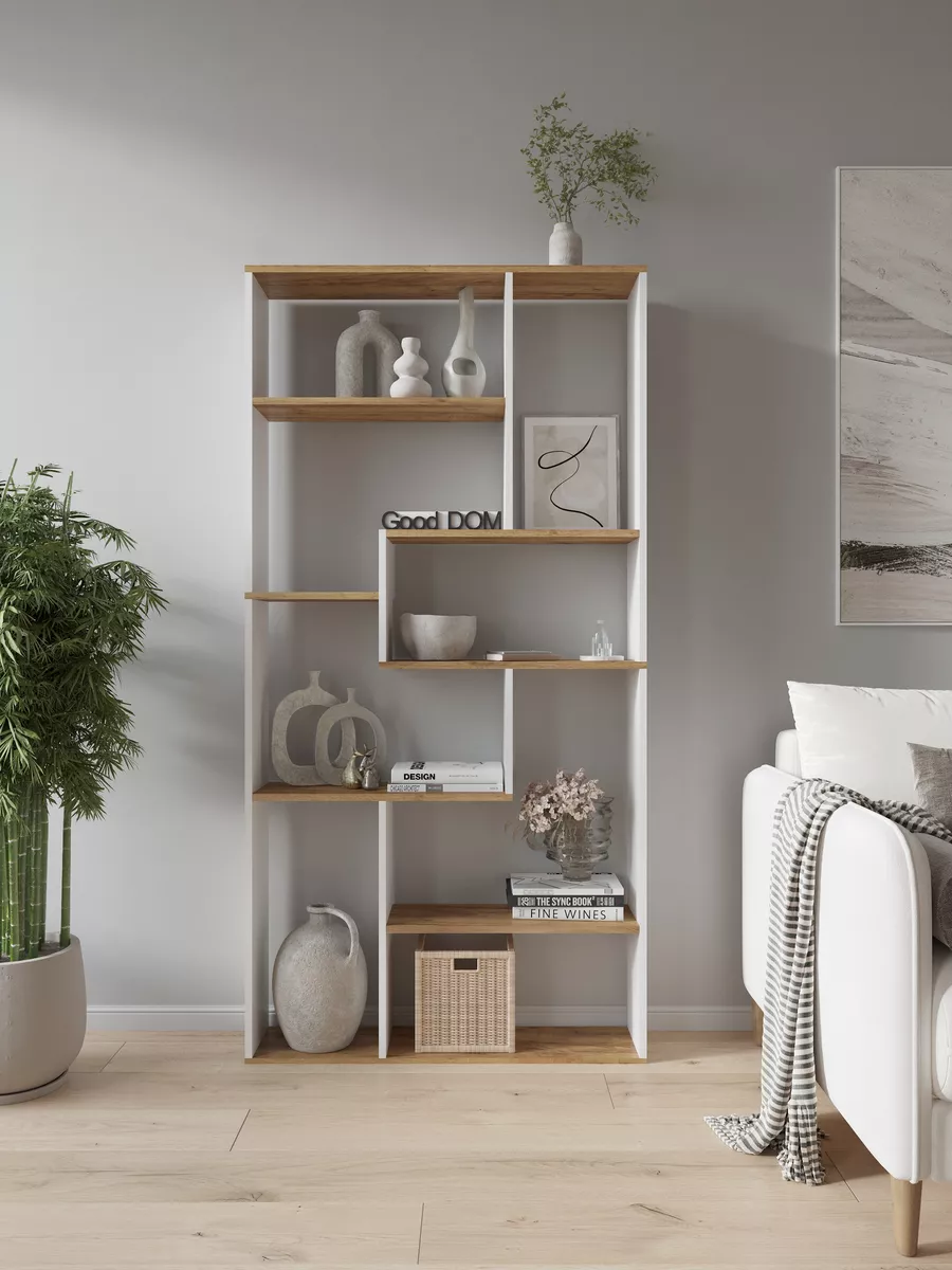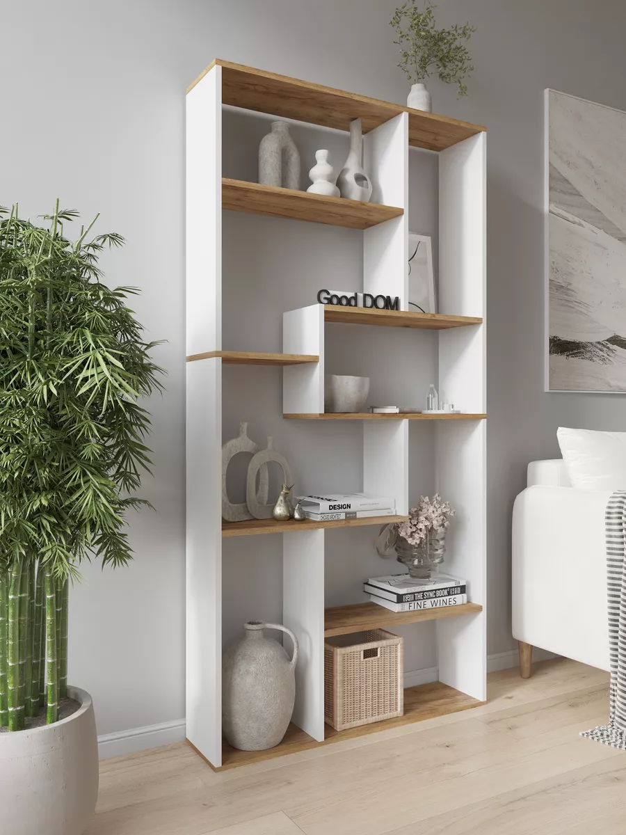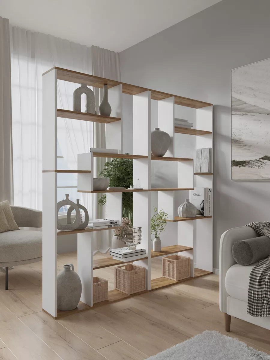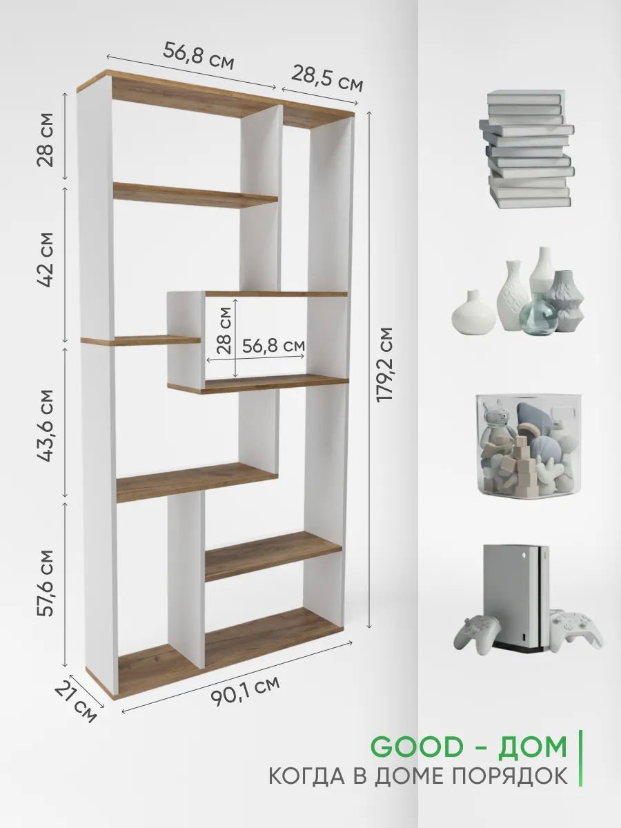 Небольшой напольный шкаф идеально подходит для хранения и организации пространства в доме или офисе. Этот корпусный стеллаж с закрытой дверью и открытыми полками создает удобную систему хранения книг, игрушек и декоративных элементов. Горизонтальная этажерка с глубокими секциями помогает разделять комнаты и зонировать интерьер, превращая любую комнату в функциональное и стильное пространство. Универсальный дизайн позволяет использовать мебель как в гостиной, так и в прихожей, спальне или кухне. Легкий и сборный шкафчик отлично впишется в интерьер в стиле лофт или классический дизайн, добавляя красивый декоративный акцент. Узкий и угловой вариант помогает экономить место, а наличие ящиков и полок обеспечивает удобный доступ к вещам. Этот полочный элемент мебели станет хорошим дополнением к любому дому, создавая уют и порядок. Раздвижная дверь облегчает использование в ограниченном пространстве, а белый цвет корпуса гармонично сочетается с различными оттенками интерьера.