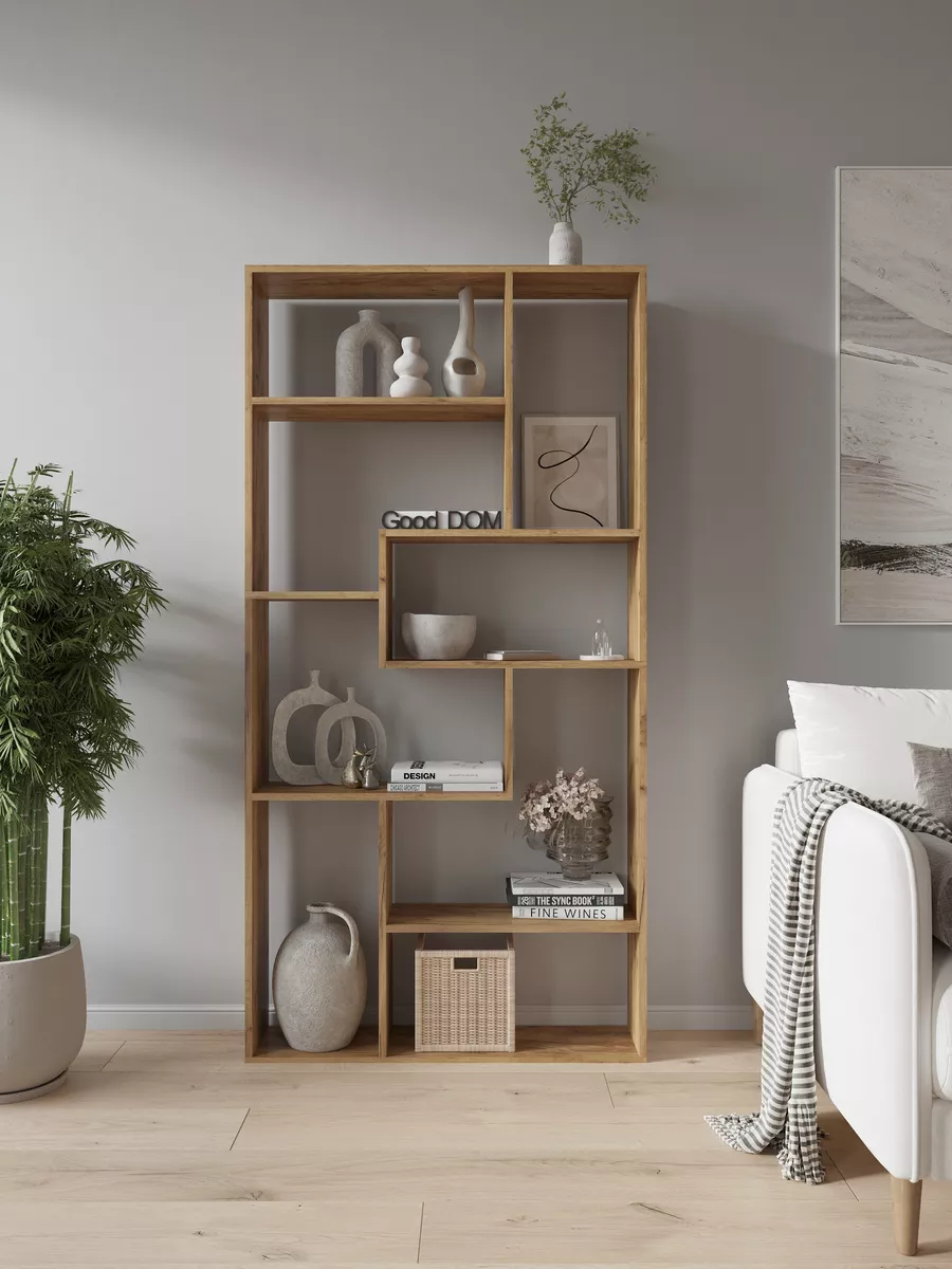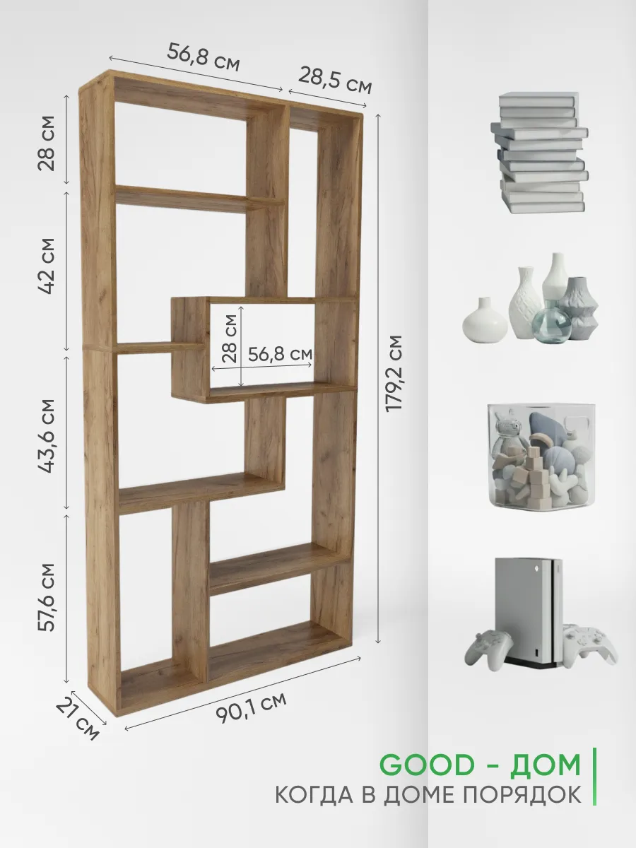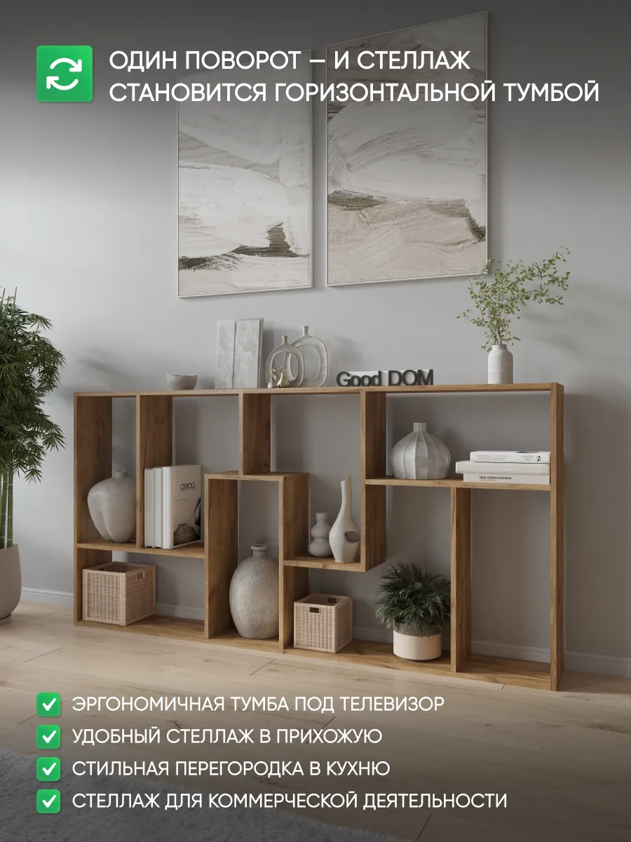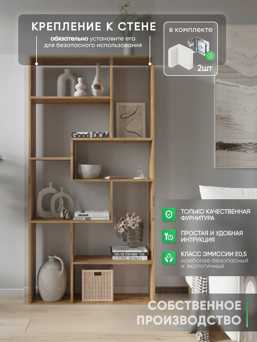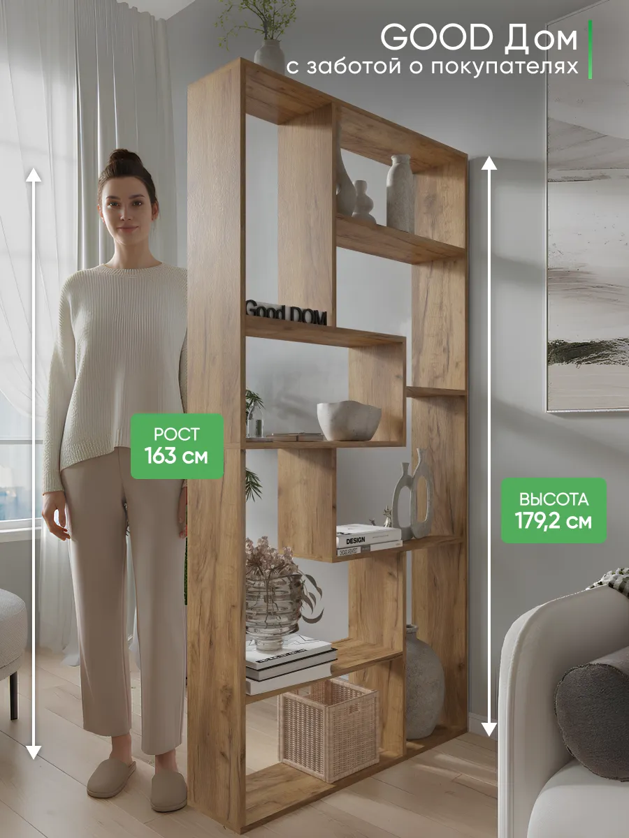 Универсальный стеллаж-перегородка отлично подходит для зонирования пространства в доме, офисе или детской комнате. Мебель сборная и легкая, что упрощает процесс установки и перемещения по полу. Конструкция создана из деревянных элементов и обладает стильным лофт-видом, благодаря чему гармонично вписывается в интерьер гостиной, спальни, кухни или прихожей. Такой стеллаж удобен для хранения книг, игрушек, вещей, мелочей и подходящих аксессуаров. Открытые секции и полки позволяют использовать пространство рационально, а угловой или горизонтальный способ расположения делает систему хранения по-настоящему универсальной.
