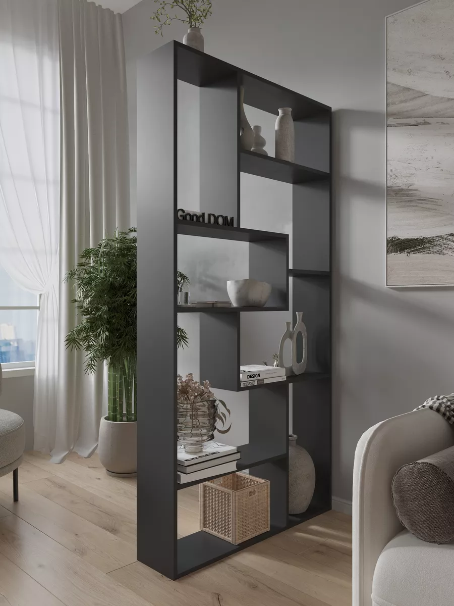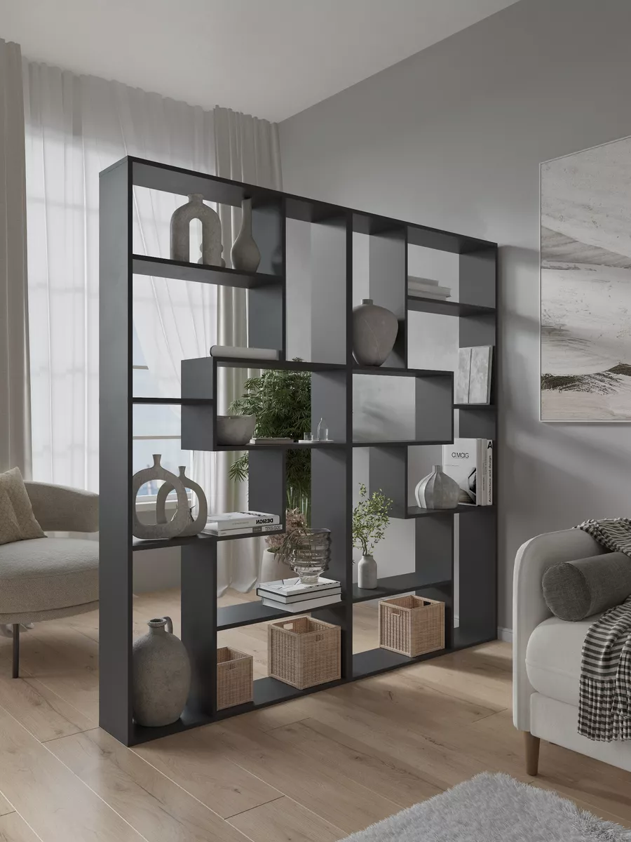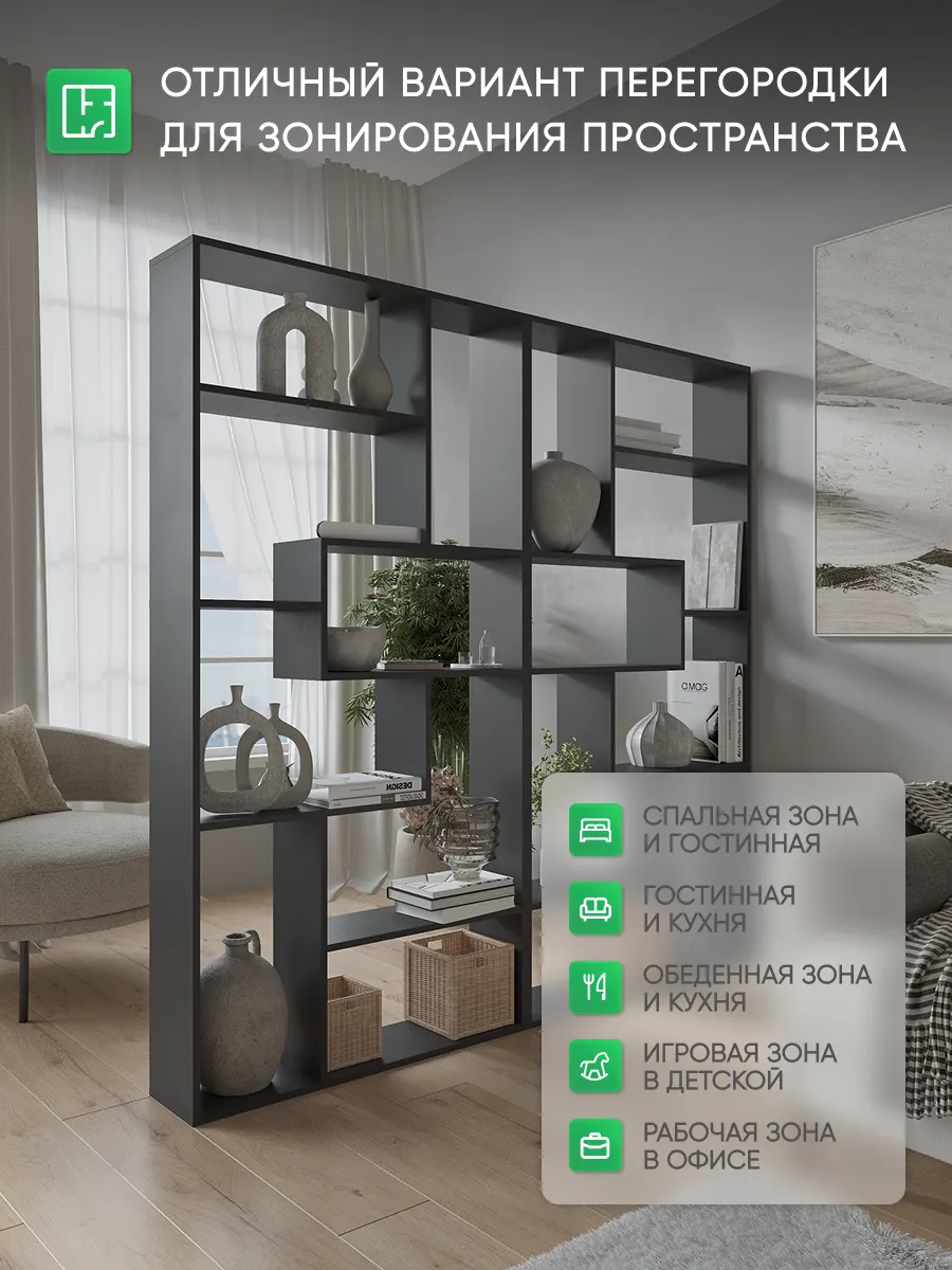 Стеллаж перегородка отлично подходит для зонирования пространства в современном интерьере. Дизайнерский предмет мебели гармонично впишется в стиль лофт и loft, подчеркнет индивидуальность комнаты и создаст уютную атмосферу. Благодаря сборной системе конструкция легко устанавливается без сверления, а напольный способ размещения позволяет использовать изделие как декоративный элемент или функциональную стенку между зонами. Открытый формат секций обеспечивает удобное хранение книг, мелочей, игрушек или красивых предметов декора. Горизонтальный или вертикальный вариант расположения делает изделие многофункциональным: оно подойдет для гостиной, спальни, детской, кухни, прихожей и даже коридора.