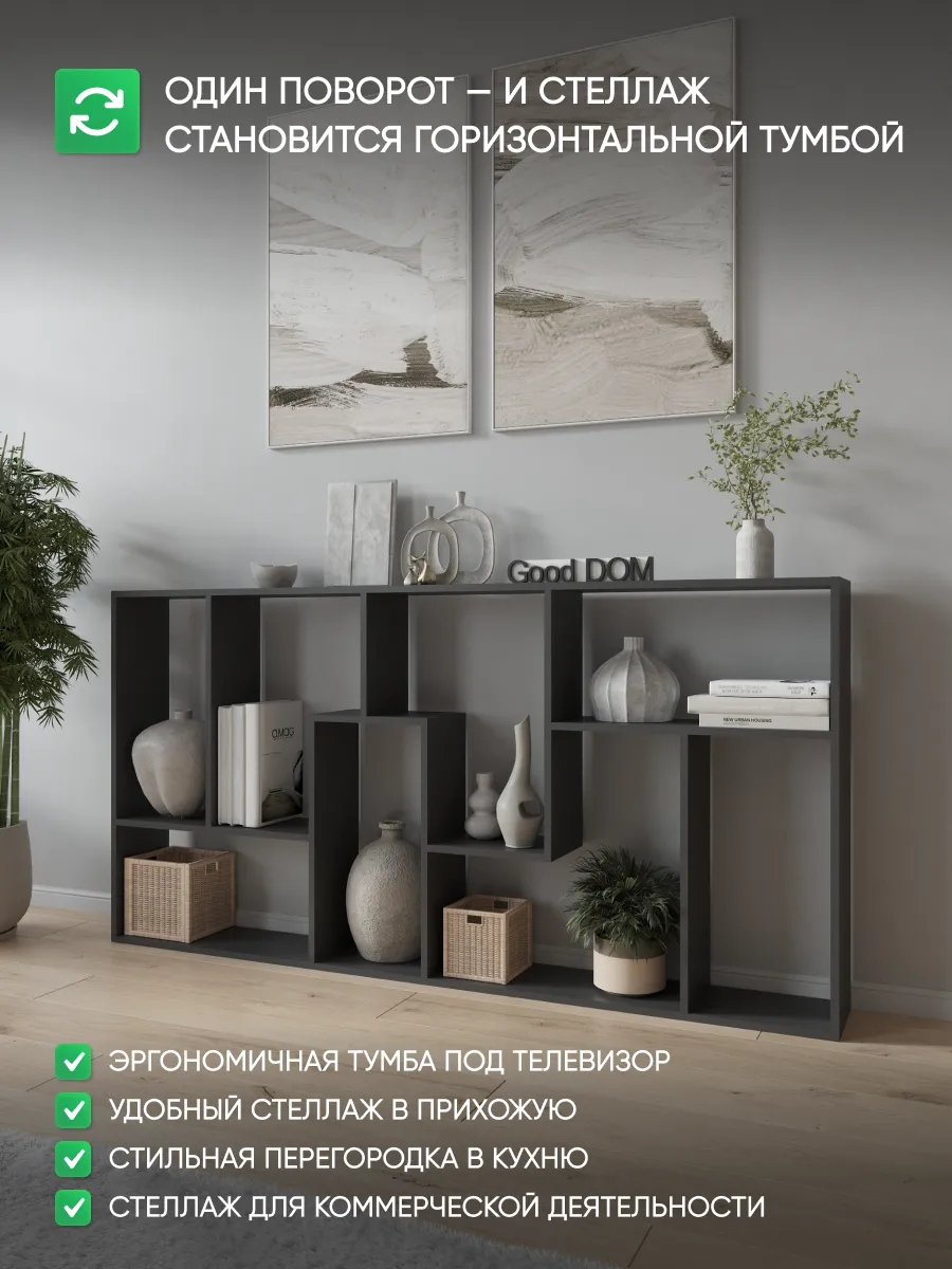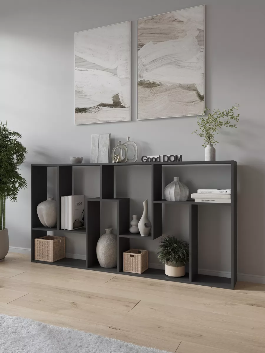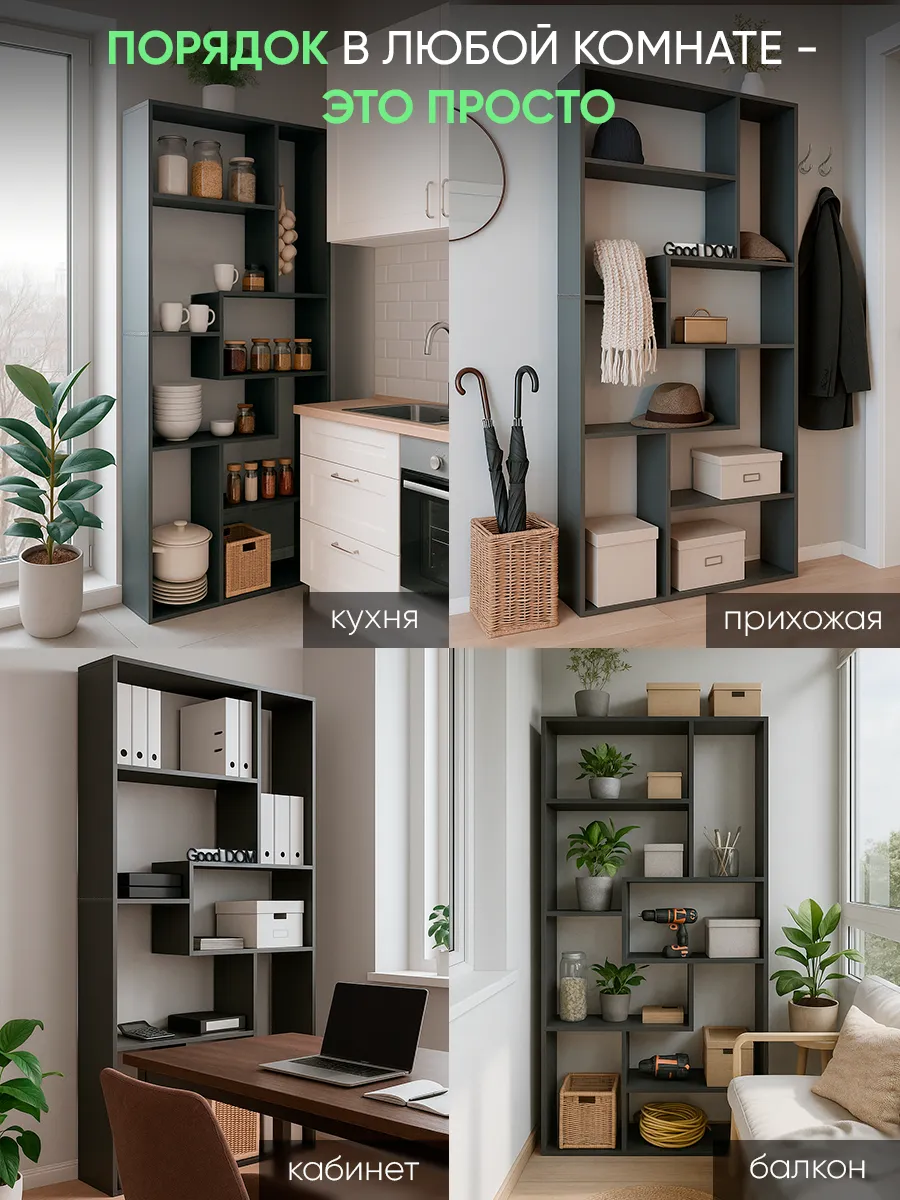 Стеллаж перегородка отлично подходит для зонирования пространства в современном интерьере. Дизайнерский предмет мебели гармонично впишется в стиль лофт и loft, подчеркнет индивидуальность комнаты и создаст уютную атмосферу. Благодаря сборной системе конструкция легко устанавливается без сверления, а напольный способ размещения позволяет использовать изделие как декоративный элемент или функциональную стенку между зонами. Открытый формат секций обеспечивает удобное хранение книг, мелочей, игрушек или красивых предметов декора. Горизонтальный или вертикальный вариант расположения делает изделие многофункциональным: оно подойдет для гостиной, спальни, детской, кухни, прихожей и даже коридора.