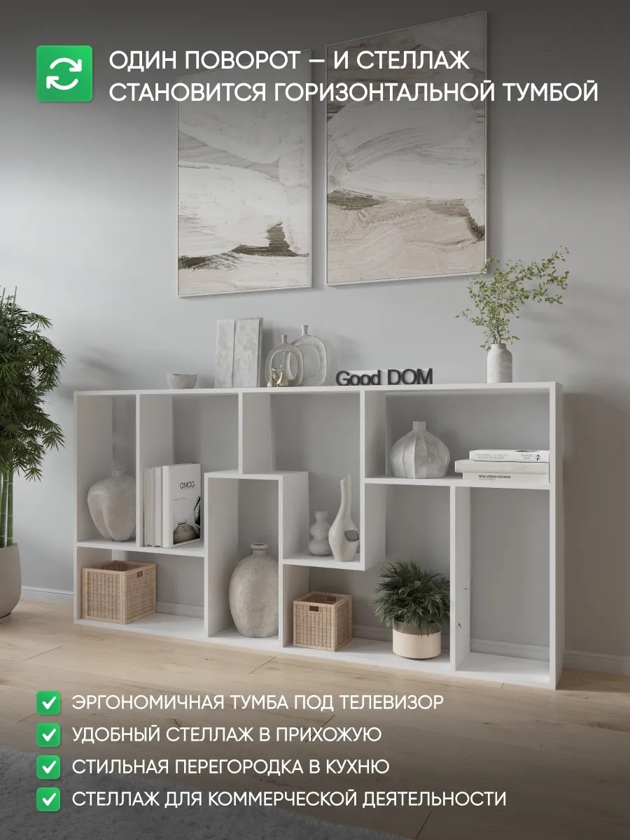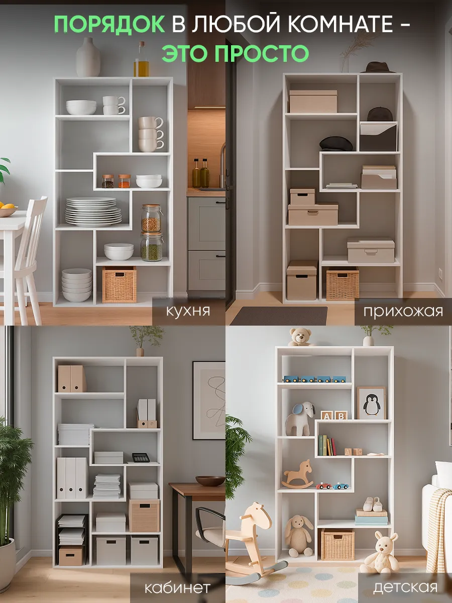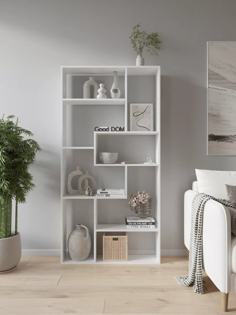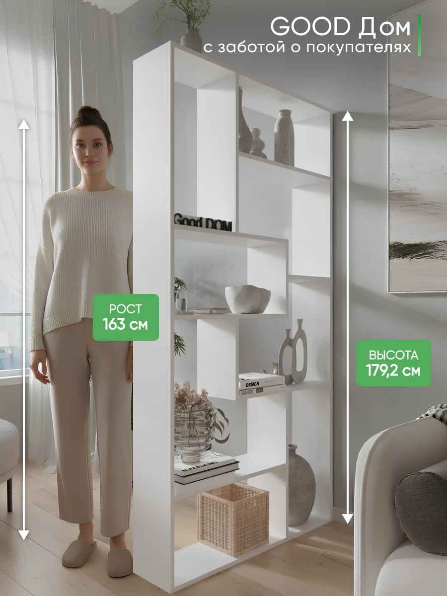 Стеллаж перегородка идеально подойдет для зонирования пространства в доме или офисном помещении. Этот небольшой и узкий шкаф обеспечивает функциональное разделение комнаты, создавая уютный уголок для работы или отдыха. Конструкция включает несколько полок, которые легко разместят книги, декоративные растения, детские игрушки и мелочи. Вертикальный и напольный вариант мебели отлично впишется в интерьер гостиной, кухни, кабинета или прихожей, объединяя стиль и практичность. Благодаря угловой форме и небольшой глубине изделие не занимает много места, но при этом сохраняет высокую функциональность и удобство сборки.