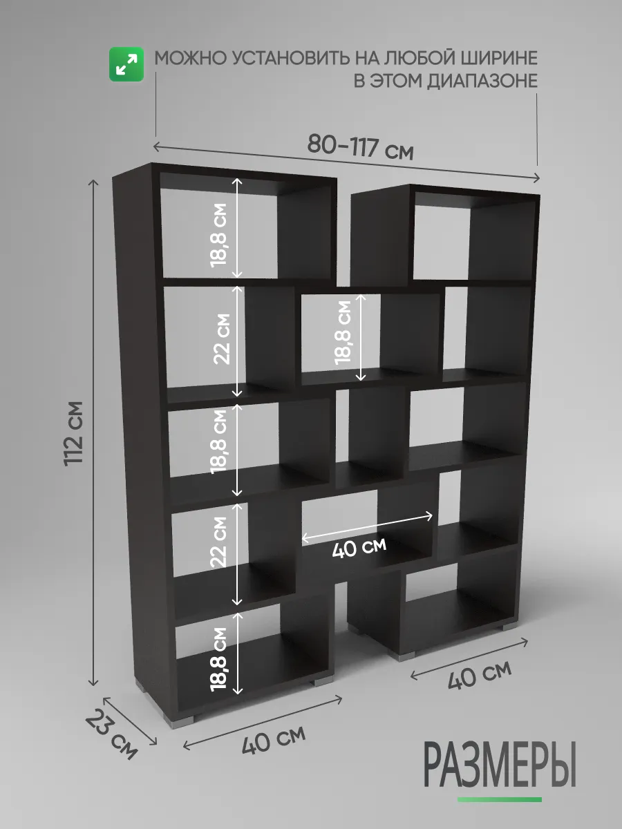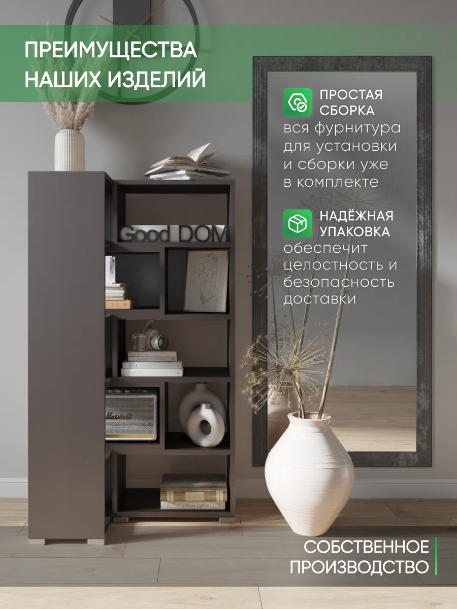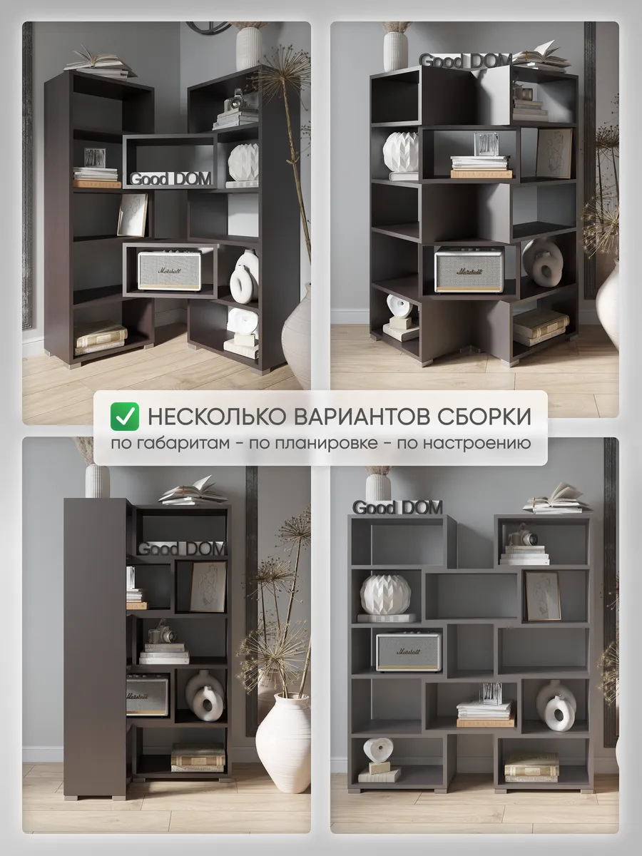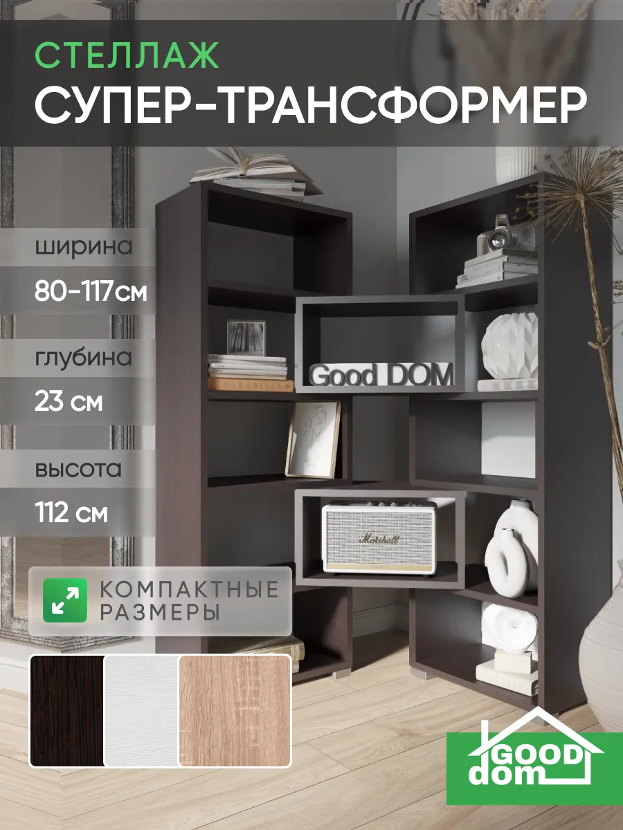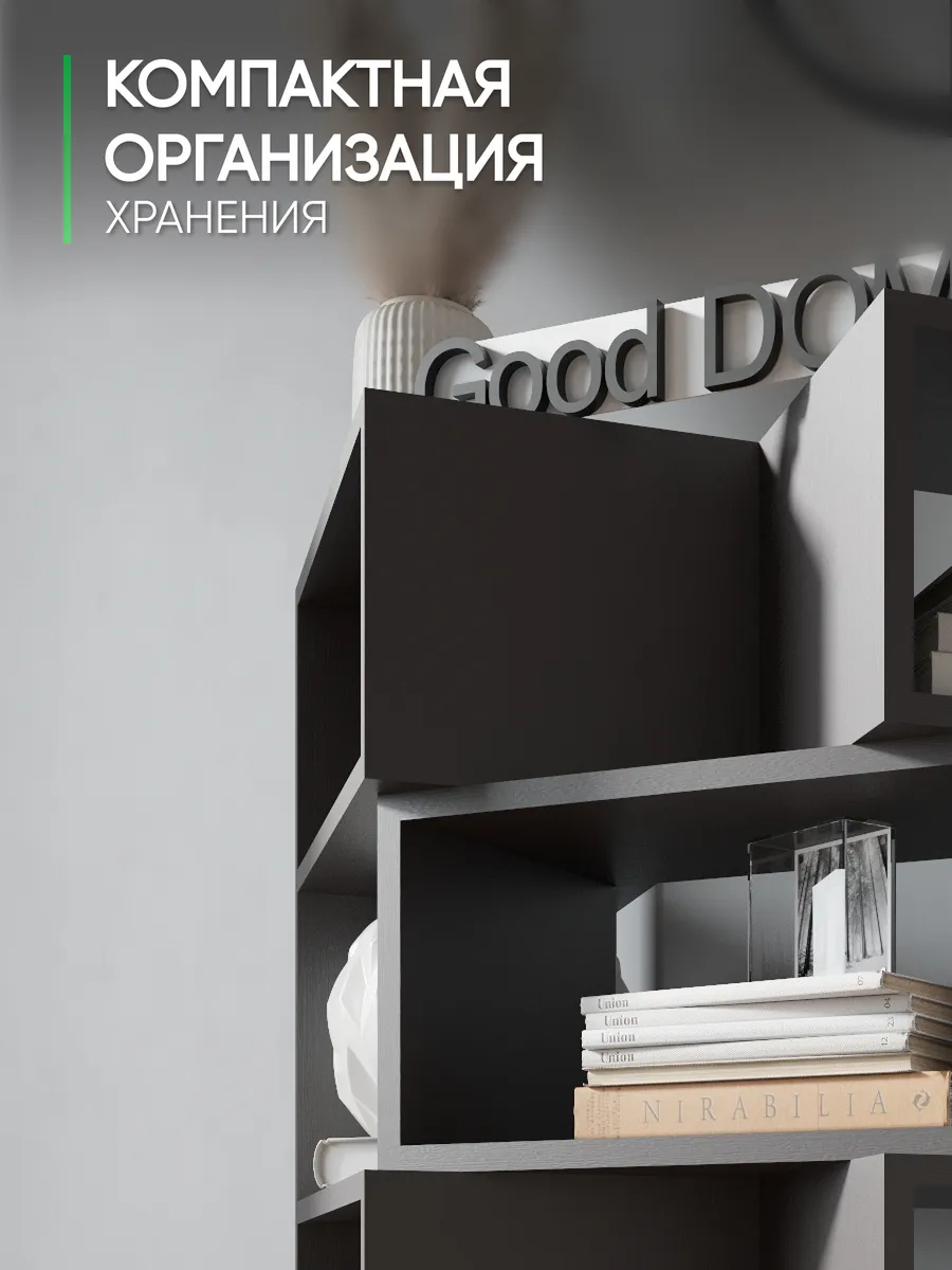 Стеллаж "Тетрис" не зря имеет такое название. Особенность такого стеллажа - это регулируемая ширина и расположение боковых элементов. Стелаж можно собрать под углом или наклоном - так как нравится и подходит именно вам. Стеллаж-трансформер отличное интерьерное решение для гостиной, коридора прихожей, балкона, спальни или детской. Множество открытых полок стеллажика помогут разместить все необходимые вам вещи, а необычная форма напольной полки поможет сделать ваш интерьер интереснее. Шкаф вместительный, но узкий - что позволит с максимальной пользой использовать свободное пространство и уместить его даже в маленькой комнате. Книжный стеллаж будет удобен для зонирования пространства как перегородка между зонами. Его используют в качестве перегородки и эффектного расположения интерьерных украшений: статуэток и гипсовых фигур, свечей и ароматических диффузоров, фотографий в рамках, маленьких горшочков с живыми цветами или искусственных декоративных растений, плетеных корзинок из лозы, книг и журналов, разных аксессуаров. Так же стеллаж может с легкостью стать книжным шкафом для удобного хранения любимых книг. Кроме того, ваши любимые растения и цветы так же могут найти свое место на стеллаже. Нестандартные, разного размера секции для хранения помогут сделать ваш интерьер современным. При своих компактных размерах стеллаж с полками достаточно вместительный. Стеллаж в прихожей найдет свое место под аксессуары или сумки - открытый шкаф в коридор. Наш стеллаж изготовлен на новом оборудовании из высококачественных материалов ЛДСП. Мы дорожим качеством и внешним видом нашей продукции, поэтому вся продукция проверяется перед отправкой отделом контроля и упаковывается в коробки с дополнительной твердой защитой. В нашем ассортименте есть много интересных моделей мебели, что позволяет собрать комплект мебели от бренда Good дом, все в Дом, которая сочетается между собой. Чтобы посмотреть всё - просто нажмите на иконку логотипа.