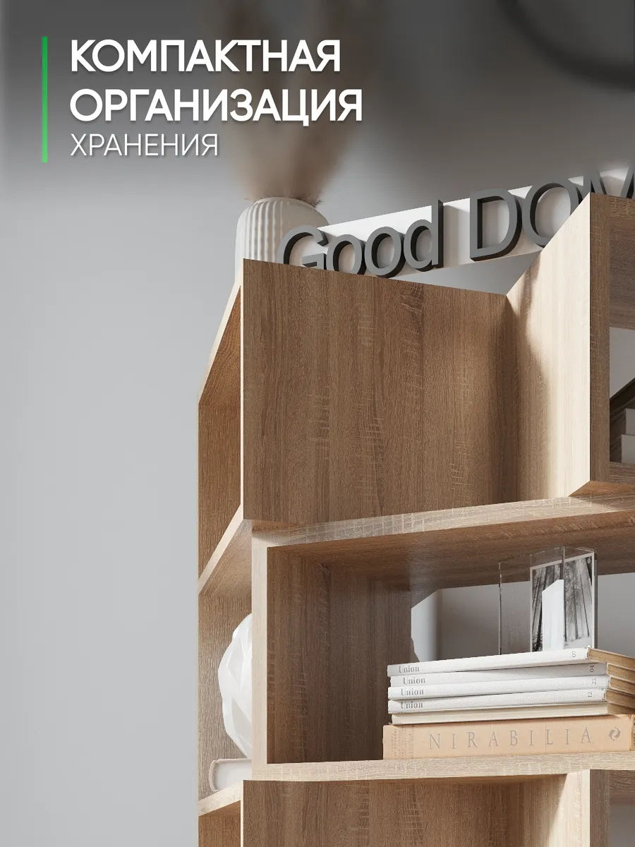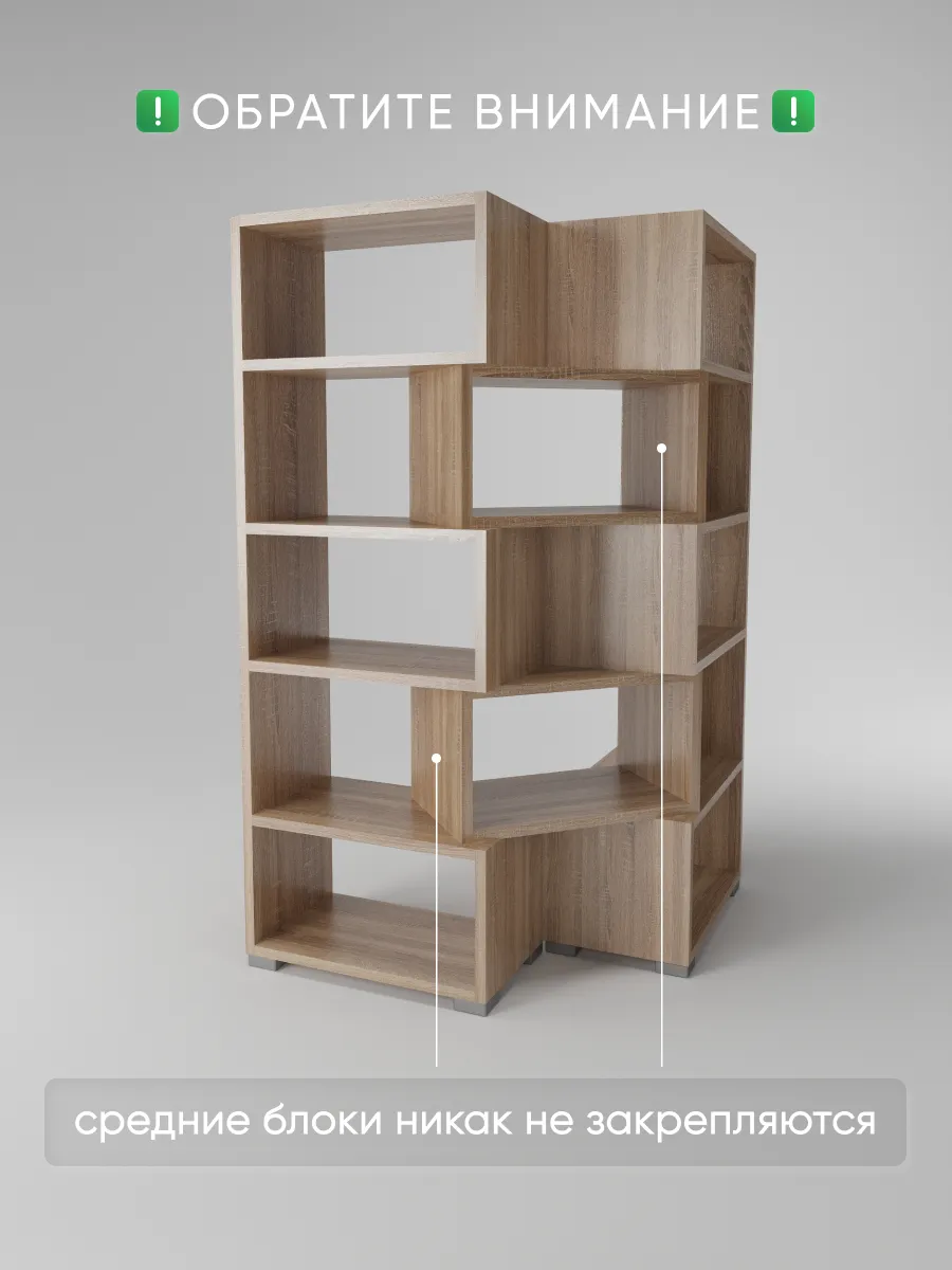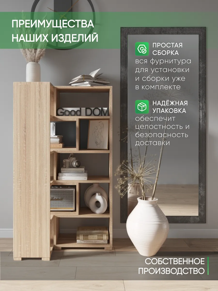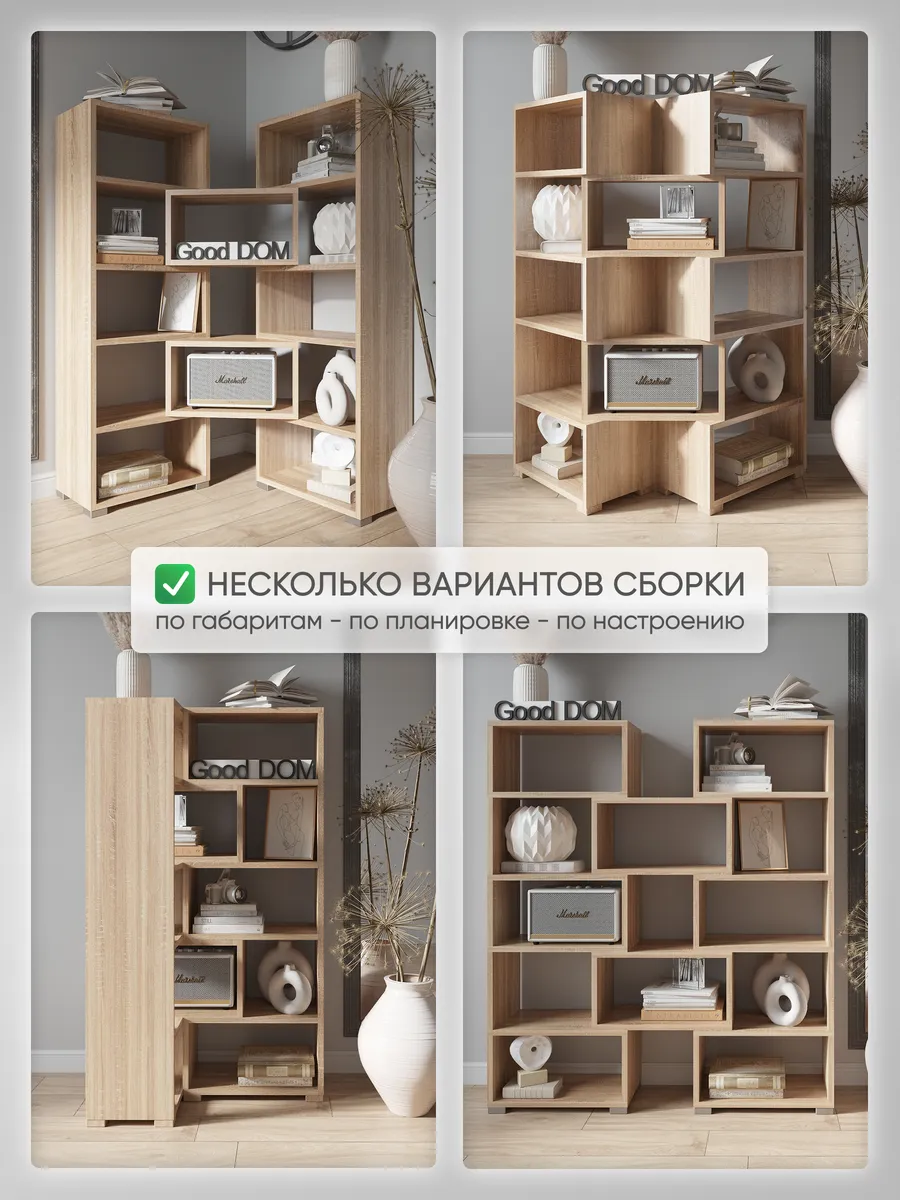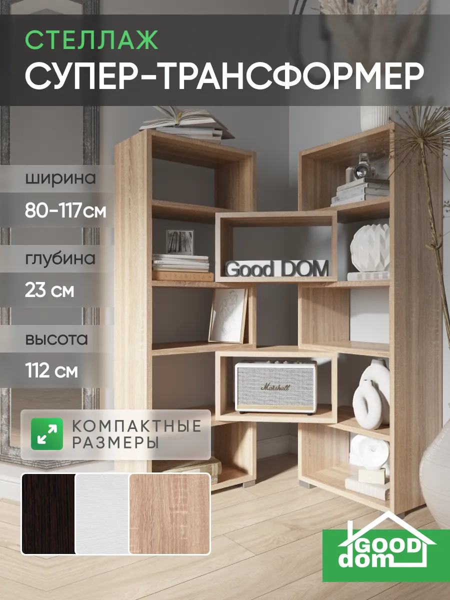 Стеллаж "Тетрис" не зря имеет такое название. Особенность такого стеллажа - это регулируемая ширина и расположение боковых элементов. Стелаж можно собрать под углом или наклоном - так как нравится и подходит именно вам. Стеллаж-трансформер отличное интерьерное решение для гостиной, коридора прихожей, балкона, спальни или детской. Множество открытых полок стеллажика помогут разместить все необходимые вам вещи, а необычная форма напольной полки поможет сделать ваш интерьер интереснее. Шкаф вместительный, но узкий - что позволит с максимальной пользой использовать свободное пространство и уместить его даже в маленькой комнате. Книжный стеллаж будет удобен для зонирования пространства как перегородка между зонами. Его используют в качестве перегородки и эффектного расположения интерьерных украшений: статуэток и гипсовых фигур, свечей и ароматических диффузоров, фотографий в рамках, маленьких горшочков с живыми цветами или искусственных декоративных растений, плетеных корзинок из лозы, книг и журналов, разных аксессуаров. Так же стеллаж может с легкостью стать книжным шкафом для удобного хранения любимых книг. Кроме того, ваши любимые растения и цветы так же могут найти свое место на стеллаже. Нестандартные, разного размера секции для хранения помогут сделать ваш интерьер современным. При своих компактных размерах стеллаж с полками достаточно вместительный. Стеллаж в прихожей найдет свое место под аксессуары или сумки - открытый шкаф в коридор. Наш стеллаж изготовлен на новом оборудовании из высококачественных материалов ЛДСП. Мы дорожим качеством и внешним видом нашей продукции, поэтому вся продукция проверяется перед отправкой отделом контроля и упаковывается в коробки с дополнительной твердой защитой. В нашем ассортименте есть много интересных моделей мебели, что позволяет собрать комплект мебели от бренда Good дом, все в Дом, которая сочетается между собой. Чтобы посмотреть всё - просто нажмите на иконку логотипа.