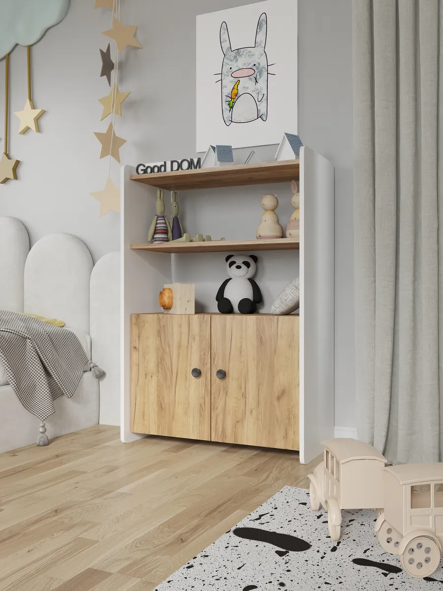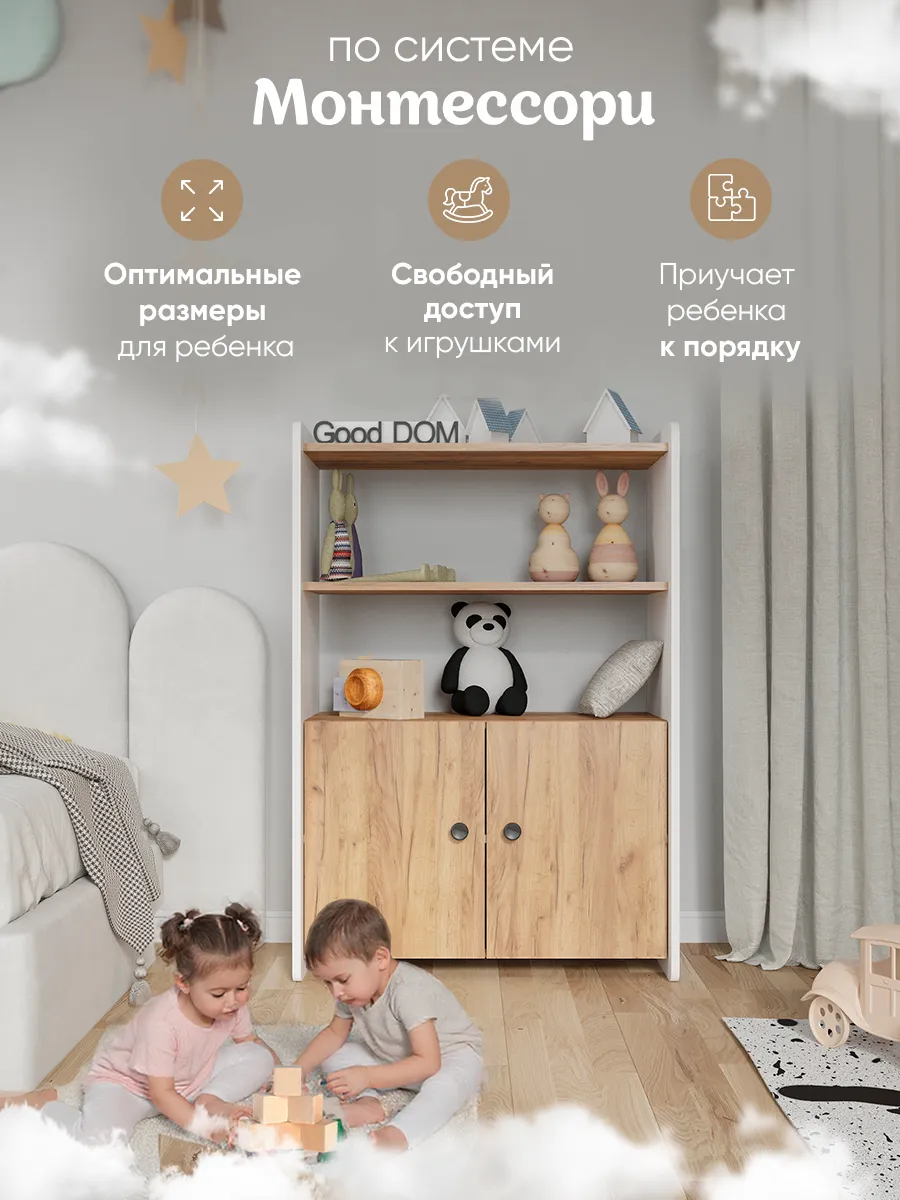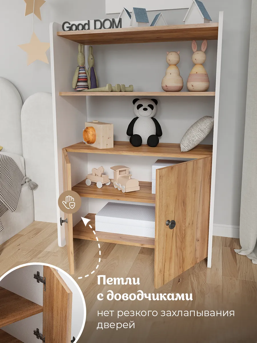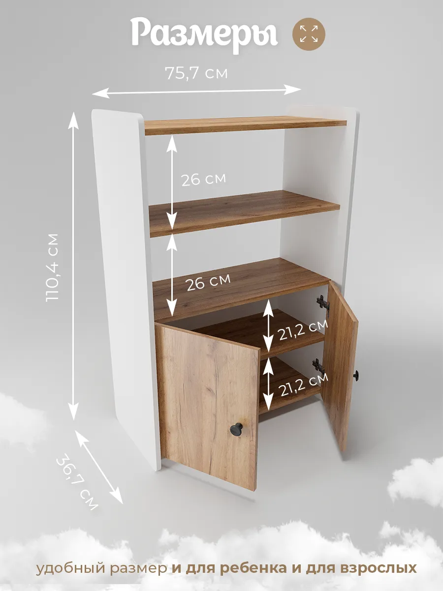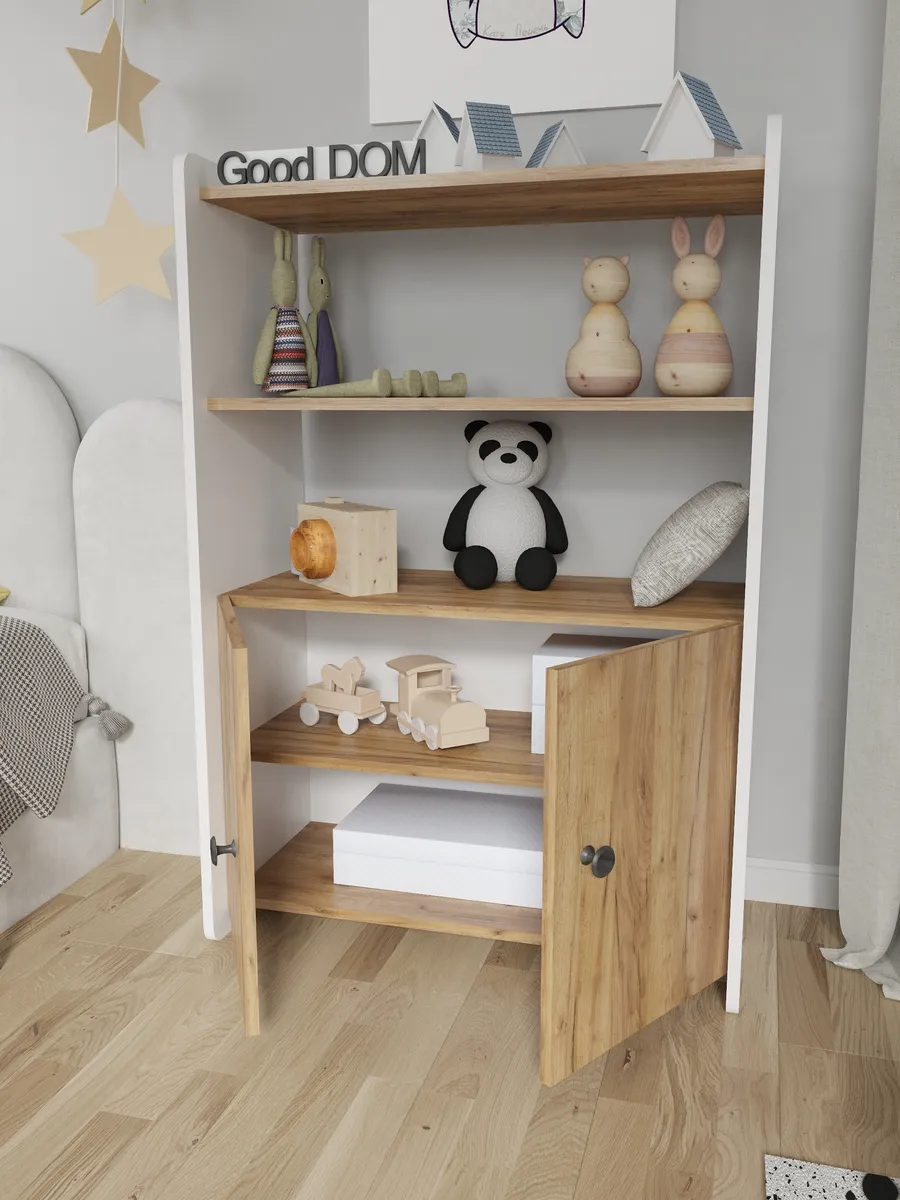 Стеллаж в детскую комнату для игрушек. В детской комнате он найдет свое место как стеллаж детский для игрушек или стеллаж для книг детский. Шкаф в детскую станет идеальным местом для хранения игрушек, книг и других вещей вашего ребёнка. Стеллаж подойдет для мальчиков и для девочек. Шкаф в детскую. Детский стеллаж - стильное решение организации хранения в комнате ребенка. Стеллаж для детской выполнен из безопасных материалов. Острые углы, о которые может пораниться ребенок, отсутствуют. Распределение предметов по зонам приучает детей к порядку, ответственности. Ребенок, пользующийся мебелью по системе Монтесорри, вырастает организованным и уверенным в собственных действиях. Такая мебель развивает в ребенке самостоятельность, ведь он складывает свои вещи на определённые места. Верхняя часть стеллажа оптимально подходит для хранения книг по системе Монтесорри. Стеллаж с дверцей так же отличное интерьерное решение для любой комнаты: гостиной, спальни, прихожей, коридора, детской, офиса. Открытые и закрытые полки помогут разместить все необходимые вам вещи, а универсальный дизайн поможет стеллажу вписаться в любой интерьер. Шкаф напольный универсален. Стеллаж в детскую с полками, отделениями, секциями удобен для размещения вещей. Скругленные углы и петли с доводчиками делают его безопасным в использовании даже детьми. Стеллаж книжный вместит книги, журналы, учебники школьника. Так же стеллаж может использоваться как стеллаж для кухни. Стеллаж на кухню поможет организовать хранение кухонной утвари, приправ, баночек и даже декора. Универсальный шкаф впишется в любой интерьер от лофт до классики. Белый стеллаж – это современный и многофункциональный атрибут для детской, гостиной или офисного помещения. Мы дорожим качеством и внешним видом нашей продукции, поэтому вся наша продукция проверяется перед отправкой отделом контроля и упаковывается в коробки с дополнительной твердой защитой.