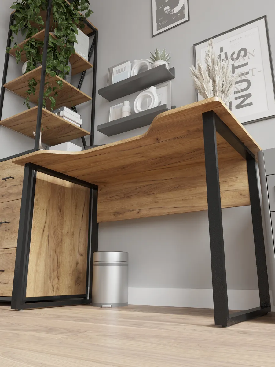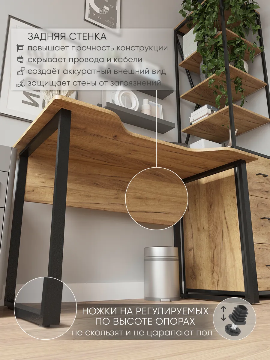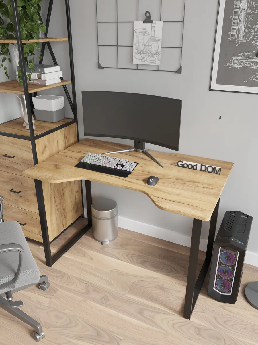 Прочная столешница выполнена из экологичной ЛДСП в актуальных и универсальных расцветках. Устойчива к царапинам и влаге. Надёжный и массивный каркас стола из металла придаёт конструкции стабильность и выдерживает интенсивную нагрузку — подходит как для учёбы, повседневной работы, так и для гейминга.