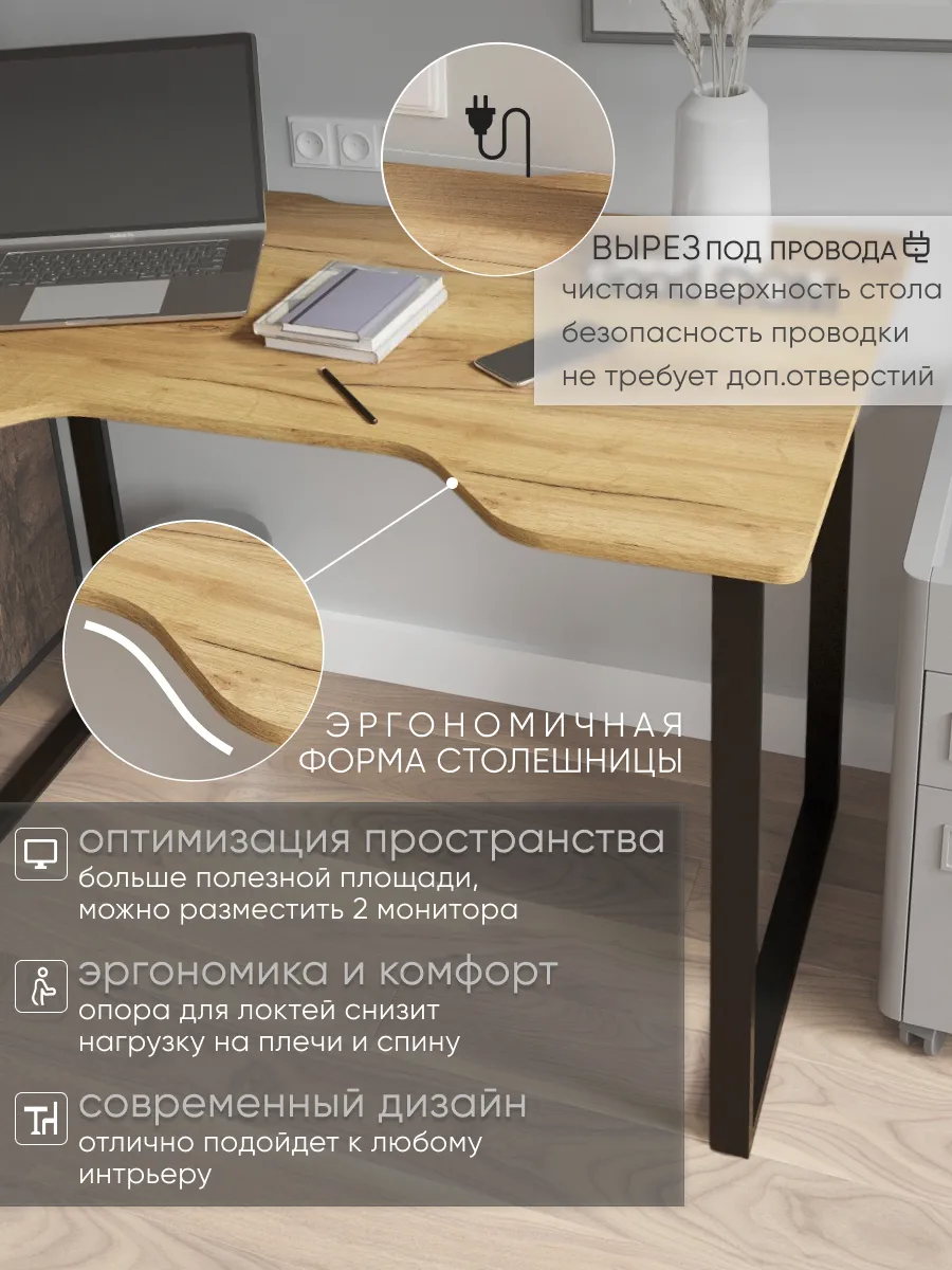 Функциональный компьютерный и письменный стол — отличное решение как для дома, школы так и для офиса. Столешница стола с эргономичным изгибом обеспечивает удобное расположение рук и комфортную посадку за рабочим местом. Конструкция позволяет разместить как один монитор, так и несколько. Удобные вырез под провода обеспечит порядок на столе и его плотное расположение к стене.