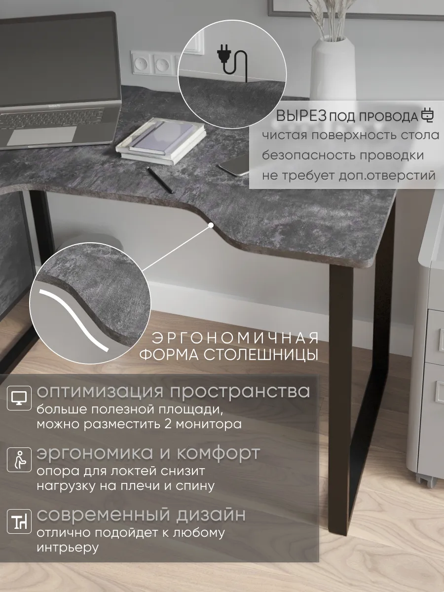 Функциональный компьютерный и письменный стол — отличное решение как для дома, школы так и для офиса. Столешница стола с эргономичным изгибом обеспечивает удобное расположение рук и комфортную посадку за рабочим местом. Конструкция позволяет разместить как один монитор, так и несколько. Удобные вырез под провода обеспечит порядок на столе и его плотное расположение к стене.
