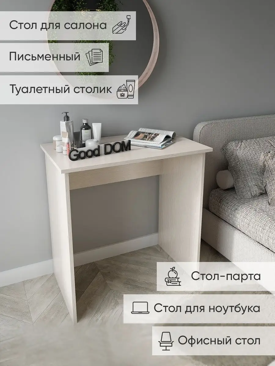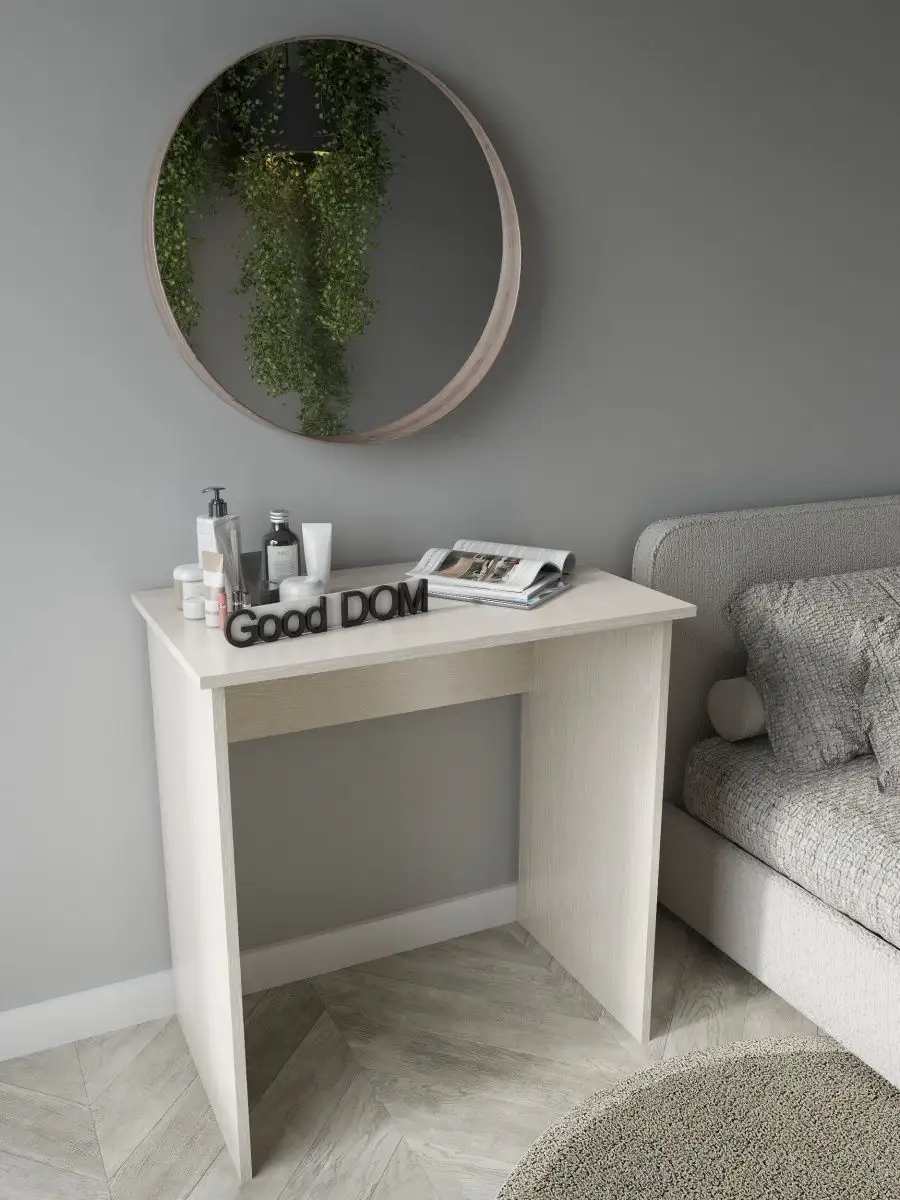 Нужно рабочее место, стол, но в комнату его, кажется, уже не уместить - все и так заставлено? Присмотритесь к нашему небольшому письменному столу! Благодаря его компактным размерам, узкому столику уголок в вашей квартире непременно найдется место даже в маленькой комнате. Стол компьютерный подойдет в гостиную для ноутбука, как стол для пк, в детскую - как рабочий стол школьника ученика как парта, как стол туалетный (гримерный стол) для косметики в спальню, - везде, где есть немного свободного места. Так же столик отлично подойдёт как офисный стол, или в салон - маникюрный столик, стол визажиста. Минималистичное исполнение позволяет деревянному столу не бросаться в глаза, он почти незаметен. Цвета: белый, дуб сонома, орех. Размеры: высота-75 см, ширина-74 см, глубина-45 см, вес-12,4 кг.