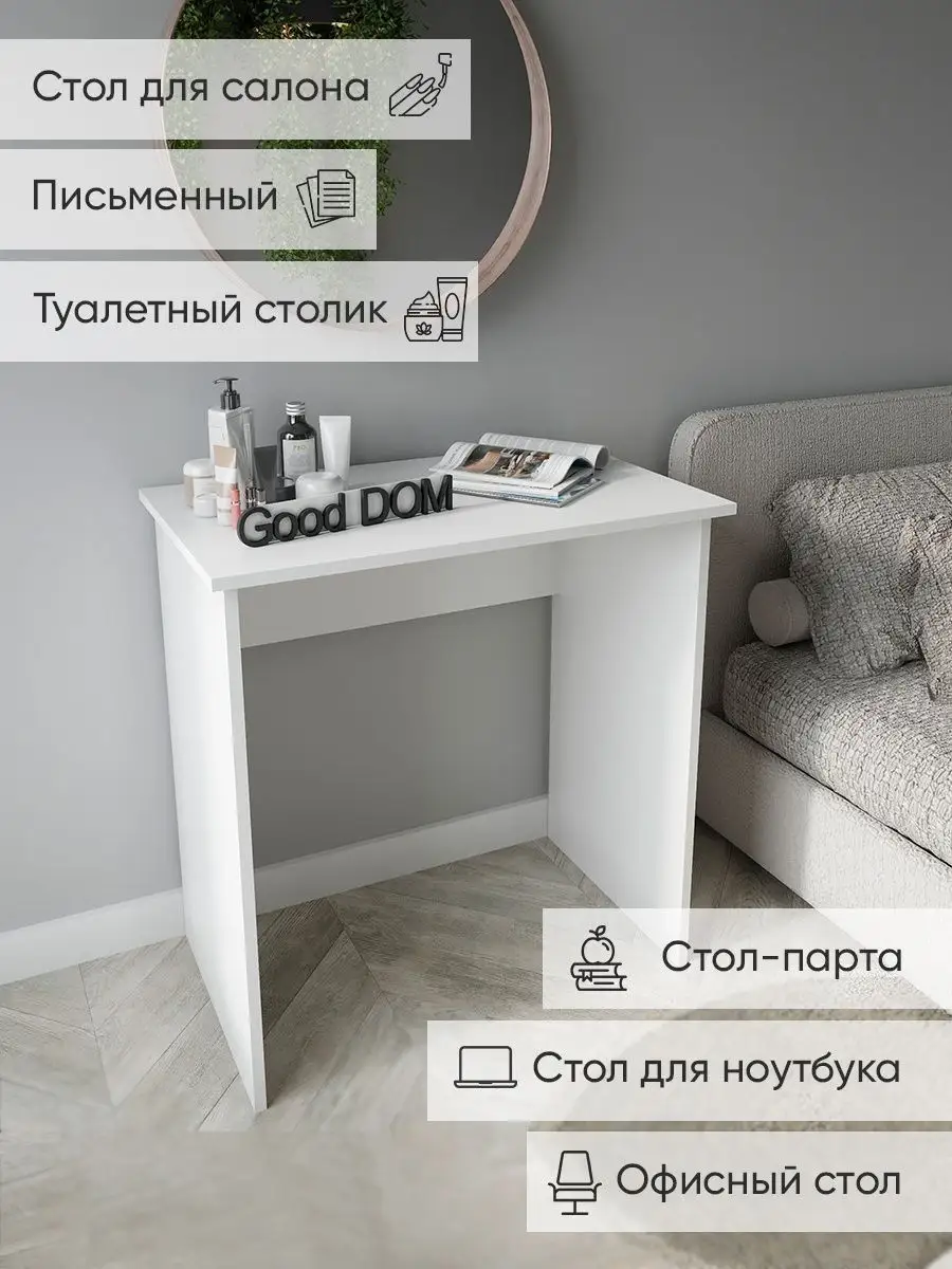 Нужно рабочее место, стол, но в комнату его, кажется, уже не уместить - все и так заставлено? Присмотритесь к нашему небольшому письменному столу! Благодаря его компактным размерам, узкому столику уголок в вашей квартире непременно найдется место даже в маленькой комнате. Стол компьютерный подойдет в гостиную для ноутбука, как стол для пк, в детскую - как рабочий стол школьника ученика как парта, как стол туалетный (гримерный стол) для косметики в спальню, - везде, где есть немного свободного места. Так же столик отлично подойдёт как офисный стол, или в салон - маникюрный столик, стол визажиста. Минималистичное исполнение позволяет деревянному столу не бросаться в глаза, он почти незаметен. Цвета: белый, дуб сонома, орех. Размеры: высота-75 см, ширина-74 см, глубина-45 см, вес-12,4 кг.